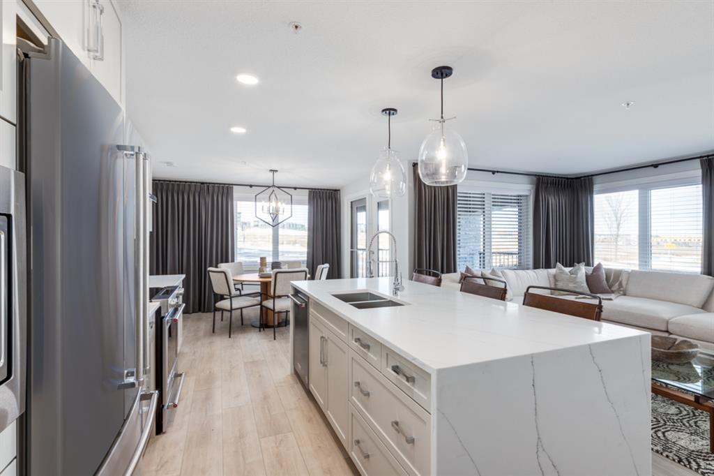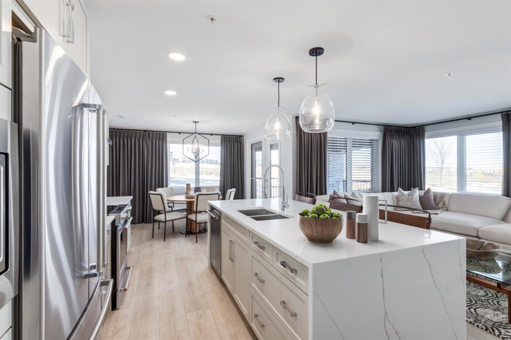 85th & Park is an immaculately designed, boutique condo building, located in the prestigious Aspen Park/Springbank Hill area. Your new home is situated in one of the best locations; nestled beside a protected environmental reserve (ravine) that weaves through the community with extensive recreational walking paths. The 85th & Park building has beautiful mountain, prairie, and community views. It is only a 5 min walk to Aspen Landing and one block away from the the new Aspen Springs shopping district as well as a quick 10 mins drive to Downtown. Your new Lexington unit 206 has (1174 sq.ft RMS measurement & 1250 sq.ft architectural measurement) of pristine designed living space (perfect for rightsizing your life), with 2 bedrooms + den, 2 bathrooms, formal entry, side by side laundry, beautiful open concept kitchen/dining/living, and an incredible wrap around patio! 85th & Park is built by Cove Properties one of Calgary’s top multifamily developers with a pristine reputation for quality construction. The building is now 98% sold out and we only have 2 lexington units remaining. RMS measurements are taken off of the builder's architectural drawings. The legal plan & taxes are to be determined. There will be an HOA fee yearly but this has not be determined yet. The building is nearing completion and possession will be ready in June of 2023. All photos and videos are of Cove Properties Show Suites (Apollo & Pinnacle), not actual unit. 85th & Park will have similar exterior and interior finishing standards. EXTRA Parking and on-floor storage is available for purchase. Previously noted building address was 2027 81st street SW which has now been updated to 8355 19th Ave SW. Our sales center is NOW OPEN - Mon to Thursday from 2pm to 7pm and Sat/Sun from noon to 5pm. The new sales center is located inside our newly constructed 85th & Park building, the address is 111, 8355 19th Ave SW. Please note, there is construction on the site and around the entire area. We have designated parking in front of our 85th & Park building for 'customers only' to try to eliminate the construction vehicle parking so you have better access. In addition, we have launched our new building called The Whitney and it's sales center is located within the 85th & Park building as well. (id:22211)