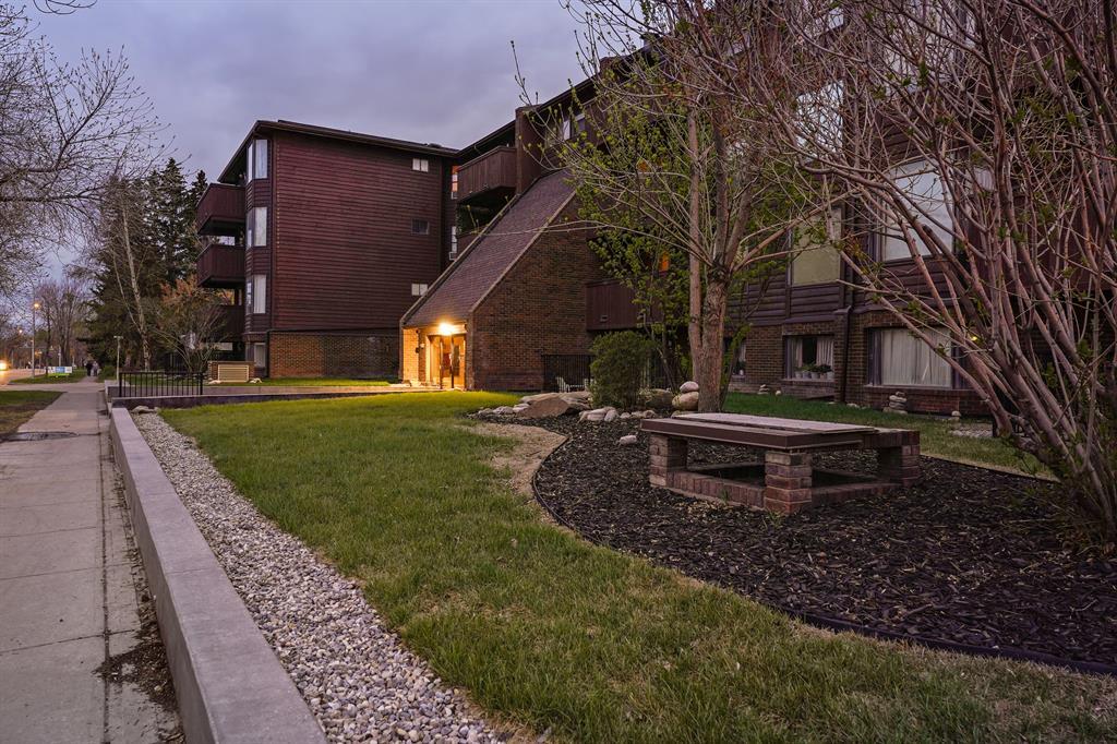 This 18 years of age building + SECURE, WEST facing 776.57 sq ft HOME is MOVE IN READY!!! A CLEAN, 4th floor condo w/SECURITY CAMERA SYSTEM INSTALLED for the BUILDING, has upon entry into the unit; a LONG mirrored closet w/ORGANIZED shelving inside in the FOYER + a 4 pc BATHROOM. The CONVENIENT KITCHEN is L-SHAPED w/EVERYTHING within REACH incl/SPACIOUS countertops let alone MORE than enough CABINETRY for STORAGE too. It is open to the DINING ROOM + EATING AREA perfect for ENTERTAINING + FAMILY dinners together. That leads into the LARGE + BRIGHT LIVING ROOM w/sliding door to the 12'0' x 4'7" BALCONY which is a QUIET area to sit + enjoy the SUNSETS or have a BBQ. Down the WIDE hallway is the the 2nd BEDROOM which is a GOOD SIZE that can also be a DEN or OFFICE + beside that is the PRIMARY BEDROOM which is SPACIOUS + has a BAY WINDOW allowing NATURAL LIGHT in. The ASSIGNED 4'9" x 3'11" STORAGE is on the same floor as unit too. This HOME is in GOOD CONDITION incl/BUILDING that has regular UPGRADES such as NEW ROOF IN 2022 + RESEALING BASEMENT. A BONUS is the ELEVATOR + ASSIGNED HEATED UNDERGROUND PARKING!!! There is ADDITIONAL storage inside unit w/SHELVING which could accommodate a pantry or laundry as well. Laundry is on the 3rd Floor, (coin operated) soon to be swipe card operated. It is close to the LRT + QUICK access to downtown. The MATURE community of ACADIA has so much to offer w/RECREATION COMPLEX, PROGRAMS such as Curling Rink, Hockey Arena, Courts, Room + Hall Rentals, Tradeshow Space + Social Lounge. They have EVENTS for Blood Services, Flat Track Roller Derby, Community Clean-Up, Sports Cards Show, Monthly Meal, Vintage Redefined Market, Ukrainian Festival + Calgary's Largest Garage Sale!!! BOOK your showing today!!! (id:22211)