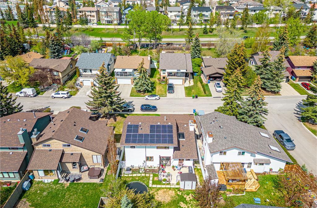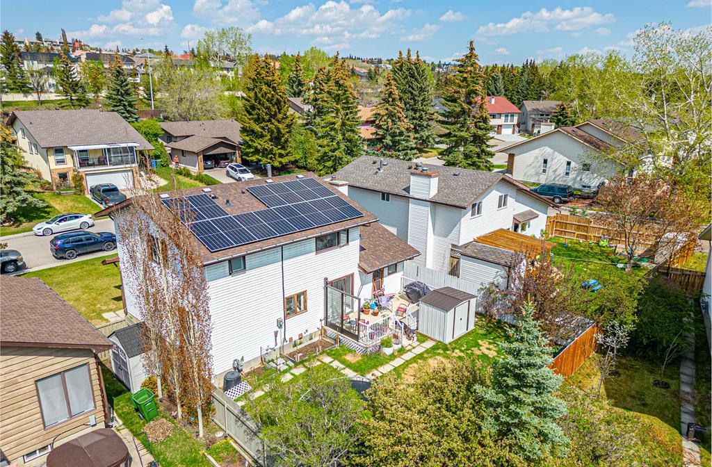 Welcome to your new home in the beautiful community of Ranchlands! This stunning property is waiting for you to make it your own, with 4 spacious bedrooms, 3.5 large bathrooms, almost 3000 sq. ft. of developed living space, and a full 16-panel solar system plus its wired for an an electric Tesla EV charger in the garage, making it the perfect choice for families of any size. The main floor of this home boasts a bright and airy front living room, complete with large windows that let in plenty of natural light. You'll love the way the space flows effortlessly into the formal dining room and spacious kitchen, complete with quartz countertops, upgraded tile backsplash, additional dining space and backyard access. Enjoy the convenience of a 2pc. bathroom and laundry room/mud room on the main level, as well as an additional living room with soaring vaulted ceilings, a cozy fireplace, and built-in bookcases. Upstairs, you'll find newer windows, a full bathroom and 4 generously sized bedrooms, including the primary bedroom with 2 closets and its own luxurious ensuite bathroom. The lower level of this home is just as impressive, with a large recreation room and ample storage space including a new furnace & tankless hot water from Nov 2022. You'll love the convenience of a double attached garage and a beautiful, fully fenced yard with a large composite low-maintenance deck, that's perfect for summer relaxation. This home is situated in an unbeatable location, just minutes away from Crowfoot Crossing, which boasts a wide range of shops, restaurants, and amenities. You'll also enjoy easy access to parks, schools, the YMCA, the Crowfoot Public Library, public transit, and C-train, as well as easy access to Crowchild Tr and Stoney Trail. Don't miss your chance to make this stunning property your new home. Welcome home! (id:22211)