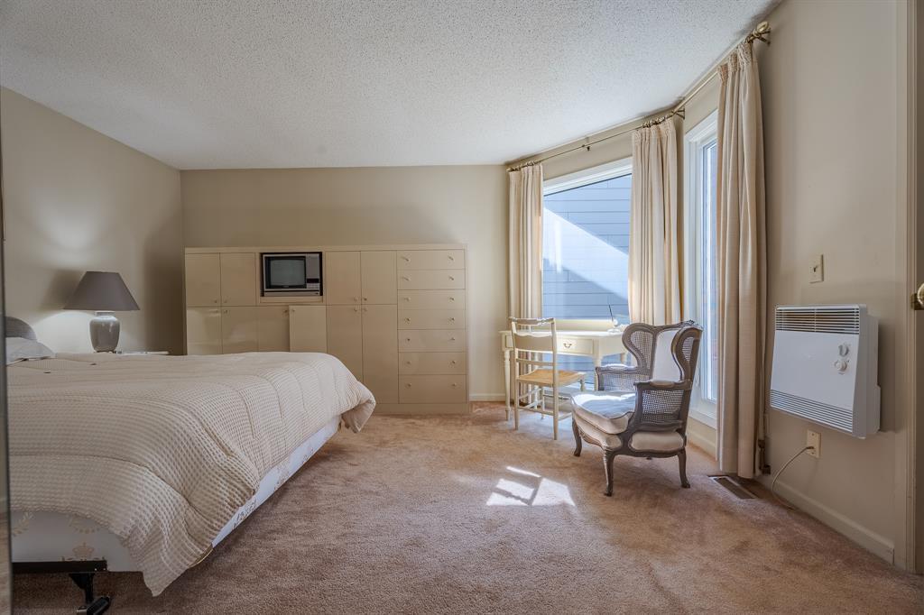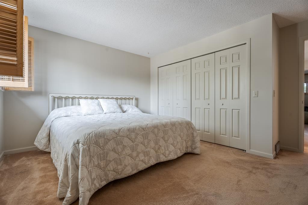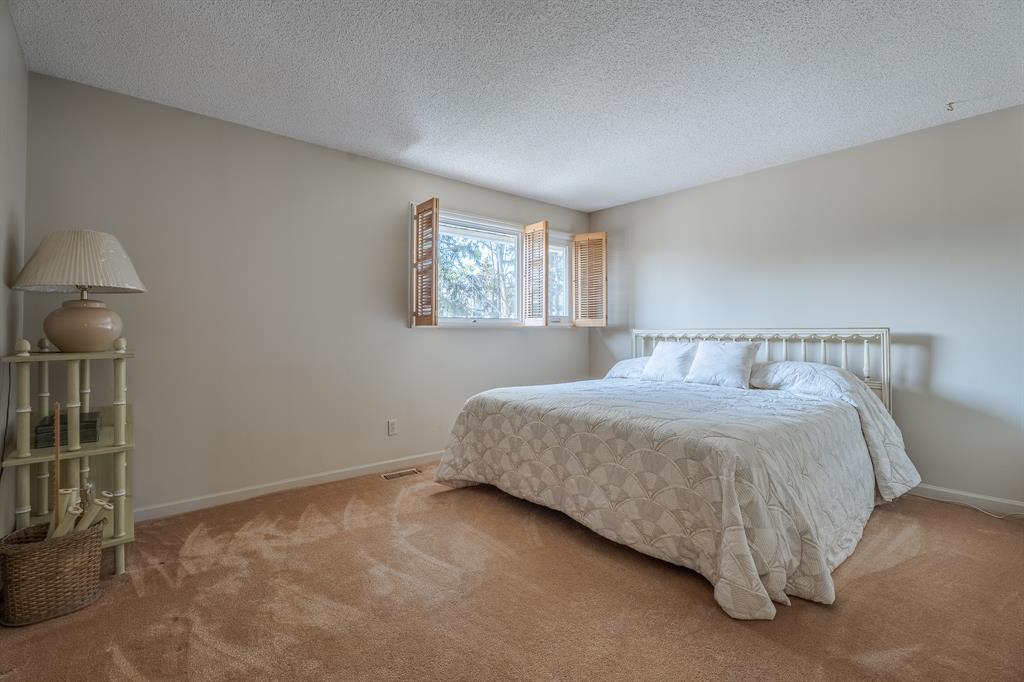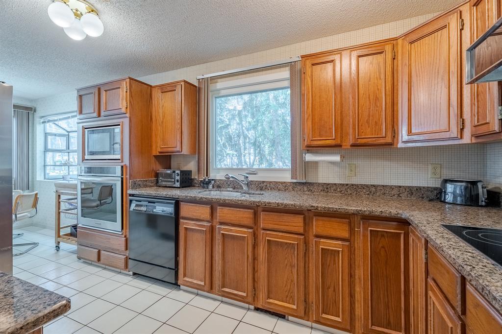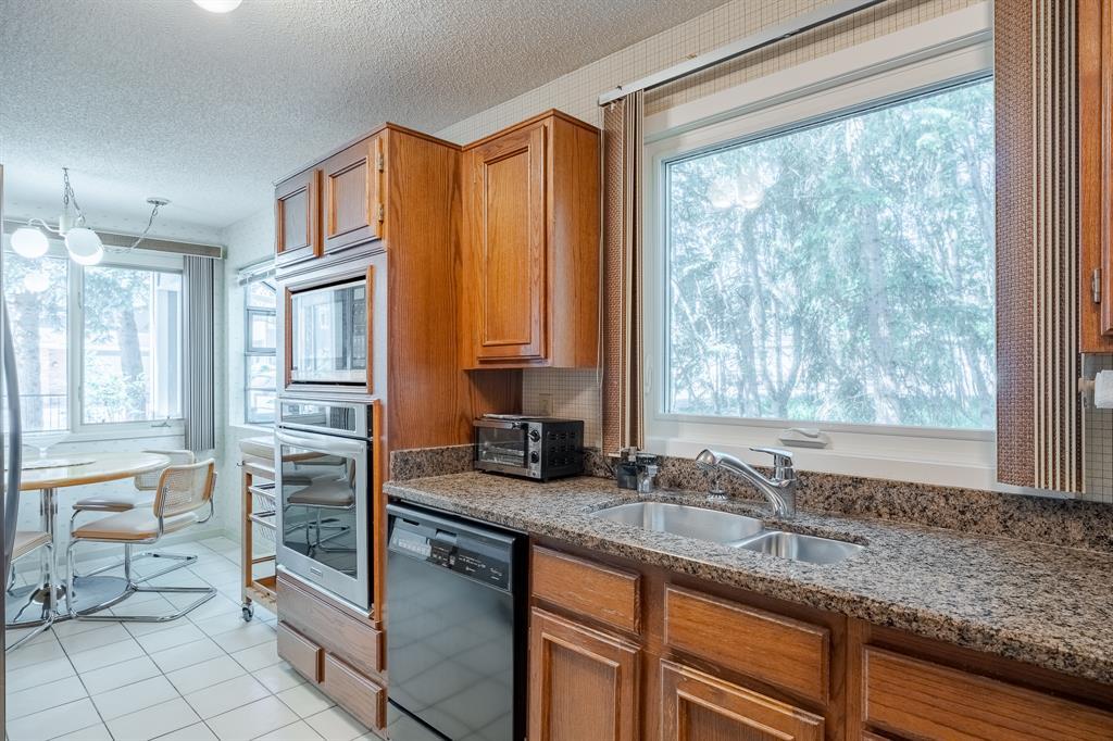 Your home is awaiting you. A very special large three bedroom, double car garage, upgraded home was worth the wait. Enter through the south facing gated yard to the expansive front door onto the wide open foyer. The kitchen has granite countertops and tile flooring with an eat-in nook that compliments the modern day stainless steel appliances. Your villa/2 storey has spectacular, heaven to earth vaulted ceilings in the living room that includes a gas lit natural fireplace for warmth & comfort. The tile flooring in the kitchen & foyer is easy to keep clean and maintain. Your company welcoming dining room features a built in, very appealing buffet cabinetry featuring marvelous sunshine filled windows highlighting the room. The den offers quiet solitude. The large primary bedroom is on the main floor and is status quo. Your bedroom is very comfortable which includes the master 5Pce ensuite bath that has been renovated with a dual person, walk-in glass shower, warm heated tile flooring and quartz built in multiple sinks with premium hardware. The upstairs features 2 bedrooms and loads of storage with a walk in closet. Main floor laundry, more spacious storage, and A/C bonus. The premium location home is siding onto Sherwood Forest. Brilliant large glass windows are masterfully located thru out on your corner home that is situated for peaceful solitude. Enjoy your private, seclusive, sunshine deck, off the den thru the sliding glass doors. Call for your private showing. Drive buy 87 Woodmeadow Close SW and make it your home. Space to roam with approx. 2,100sqft of imaginable living space in the community of Woodlands, close to all amenities from golf, recreation, medical, retail shopping and education. Note-Recent price adjustment. Across from the community center. (id:22211)