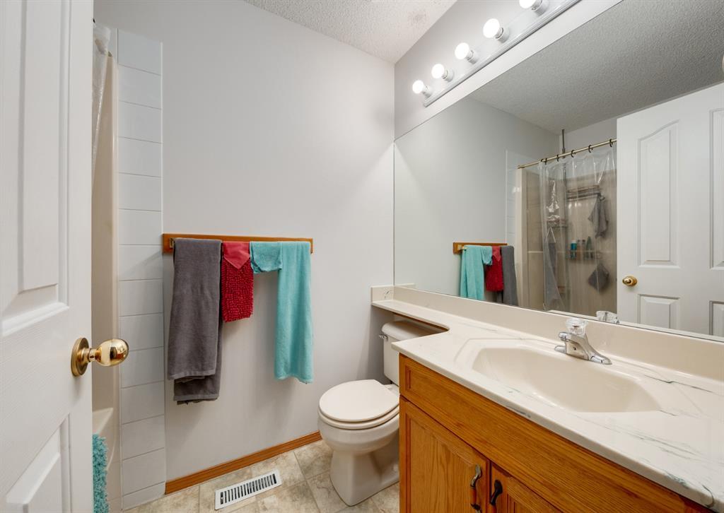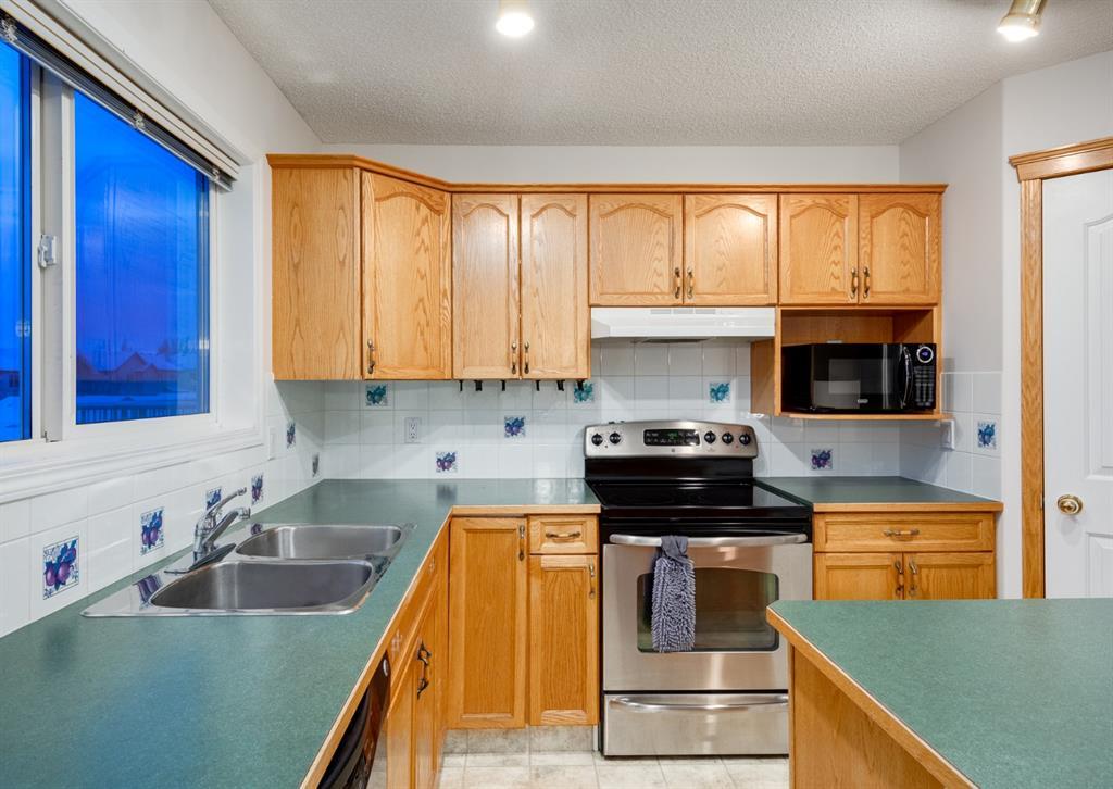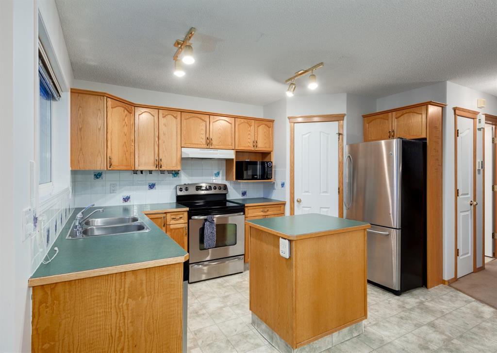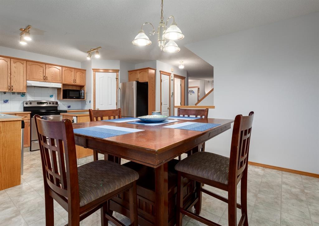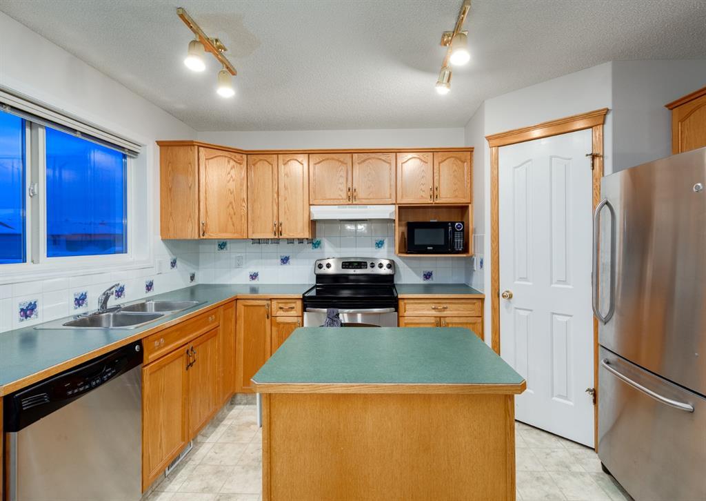 FRESHLY PAINTED + Ready for YOU - over 1314 sq ft of Developed Space, plus another 640 sq ft in the WALK-OUT BASEMENT, + you'll LOVE the SHOWSTOPPING Oversized Garage (25'4" x 23'4") to use for your SHOP, TOYS, or of course, PARKING all your VEHICLES inside (Prev owner had UP TO 4 VEHICLES pkd inside)! We begin w/CUTE Curb appeal incl ESTABLISHED tree + Stone detail, WELCOMING entrance, front Living Room w/GAS FIREPLACE, kitchen w/Island, corner pantry, MATCHING S.S. Appliances, + windows over the SINK, adjoining Dining area w/ROOM for everyone + access to the BACK DECK plus large South-facing windows for NATURAL LIGHT, + 2 pc Bath. Upstairs features 3 AMPLE Bedrooms incl the Master w/a Walk-In-Closet + 4 pc En-suite, plus 4 pc Main bath. The basement is PARTIALLY finished with the start to a 4th BEDROOM, + you can DEVELOP the rest as you need, or leave as STORAGE. The SOUTH FACING BACKYARD has both the UPPER deck, + lower stamped-concrete Patio. And OF COURSE, access to the MASSIVE Garage - which also has 220V wiring, + a rough-in to add a HEATER. A SCHOOL + Playground are 1.5 Blocks away, + Bridlewood is a FABULOUS established neighbourhood to CALL HOME! Don't wait, book a SHOWING TODAY! (id:22211)