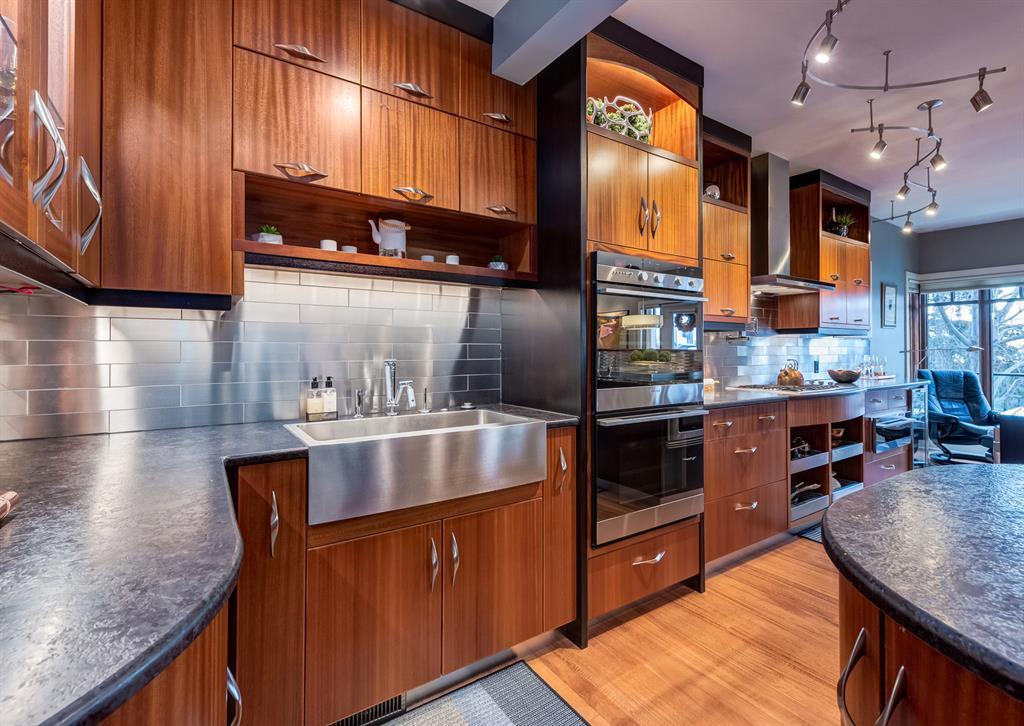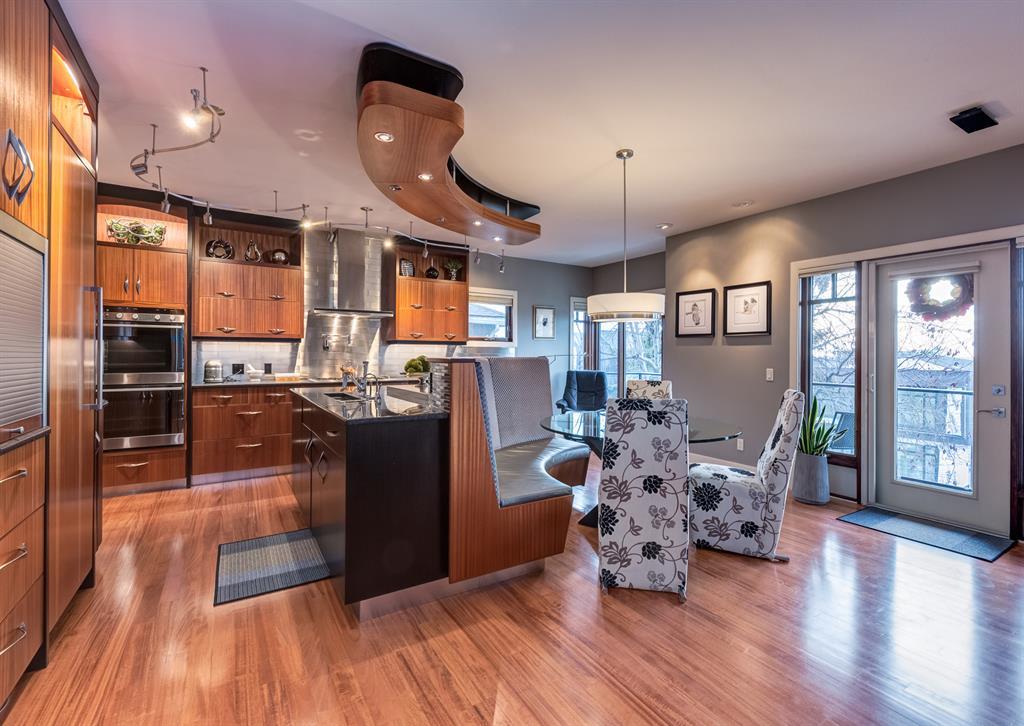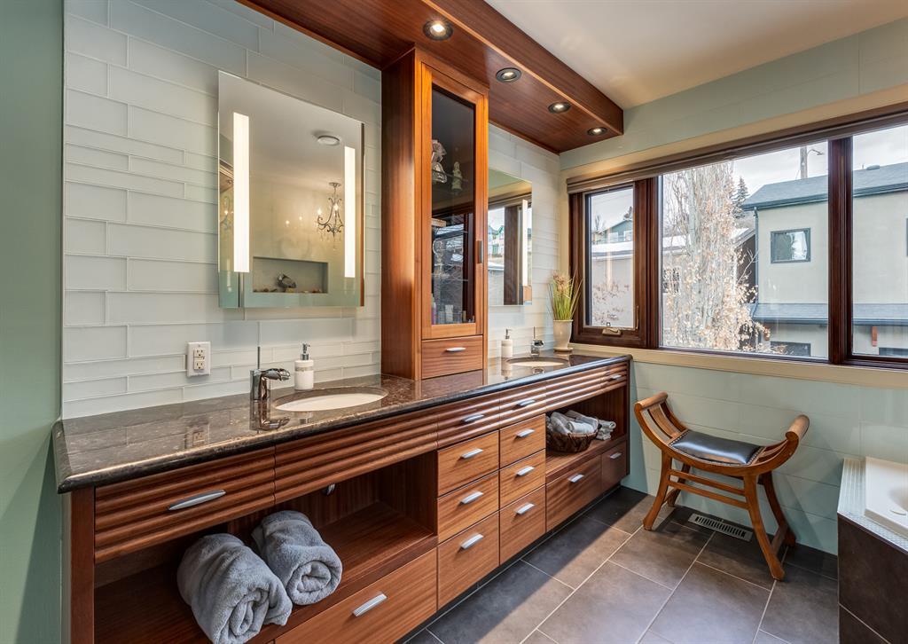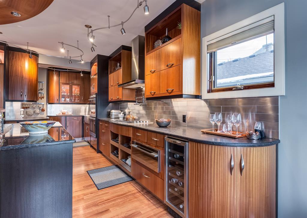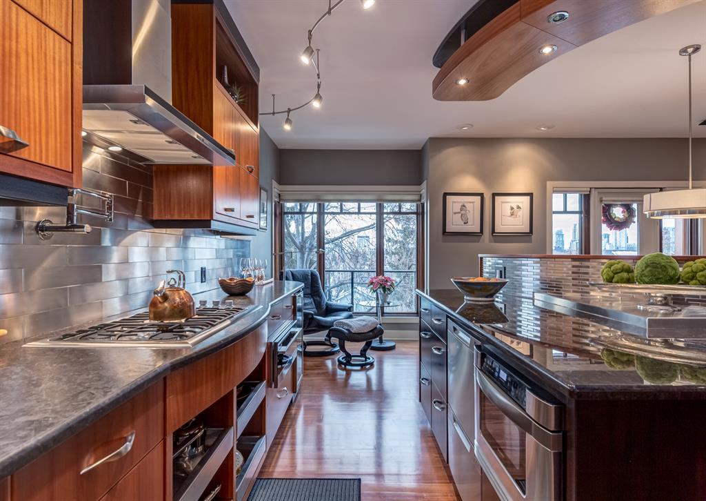 **OPEN HOUSE** SUNDAY 1pm to 5pm August 27, 2023... One of Bridgeland’s finest homes that has spectacular views of Calgary’s downtown skyline. This home will please the most discerning buyers who appreciate custom European finishes with a floorplan created by contemporary designer Nels Pederson. The finishes throughout are full of natural beauty featuring gleaming leather-wrapped counters, slate tile and authentic mahogany cabinetry. The kitchen is literally a chef’s kitchen, designed with every aspect of food preparation, cooking, baking and the entertainment process in mind. Designed with Fisher & Paykal appliances, a baking center, prep station, two separate sinks, wine fridge, warming drawer, the list goes on of features for this kitchen. The main floor’s open concept design creates a space where not only can you sit in front of a cozy fire and watch the changing colours of the Calgary Tower, but also enjoy get togethers with friends and family where there is plenty of space for all. A formal dining room provides another beautiful entertaining space with French doors out to the professionally landscaped stunning backyard. Sit and soak in the hot tub while enjoying the tranquil sound of flowing water in the pond/water feature. The large deck is a great space for barbecuing and outdoor dining. A stone pathway will take you up to the two-story 3-car garage which provides an additional 800 square feet of private office/gym/hobby retreat space. The upper floor has a double bay plus a single bay where you can park all three of your vehicles or use the single bay as a separate workshop. This level is accessed from a paved concrete driveway. The lower level of the building is currently being used as a fully functioning professional office with a 3-piece bathroom, wet bar and a versatile work area, perfect for a space where you can have client meetings or use it as a separate living apartment. Back to the main house, the upper floor boasts a primary suite designed like a 5-star hotel, not to mention the 5-star view of the city, both from inside the room and outside on the private balcony. A spa-like 6-piece ensuite and custom designed walk-in closet are the icing on the cake. Two other bedrooms, a bathroom and a large, naturally lit laundry room with storage are also found on this level. But wait, there’s more! The legal one-bedroom basement suite has a full kitchen, laundry, dining and living area with its own private walk-out entry as well as access from inside the home. A great opportunity to gain extra income or just enjoy it for yourself. This space is currently being used as an Airbnb suite and is booked continually. Walk to all the restaurants, shops, schools and parks Bridgeland has to offer, including the Calgary Zoo and Telus Spark Science Centre. You can even walk to the downtown core in 20 minutes! A private viewing is a must to take it all in! Call today! (id:22211)