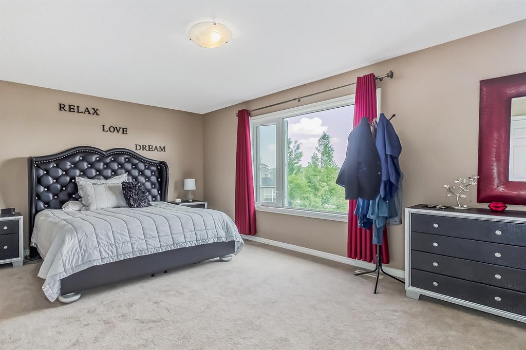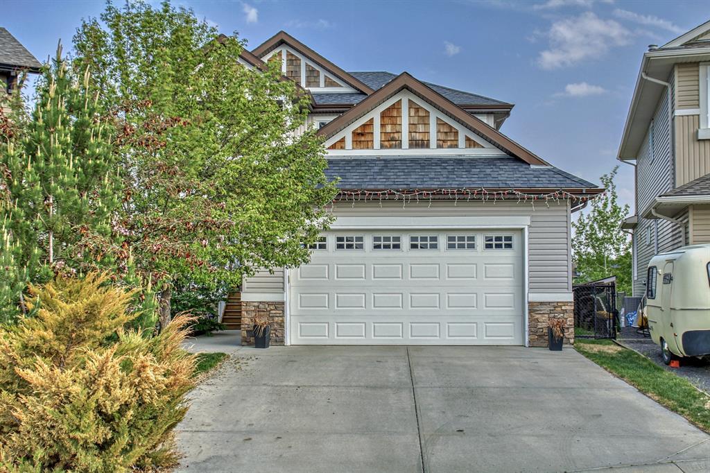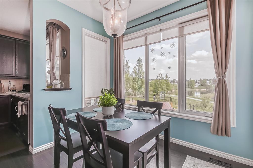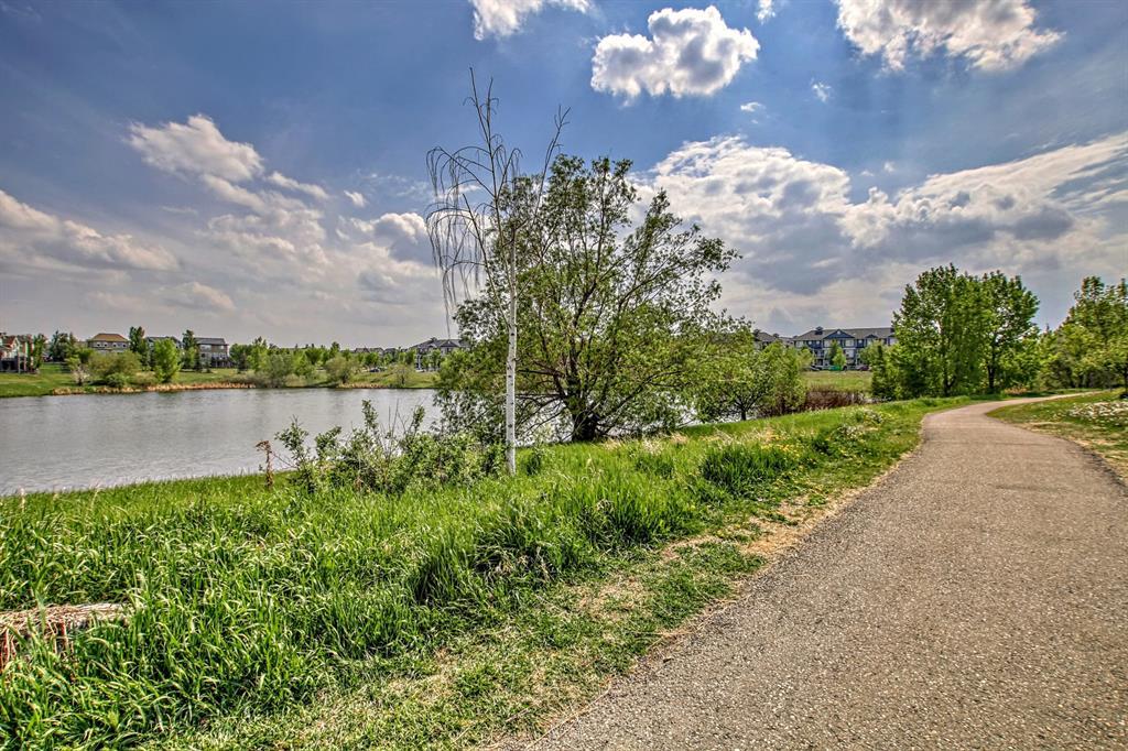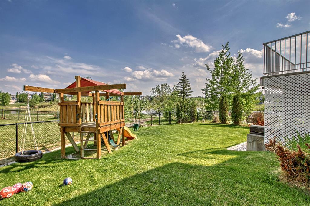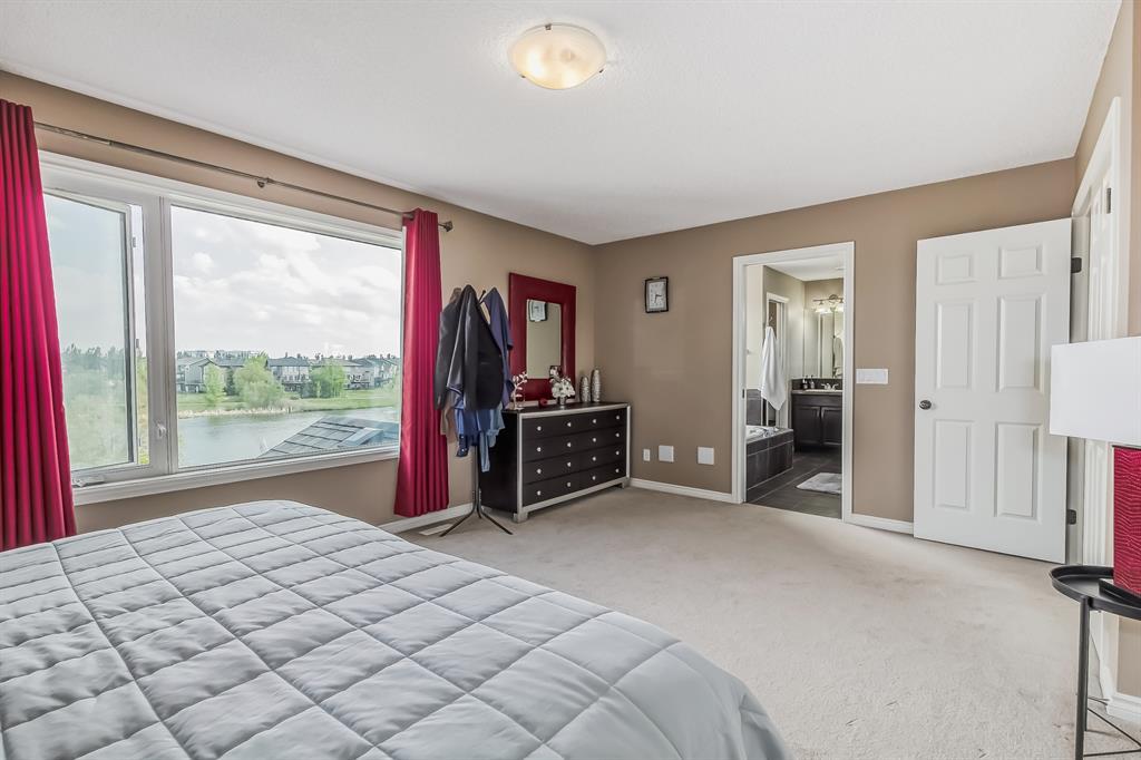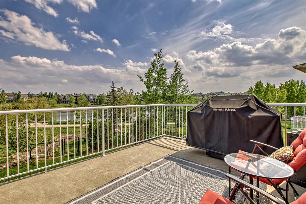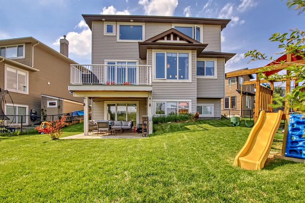 Welcome to the gorgeous 4 seasons lake community! This amazing fully finished walk out home with central air is tucked at the back of a family friendly cul du sac on a huge pie lot (w/ underground sprinklers) & has phenomenal views of the pond & green space it backs on to. The main floor consists of a living room/dining room at the front of the house, office with french doors & beautiful kitchen, breakfast nook & living room. Upstairs you will find the huge master bedroom with fabulous ensuite & massive walk in closet. The 2 additional bedrooms, 4 pce bathroom & the conveniently located laundry room finish off the upper floor. The fully finished walkout with heated floors boasts a fabulous wet bar with built in cabinets featuring a cold wine cellar, 2 large bedrooms, a huge REC room and bathroom. There are 2 new elementary schools as well as a Rec Center, lots of amenities, shopping & the new hospital, a 3 minute walk from the largest YMCA in Calgary and a 5 minute walk from a VIP cinema, what more will you need? (id:22211)
