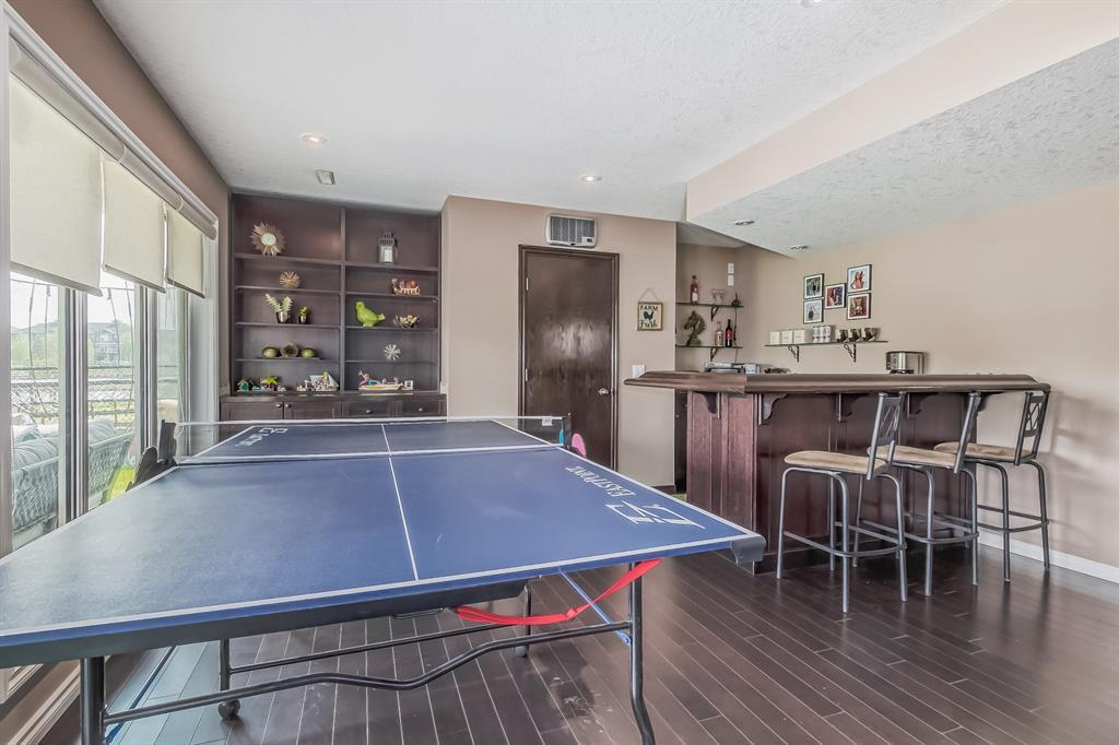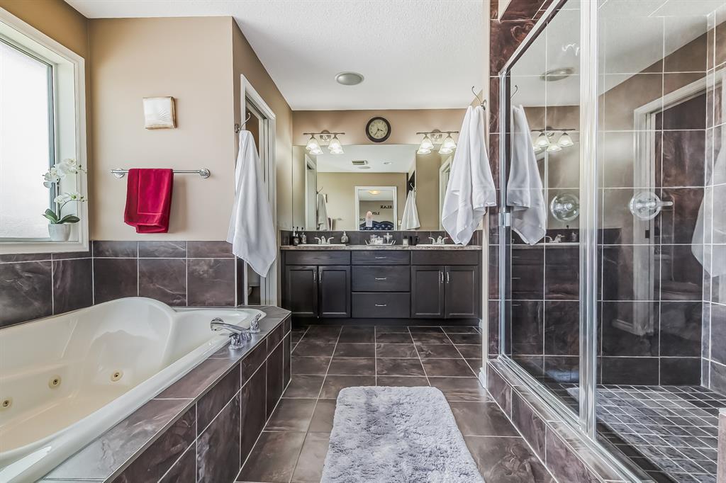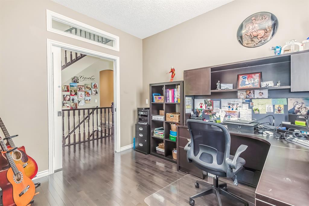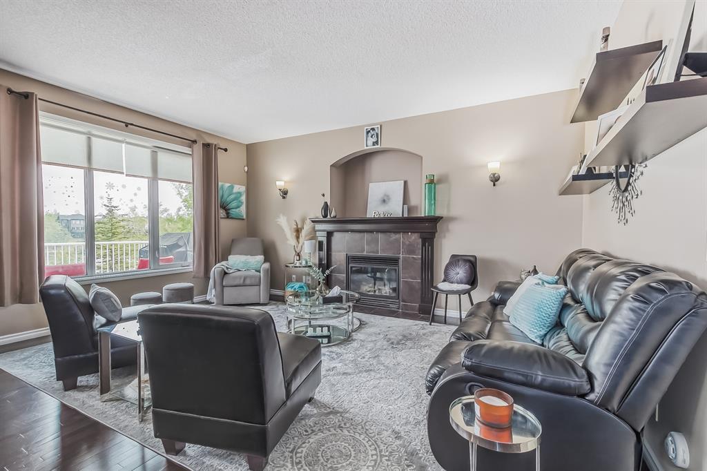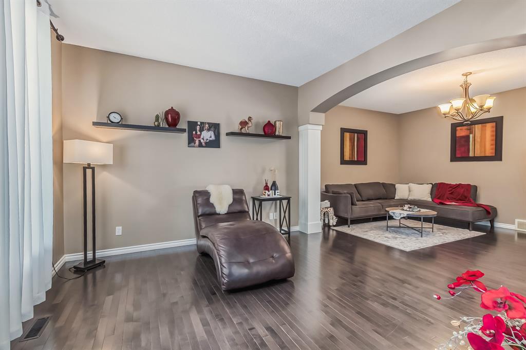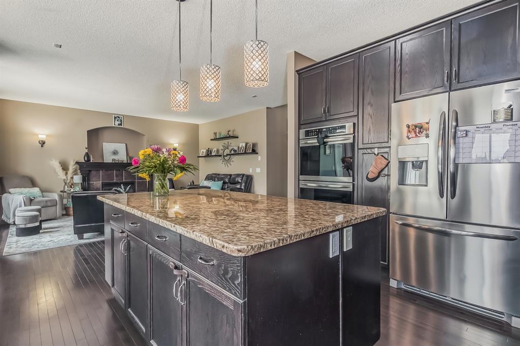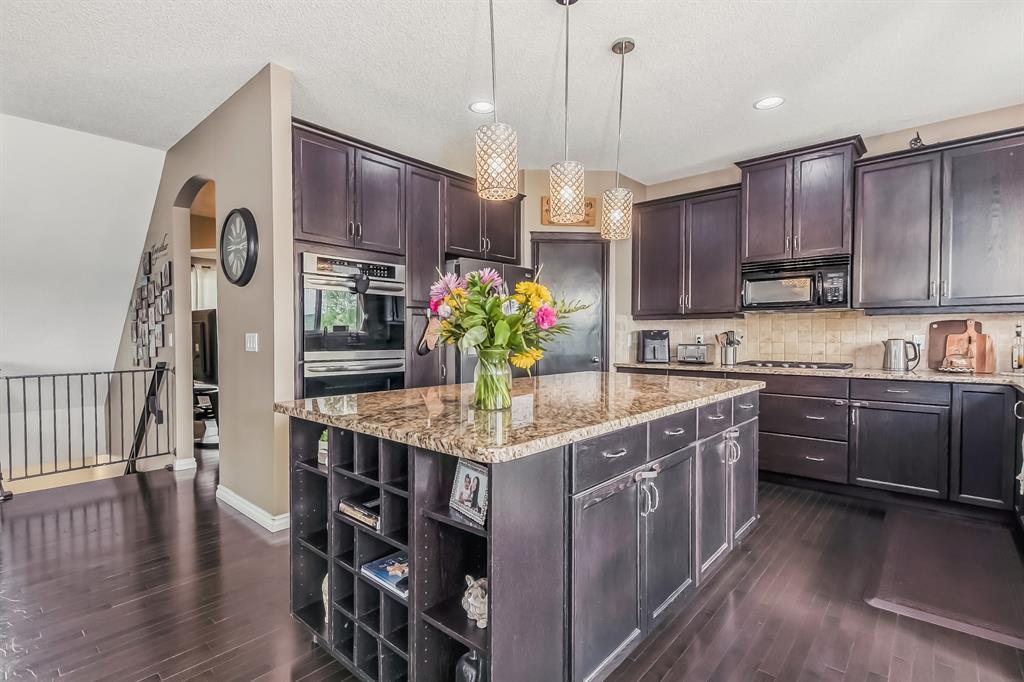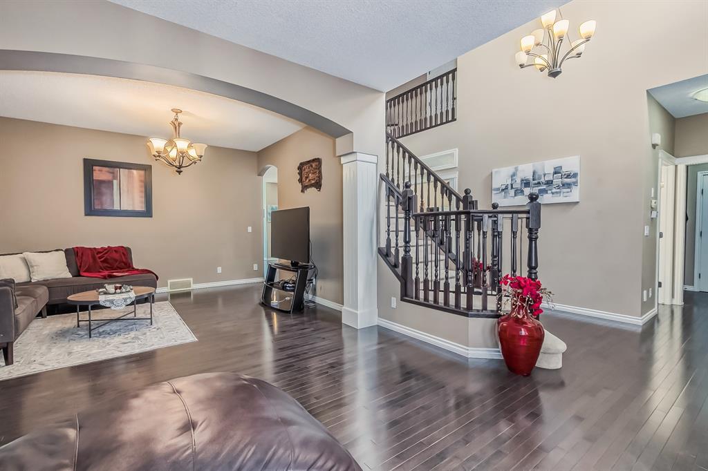 Welcome to the gorgeous 4 seasons lake community! This amazing fully finished walk out home with central air is tucked at the back of a family friendly cul du sac on a huge pie lot (w/ underground sprinklers) & has phenomenal views of the pond & green space it backs on to. The main floor consists of a living room/dining room at the front of the house, office with french doors & beautiful kitchen, breakfast nook & living room. Upstairs you will find the huge master bedroom with fabulous ensuite & massive walk in closet. The 2 additional bedrooms, 4 pce bathroom & the conveniently located laundry room finish off the upper floor. The fully finished walkout with heated floors boasts a fabulous wet bar with built in cabinets featuring a cold wine cellar, 2 large bedrooms, a huge REC room and bathroom. There are 2 new elementary schools as well as a Rec Center, lots of amenities, shopping & the new hospital, a 3 minute walk from the largest YMCA in Calgary and a 5 minute walk from a VIP cinema, what more will you need? (id:22211)