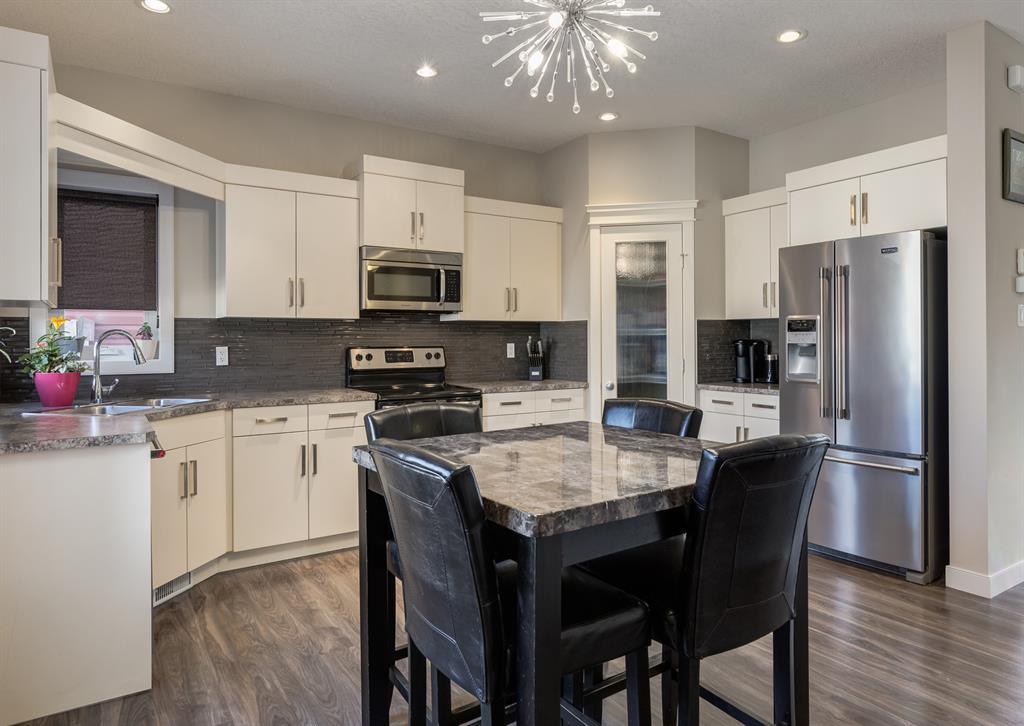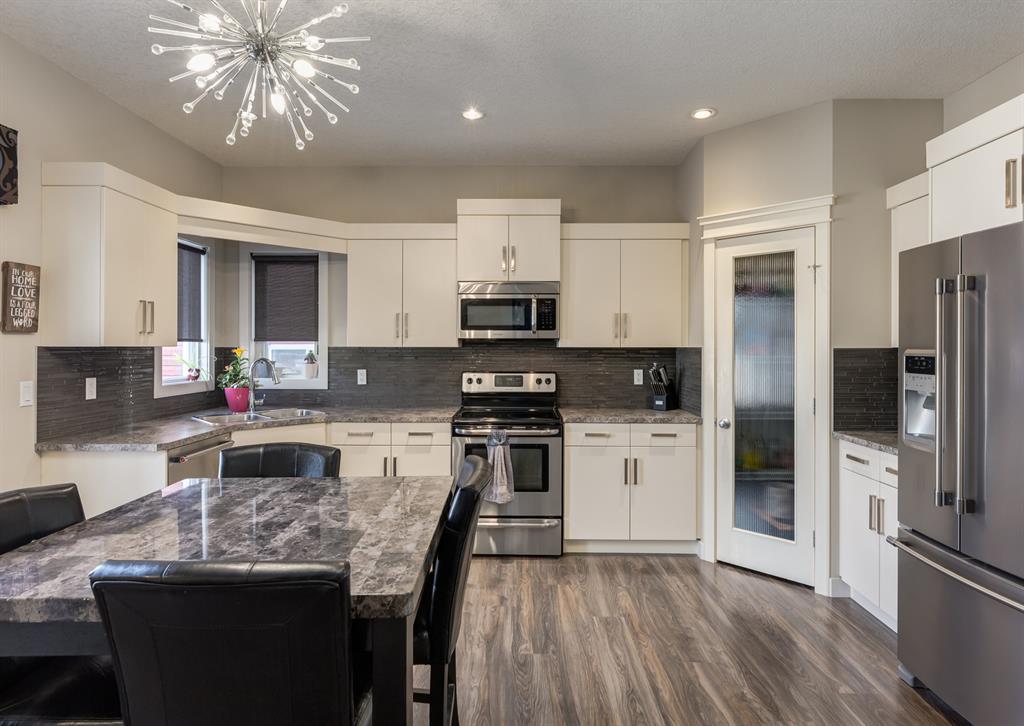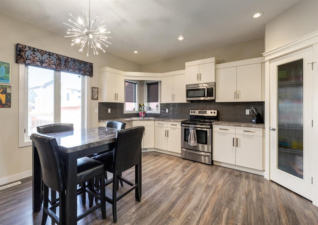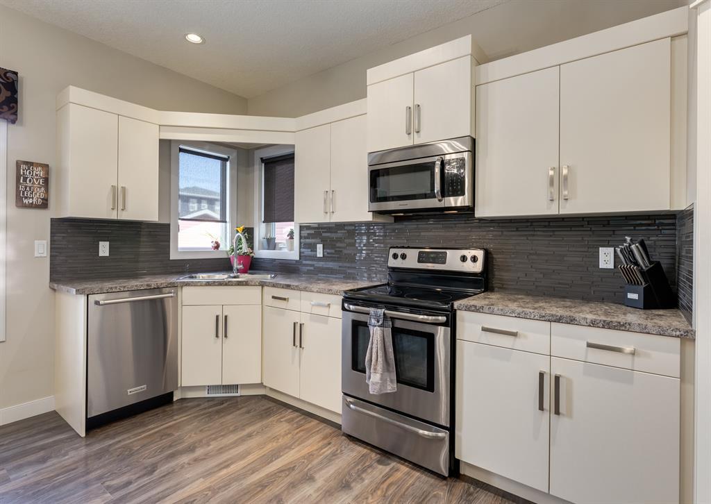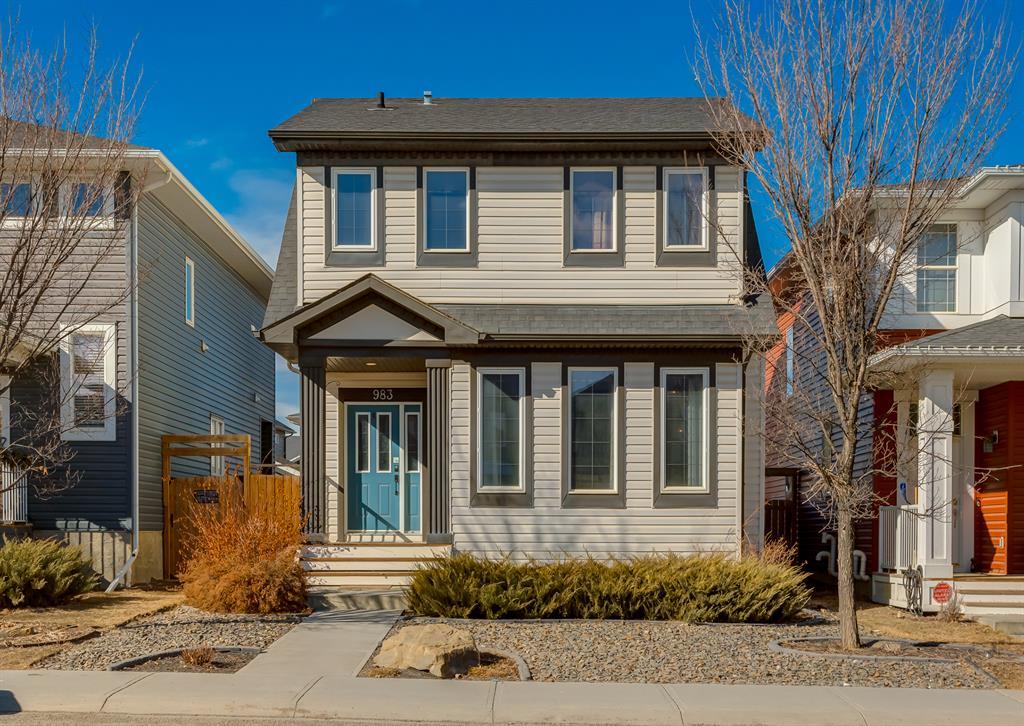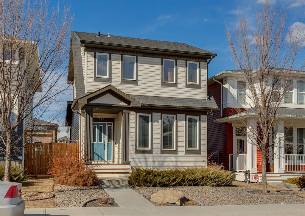 Welcome to 983 Evanston Drive NW! This former showhome has been professionally designed with modern finishes including a white kitchen with glass tile backsplash, laminate flooring and custom window coverings. The main floor offers 9’ ceilings with spacious living room, kitchen with a corner pantry, dining area and the built-in bench and closet in the back entrance provide ample storage space for busy families on the go. Upstairs, the large master bedroom boasts a walk-in closet and full en-suite, while two additional bedrooms, laundry and a 4-piece bath complete the second level. The unfinished basement provides an opportunity for your family to customize the space, whether you want to create a media room, games room, or extra bedrooms.Outside there is a double detached garage and the professional landscaped backyard is perfect for entertaining with stone patio and a gas hook up for your BBQ. Located close to schools, green spaces and shopping this beautifully designed former show home is the perfect opportunity for families looking for a home close to all amenities. Check out the video in the media link or book a private showing today! (id:22211)