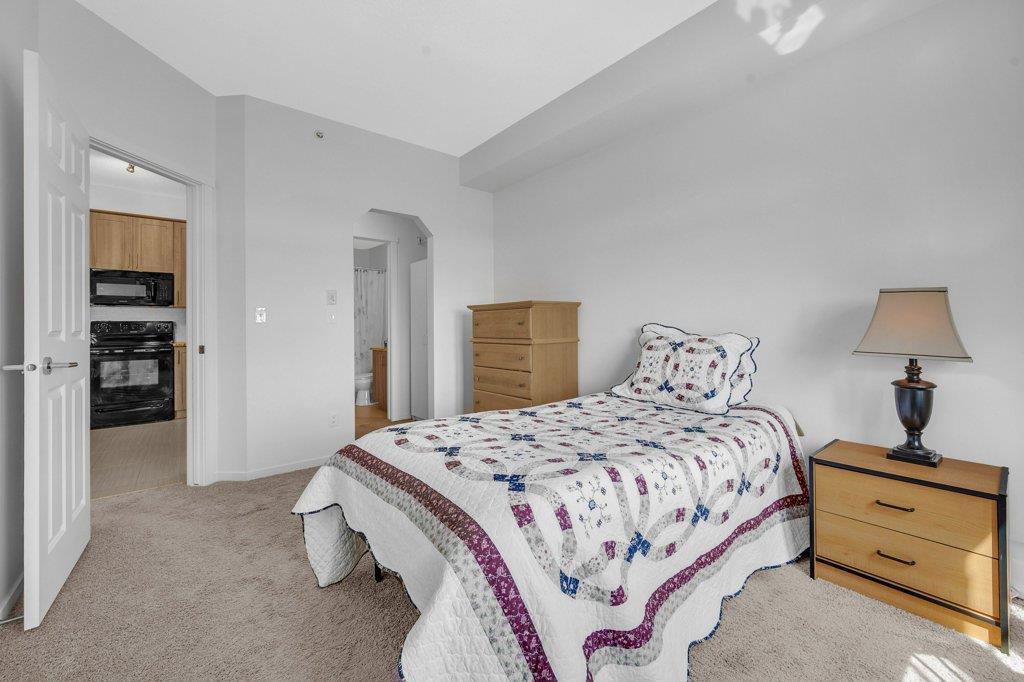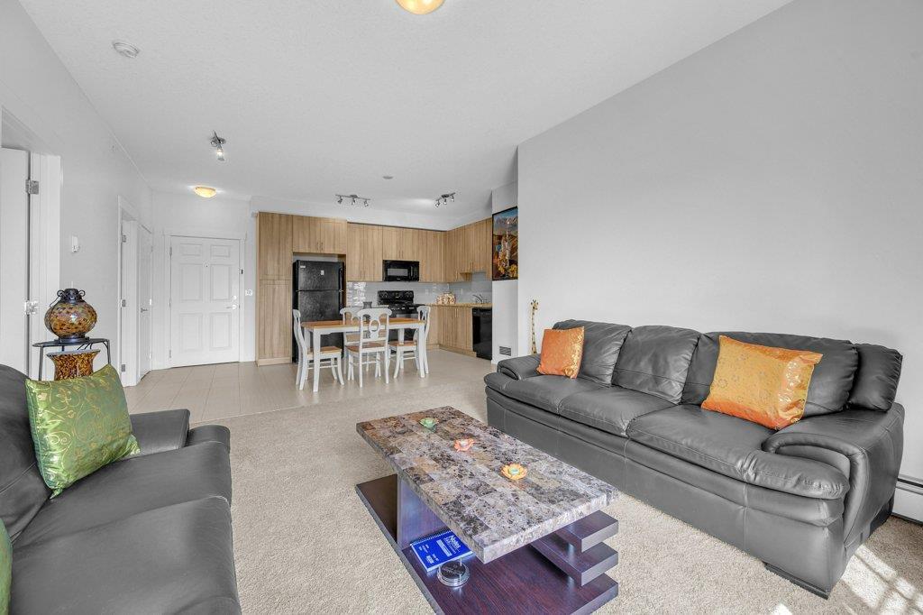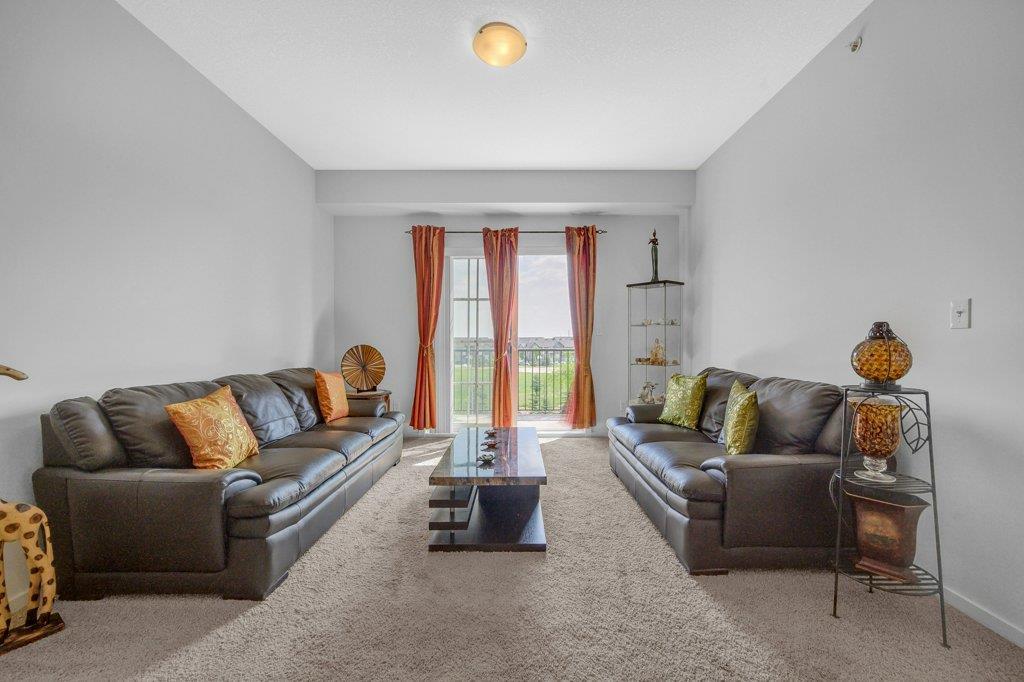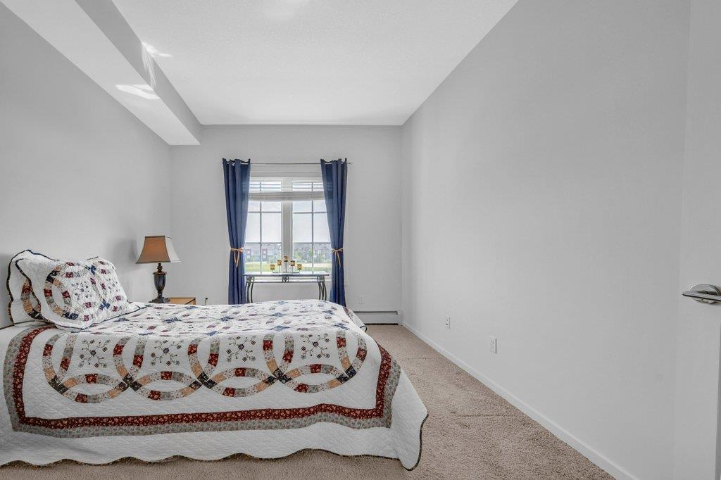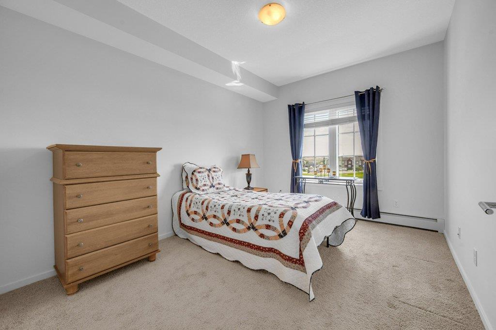 Welcome Home to Copperfield Park III, an incredible opportunity to own this meticulously maintained, like-new TOP floor condo unit with unobstructed park views! As you enter, you are greeted by the spacious foyer with immaculate tile and carpet flooring throughout the entire unit. The bright and spacious kitchen boasts modern extended height cabinets, black appliances, granite countertops and a white mosaic backsplash. This expansive floorpans also allows plenty of space for a dining table, with a large living room perfectly laid out for visiting with friends and family. Large patio doors open up to the sunny east facing balcony which is ideal for enjoying a morning coffee, offering expansive green space views. On one side of the unit resides a large bedroom, 4-piece bathroom and laundry closet. With the primary bedroom ideally located opposite side and complete with a walk-through closet and 4-piece ensuite. Additionally features is an underground, titled parking stall and a separate storage locker. Ideally located close to plenty of amenities, public transit, schools, playgrounds and walking paths, this unit is the perfect fit a first time home buyer, down sizer or investor! (id:22211)