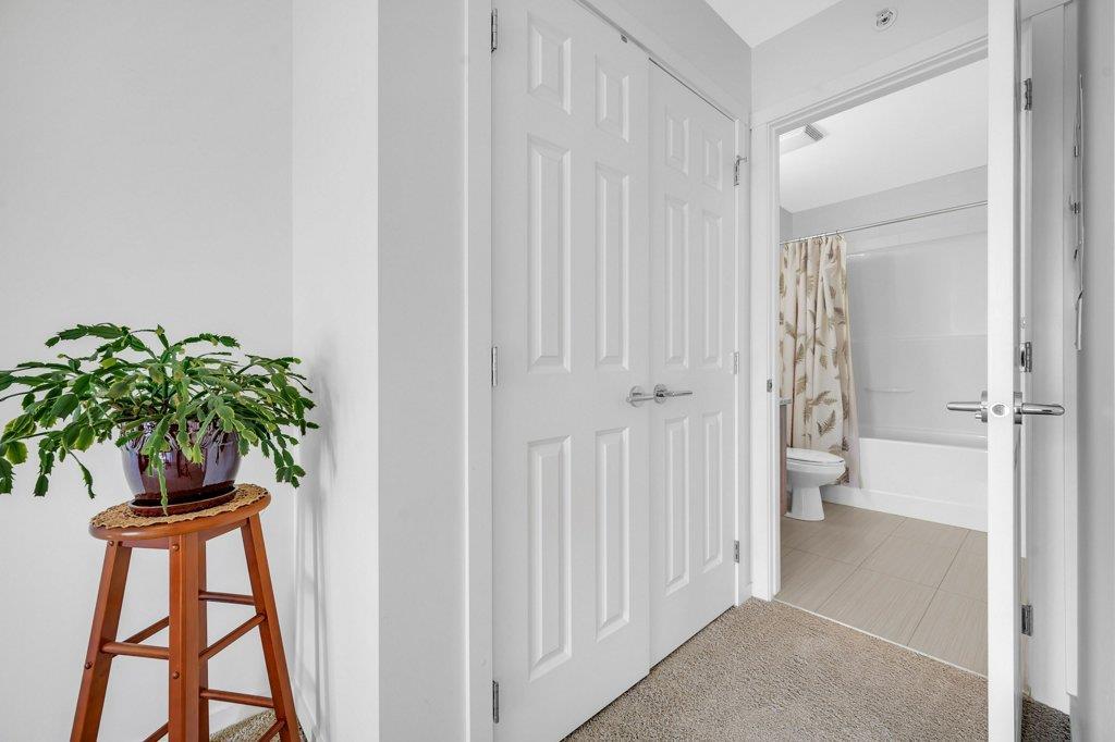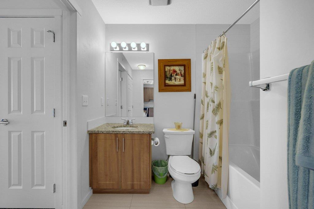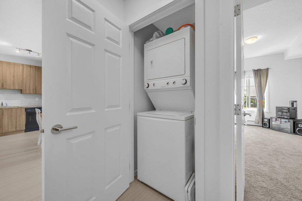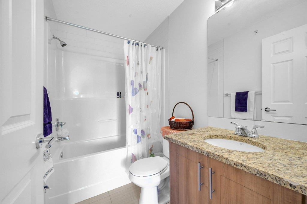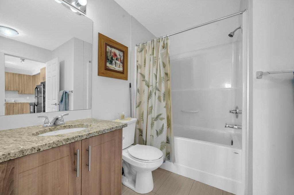 Welcome Home to Copperfield Park III, an incredible opportunity to own this meticulously maintained, like-new TOP floor condo unit with unobstructed park views! As you enter, you are greeted by the spacious foyer with immaculate tile and carpet flooring throughout the entire unit. The bright and spacious kitchen boasts modern extended height cabinets, black appliances, granite countertops and a white mosaic backsplash. This expansive floorpans also allows plenty of space for a dining table, with a large living room perfectly laid out for visiting with friends and family. Large patio doors open up to the sunny east facing balcony which is ideal for enjoying a morning coffee, offering expansive green space views. On one side of the unit resides a large bedroom, 4-piece bathroom and laundry closet. With the primary bedroom ideally located opposite side and complete with a walk-through closet and 4-piece ensuite. Additionally features is an underground, titled parking stall and a separate storage locker. Ideally located close to plenty of amenities, public transit, schools, playgrounds and walking paths, this unit is the perfect fit a first time home buyer, down sizer or investor! (id:22211)