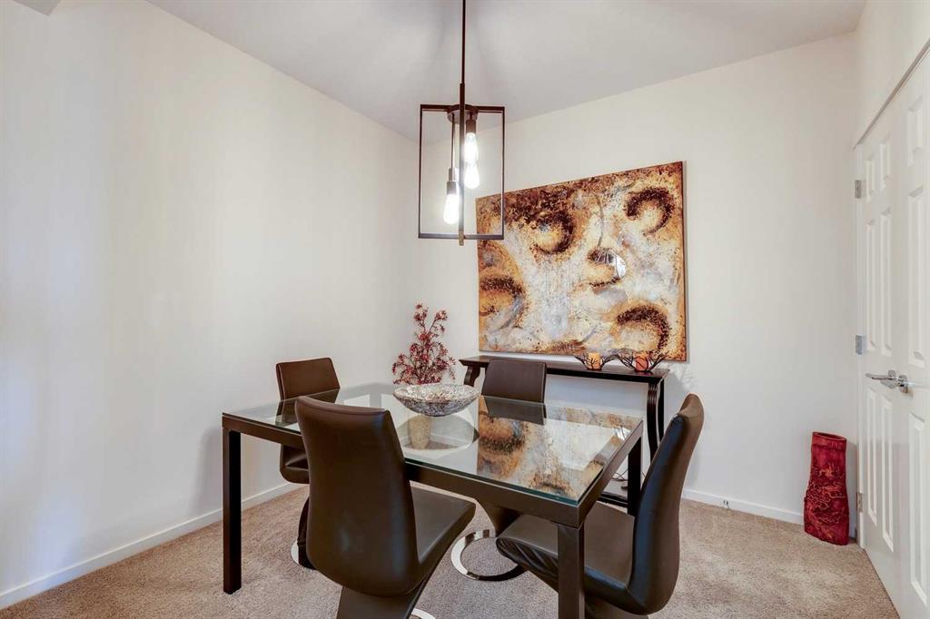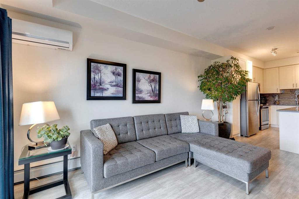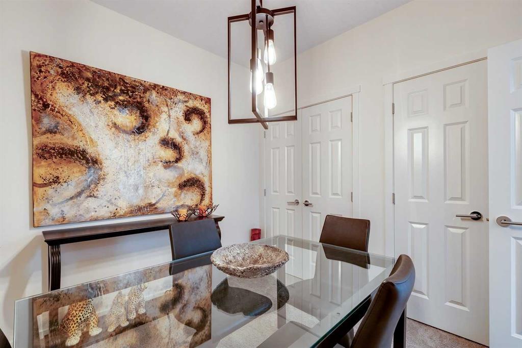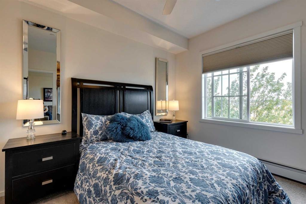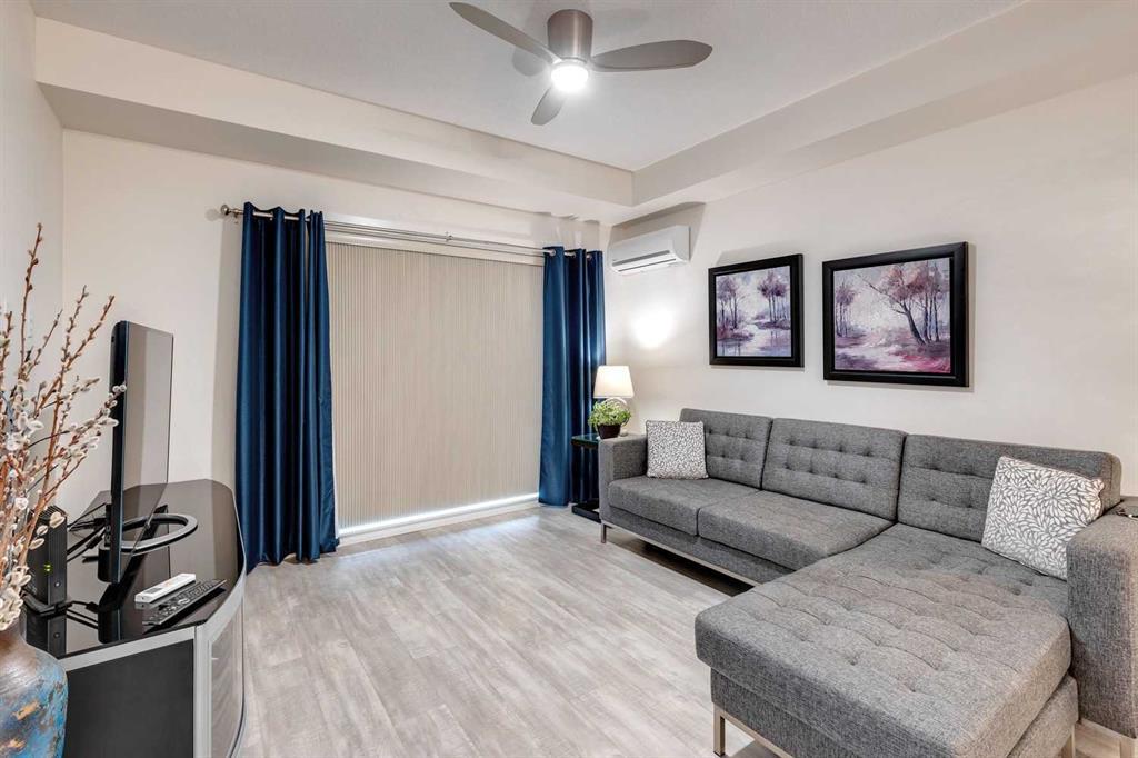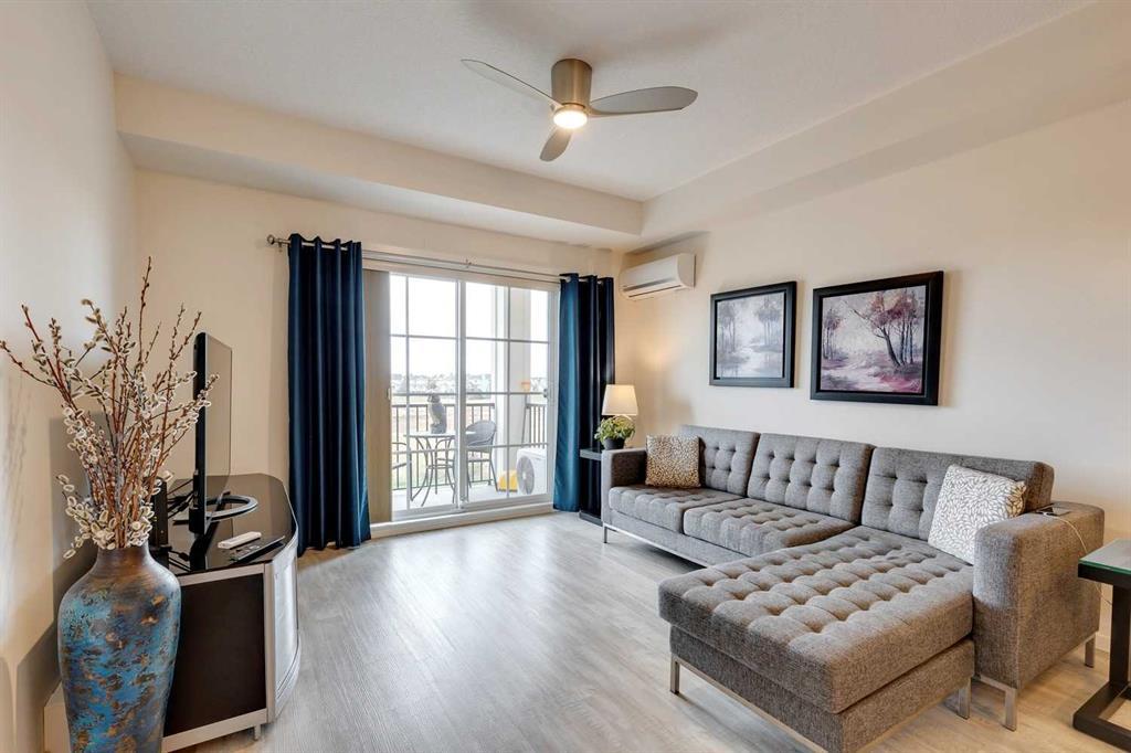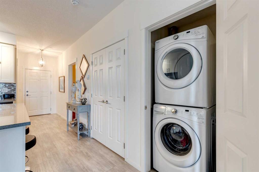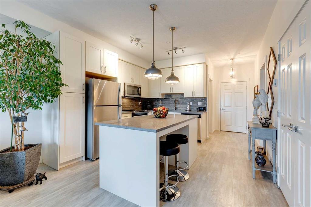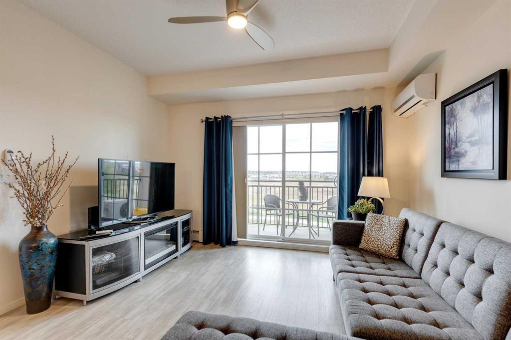 You’ll love this fully loaded 2bed+ 2bath Copperfield condo overlooking an environmental reserve that offers stunning views of the Rocky Mountains! The condo features beautiful luxury vinyl plank flooring that flows throughout the open-concept living space highlighted by an impressive kitchen equipped with every upgrade imaginable including quartz countertops, glass tile backsplash, upgraded appliances, and a custom 6 ft island breakfast bar that allows seating for 4 (unique to this unit only). The cozy living room connects to the generous balcony where you'll enjoy every evening watching the sunset and mornings with your coffee and the beautiful Rocky Mountains. You’ll continue to be impressed by the spacious primary bedroom which offers a walk-through closet and a private ensuite with quartz countertops. The secondary bedroom can also be utilized as a flex room and offers wall to wall closet space providing ample storage! The unit is complete with an upgraded second full bathroom including quartz countertops, full size in-suite laundry, storage, and titled underground parking. ADDITIONAL HIGHLIGHTS INCLUDE: Air conditioning, ceiling fans, Hunter Douglas accordion style blackout blinds, new light fixtures throughout and a bbq gas line. Conveniently located within minutes of all of life's amenities at South Trail Crossing and quick access the future green line LRT and the ring road - this beautiful condo has been extremely well cared for and the building has been extremely well managed making it a great opportunity for an investment property of the perfect fit for a first-time home buyer or downsizer. (id:22211)