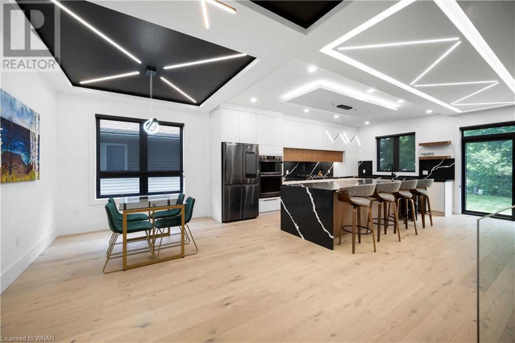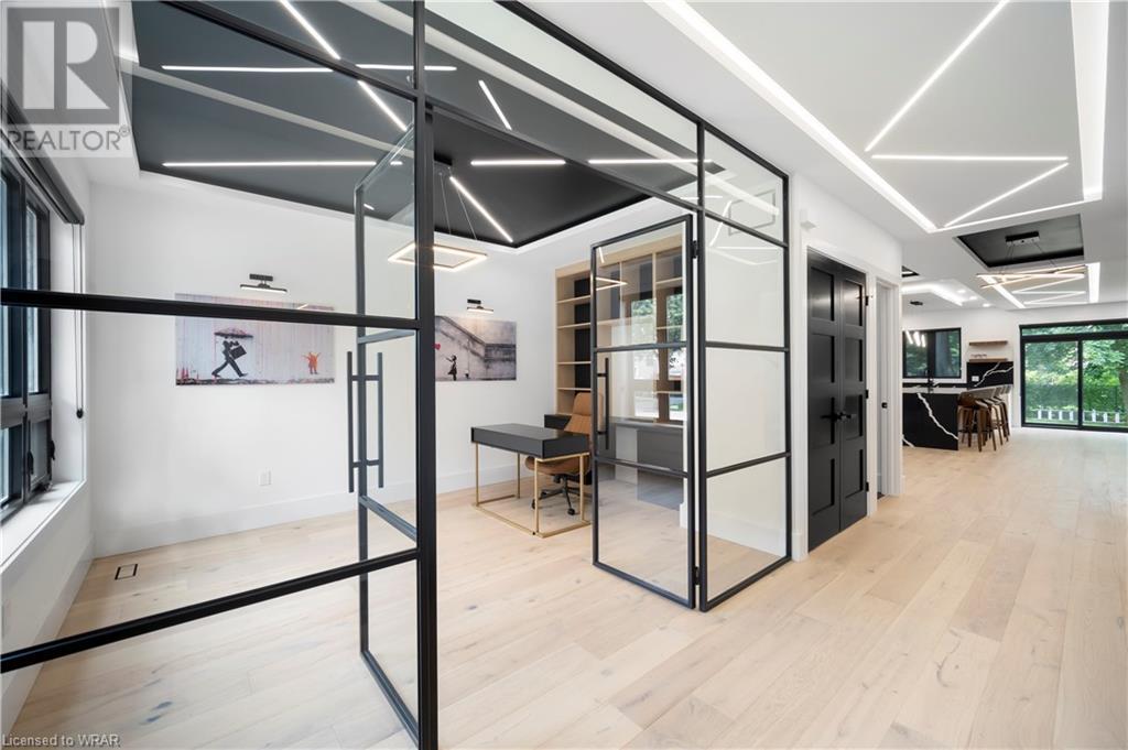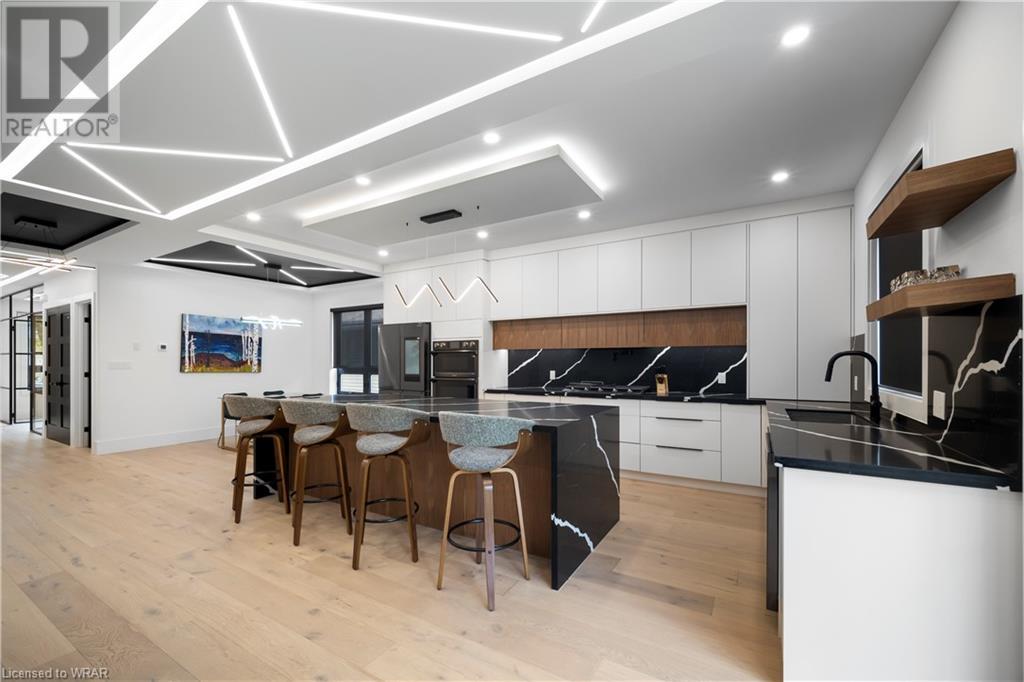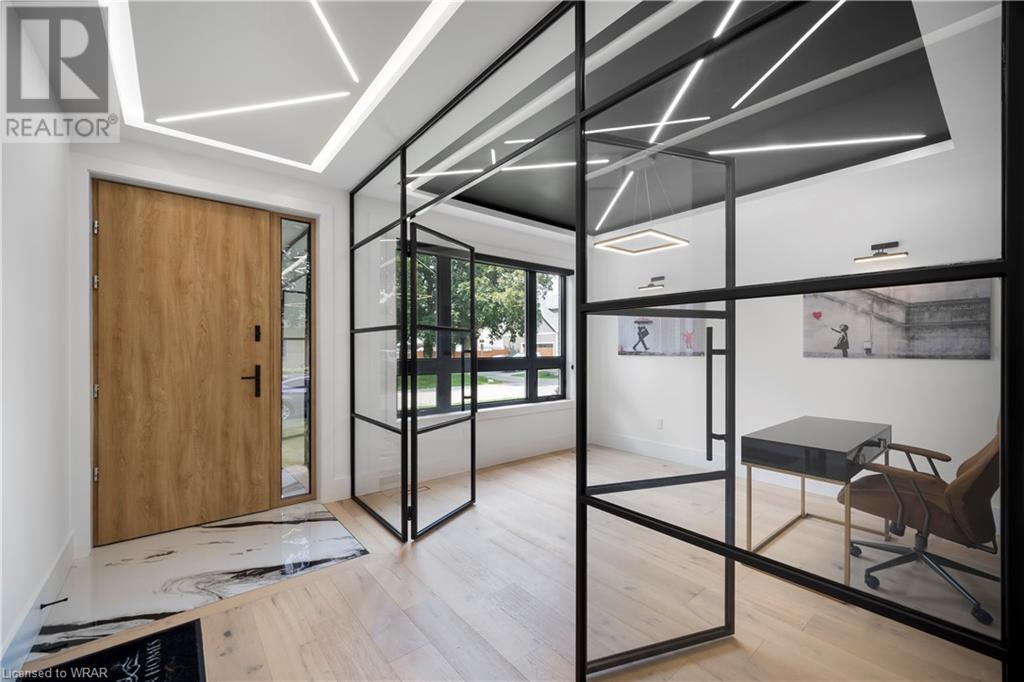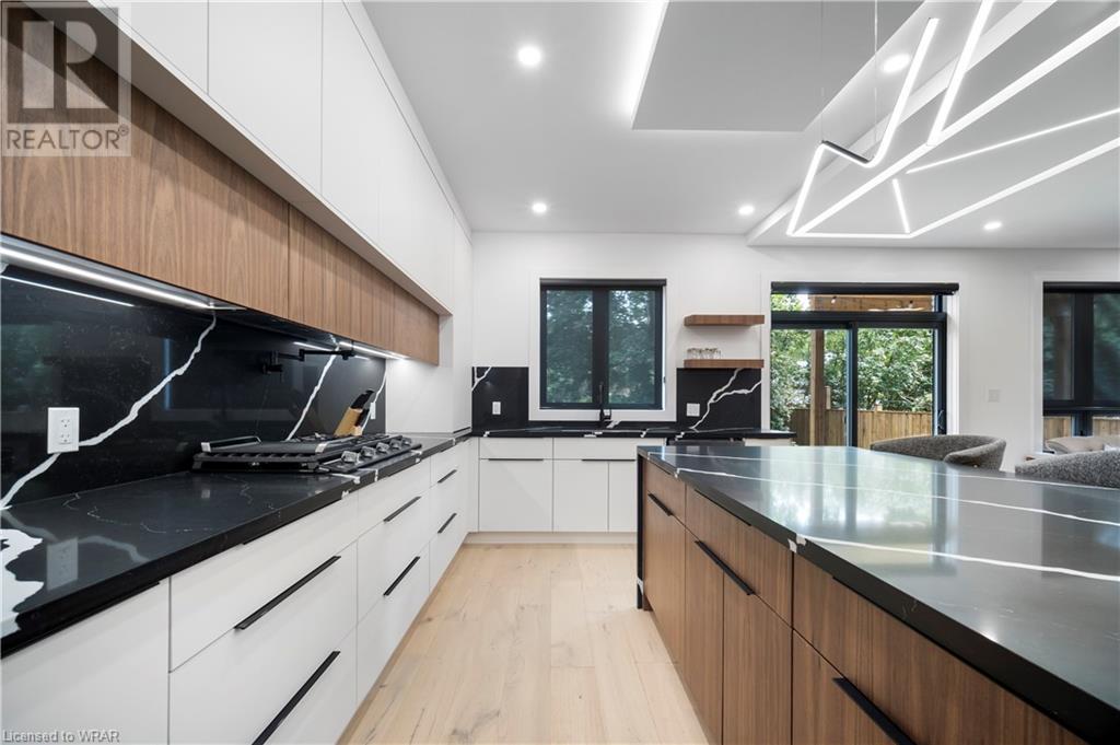 Introducing 107 Maplewood Ave., a captivating and beautifully designed home located in the vibrant city of Cambridge, Ontario. Nestled in a desirable neighborhood, this property offers a unique combination of modern elegance and comfortable living. As you step inside, you'll be greeted by a grand foyer with a private office space with high ceilings and an abundance of natural light that sets the tone for the rest of the house. The main level features an open-concept layout that seamlessly connects the living, dining, and kitchen areas, creating a spacious and welcoming atmosphere. The family room exudes warmth and coziness, with a fireplace as its centerpiece, making it the perfect place to unwind and relax. The open concept living area is perfect for hosting gatherings and special occasions, while large windows provide scenic views of the surrounding landscape. The gourmet kitchen is a chef's dream, equipped with top-of-the-line stainless steel appliances, quartz countertops, ample storage, and a functional island that doubles as a breakfast bar. Whether you're cooking for yourself or a crowd, this kitchen is sure to inspire your culinary creativity. Upstairs, the luxurious primary bedroom suite offers a private retreat with a walk-in closet and a spa-like ensuite bathroom featuring a soaking tub and a separate glass-enclosed shower. Three additional well-appointed bedrooms and another two full bathrooms to provide comfort and convenience for family members or guests. Situated in a sought-after area, 107 Maplewood Ave is conveniently located near schools, parks, shopping centers, and major highways, making it easy to enjoy all that Cambridge has to offer. With its modern design, premium finishes, and prime location, this property presents a rare opportunity to own a truly exceptional custom built home. Don't miss your chance to experience the epitome of refined living at 107 Maplewood Ave. (id:22211)
