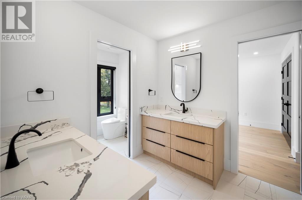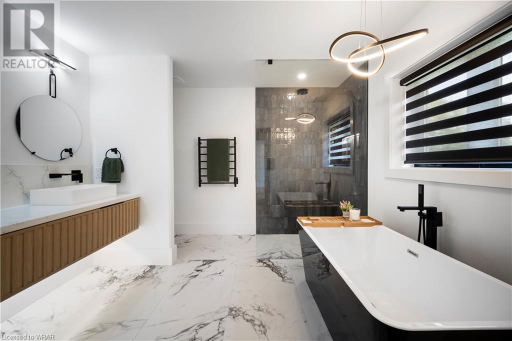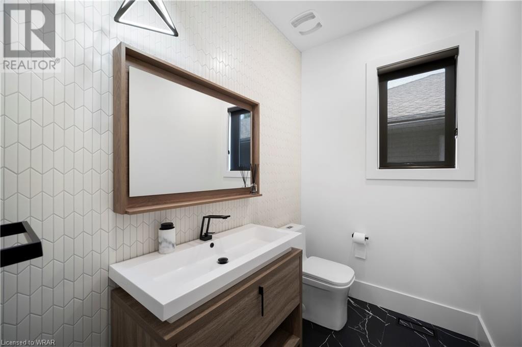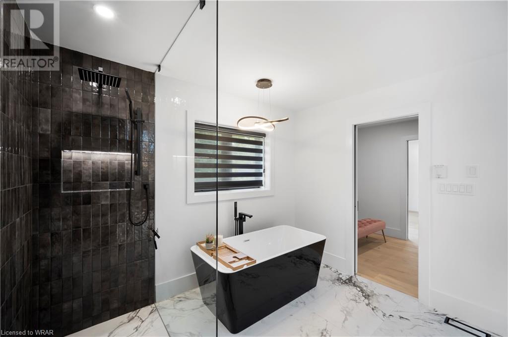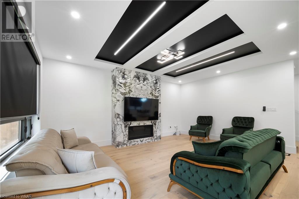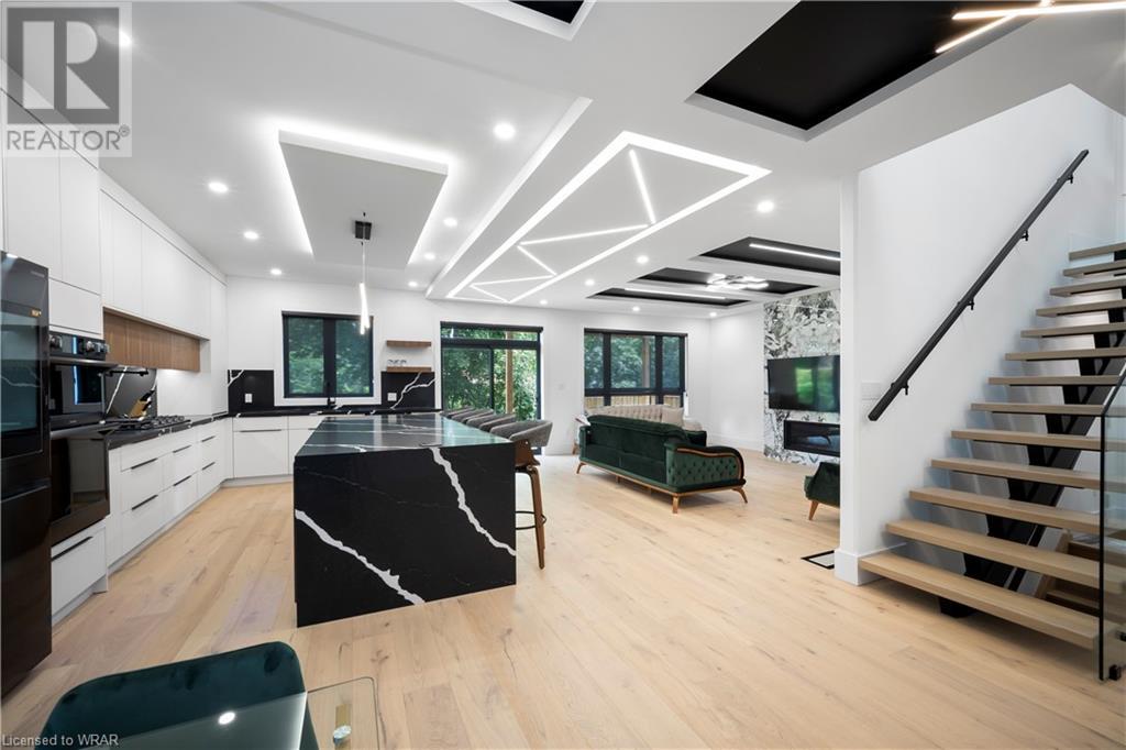 Introducing 107 Maplewood Ave., a captivating and beautifully designed home located in the vibrant city of Cambridge, Ontario. Nestled in a desirable neighborhood, this property offers a unique combination of modern elegance and comfortable living. As you step inside, you'll be greeted by a grand foyer with a private office space with high ceilings and an abundance of natural light that sets the tone for the rest of the house. The main level features an open-concept layout that seamlessly connects the living, dining, and kitchen areas, creating a spacious and welcoming atmosphere. The family room exudes warmth and coziness, with a fireplace as its centerpiece, making it the perfect place to unwind and relax. The open concept living area is perfect for hosting gatherings and special occasions, while large windows provide scenic views of the surrounding landscape. The gourmet kitchen is a chef's dream, equipped with top-of-the-line stainless steel appliances, quartz countertops, ample storage, and a functional island that doubles as a breakfast bar. Whether you're cooking for yourself or a crowd, this kitchen is sure to inspire your culinary creativity. Upstairs, the luxurious primary bedroom suite offers a private retreat with a walk-in closet and a spa-like ensuite bathroom featuring a soaking tub and a separate glass-enclosed shower. Three additional well-appointed bedrooms and another two full bathrooms to provide comfort and convenience for family members or guests. Situated in a sought-after area, 107 Maplewood Ave is conveniently located near schools, parks, shopping centers, and major highways, making it easy to enjoy all that Cambridge has to offer. With its modern design, premium finishes, and prime location, this property presents a rare opportunity to own a truly exceptional custom built home. Don't miss your chance to experience the epitome of refined living at 107 Maplewood Ave. (id:22211)