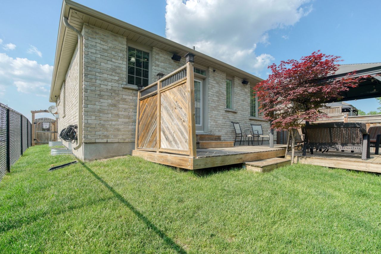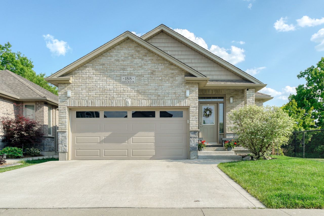 Welcome to 188 Maple Bush Dr in desirable East Galt. An attractive all brick bungalow with many upgrades and no rear neighbors. A quality built home featuring open concept layout, 9ft ceilings and hardwood throughout the main level. A spacious living room and dining room open to the upgraded kitchen with island, a pantry, granite countertops and over/under cabinet lighting. Primary bedroom with walk-in closet and 4pc ensuite including a double vanity and large shower. Completing the main level is a 2nd bedroom, 4pc main bathroom and a convenient laundry room with garage access. The finished basement offers a family room with gas fireplace, an additional bedroom, exercise room (could be a 4th bedroom) and a lavish bathroom with jet tub. The fully fenced backyard backs onto green and features a 2 tiered deck with gazebo and shed. This property is located in a prime location close to schools, walking trails, parks and all amenities.