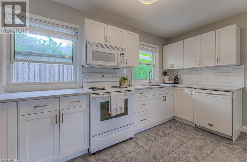 WELCOME HOME to this beautiful WEST GALT bungalow! This perfectly updated home is great for new families or those looking to downsize in a safe, family-friendly, quiet neighbourhood. This home features 2 bedrooms but can be easily converted back into 3 bedrooms. With modern elements such as the feature wall and updated bathroom and kitchen, mixed with the charm of the original hardwood floors, this house will not last long! The finished basement boasts a cozy family room, with additional storage and room for a workshop, and has a side entrance that gives this home potential for an in-law suite. The backyard is fully fenced and very private, with room for entertaining on the large patio, and is perfect for the remaining beautiful weather this year has to offer. Don't miss your chance on this beautiful home - contact us for your private viewing today! Windows, siding, furnace & AC 2012, Water softener 2013. Insulation was added to the attic in 2017. (id:22211)