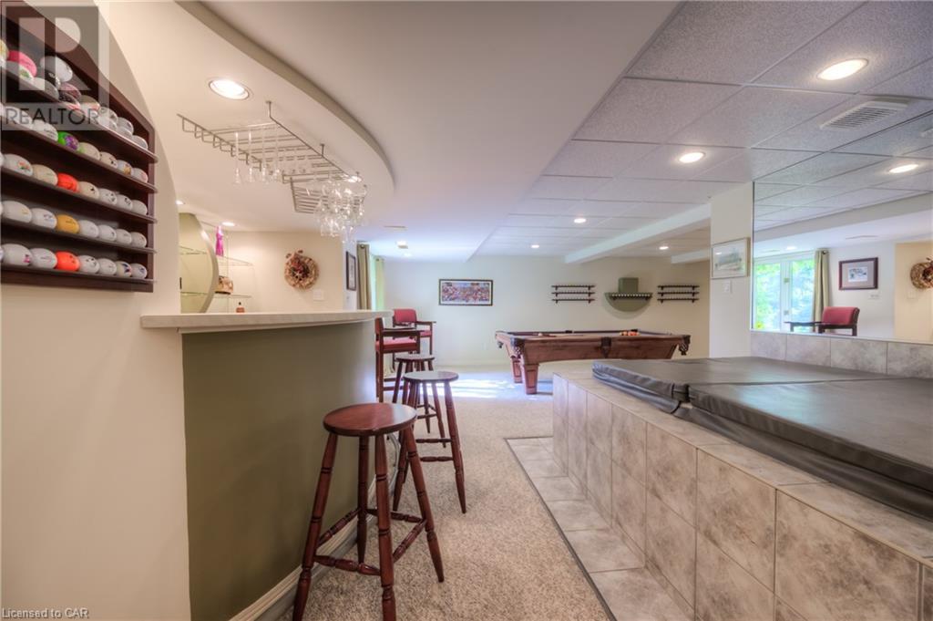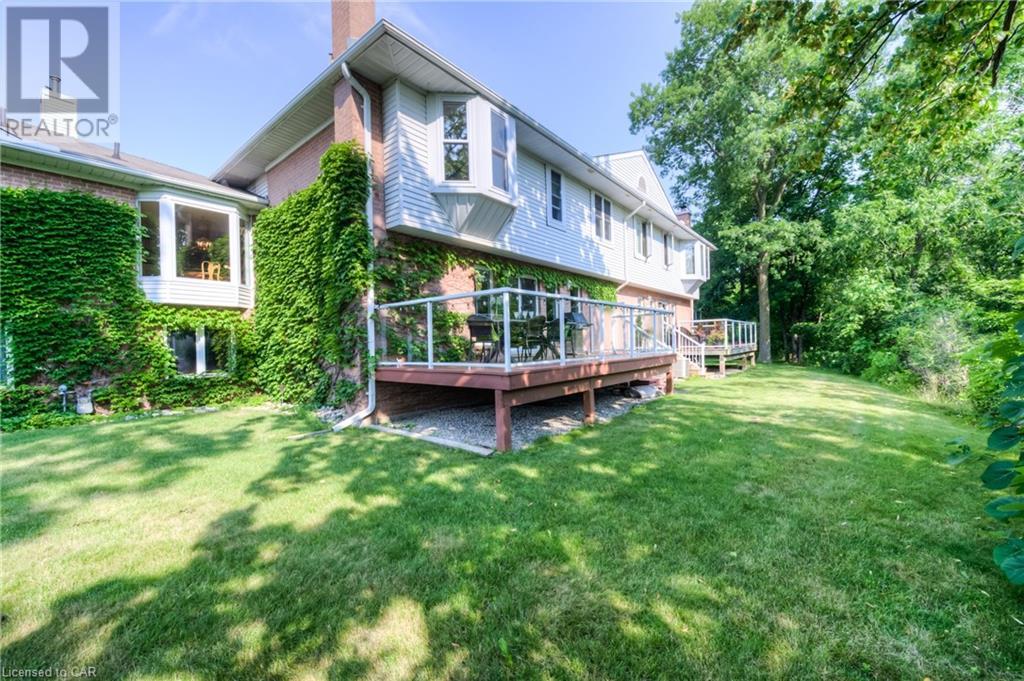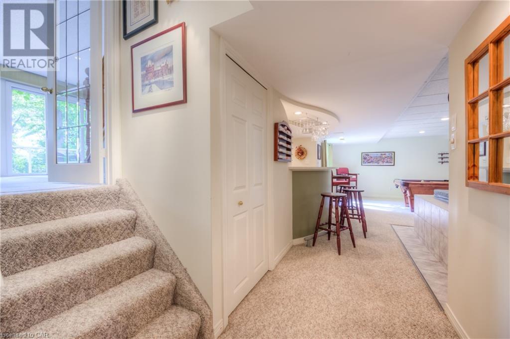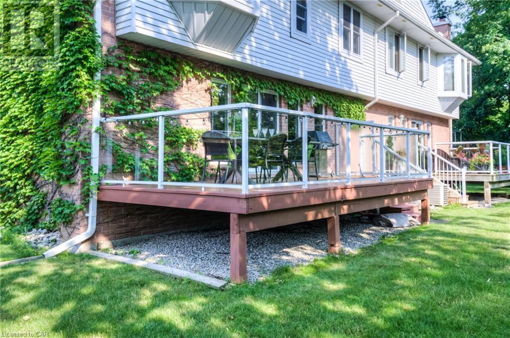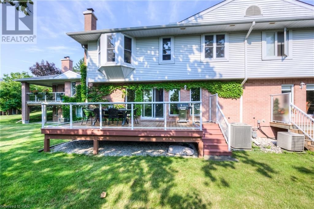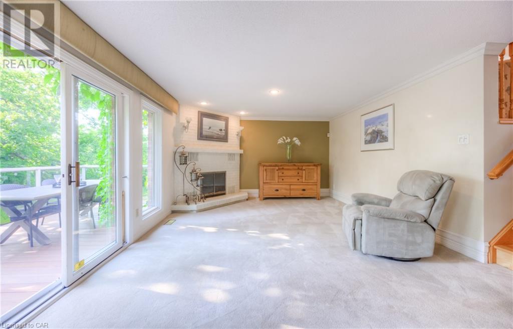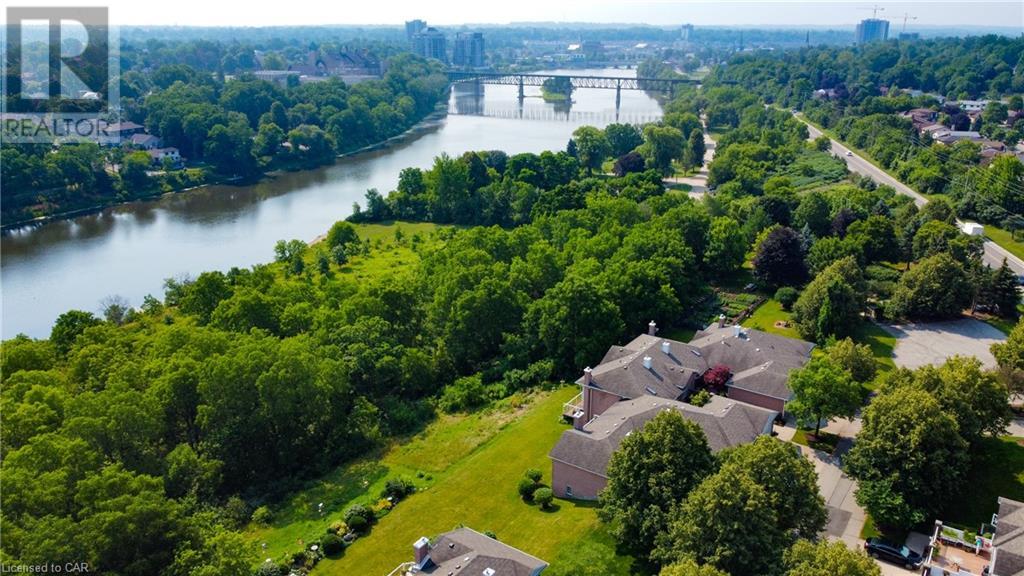 Welcome to the prestigious Riverwalk Community situated on the Grand River! This stunning 4 level backsplit unit offers solid hwd floors, vaulted ceilings, eat in kitchen, appliances, living &dining room combo, separate office/bedroom, 2 upper floor bedrooms with newer windows, newer ensuite and a panoramic view of the green space and river! The oversize family room offers a fireplace and a walk out to the newer composite deck overlooking the rear yard! Enjoy the games room with its wet Bar indoor hot tub,2 pc bath, laundry facilities and storage! This lifestyle includes the Quarry house Community Centre, garden plots and beautiful Canadian Wide' walking and bike trails! Close to downtown, the new Gas light district and quaint boutiques and restaurants! Hard to find a solid brick multi level unit on the river side with a double car garage! (id:22211)