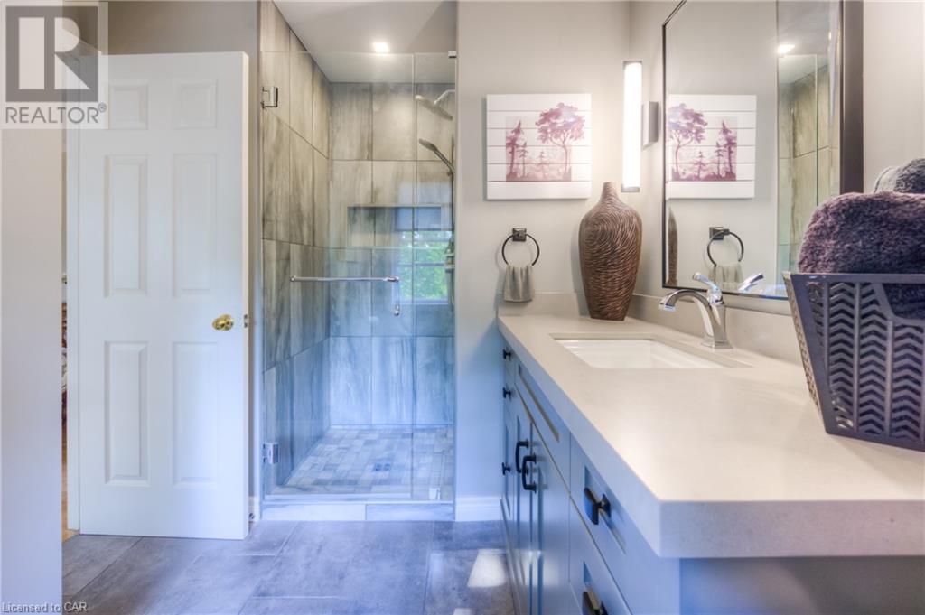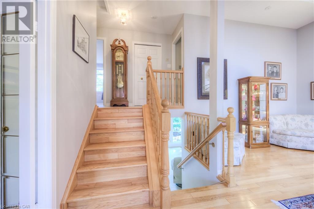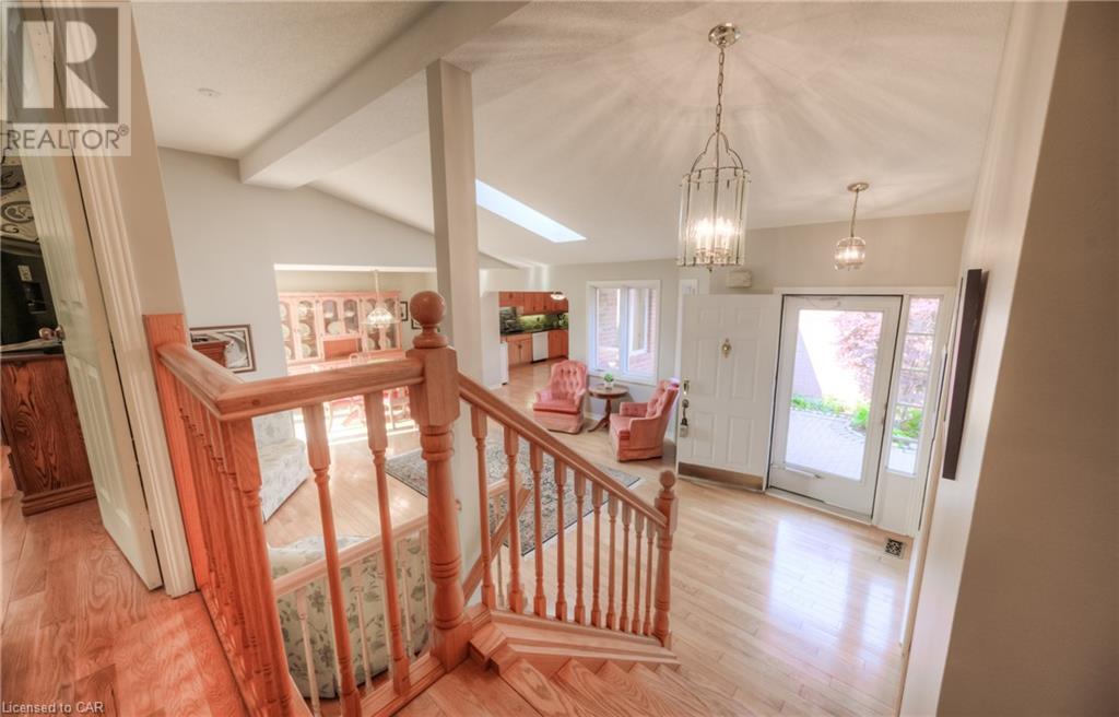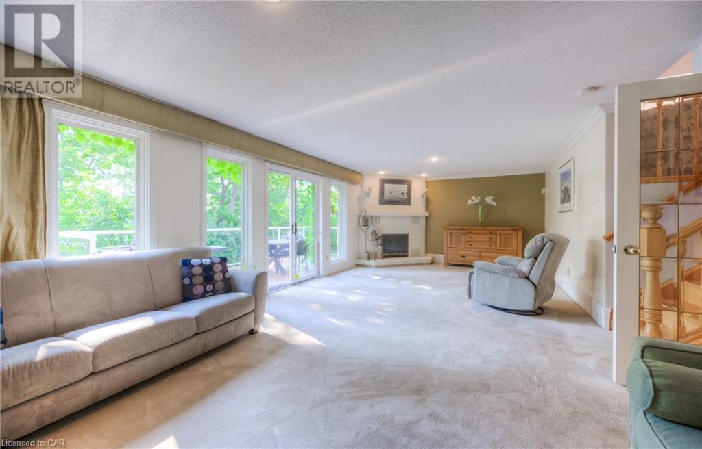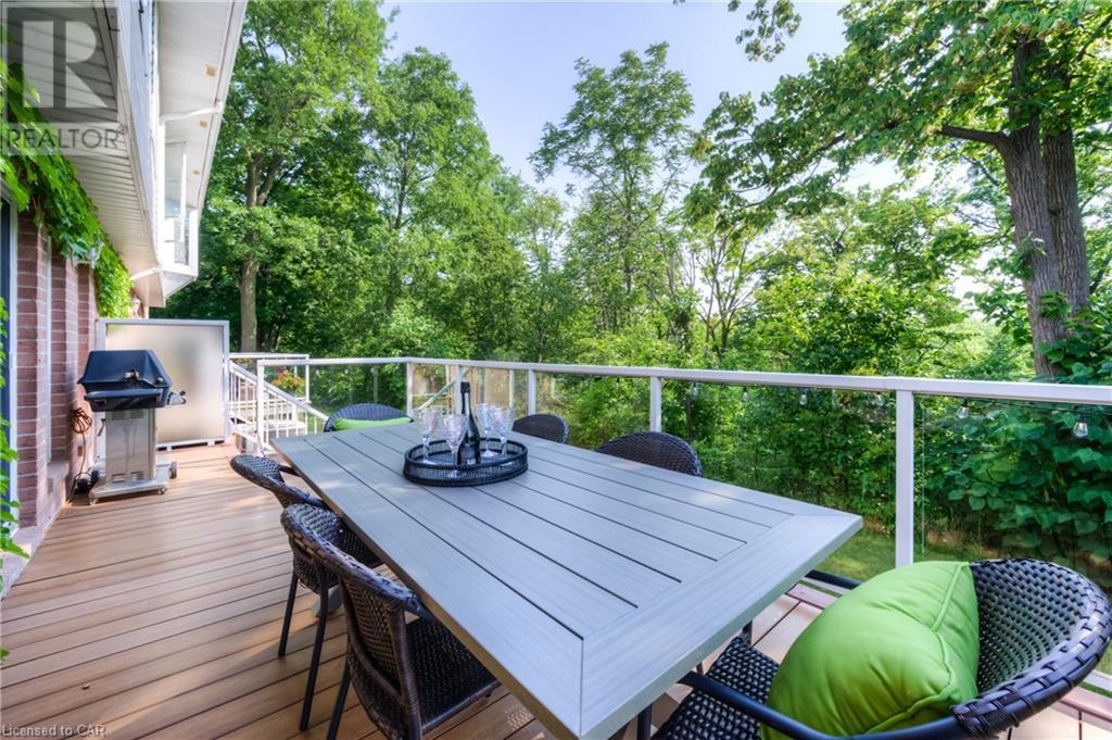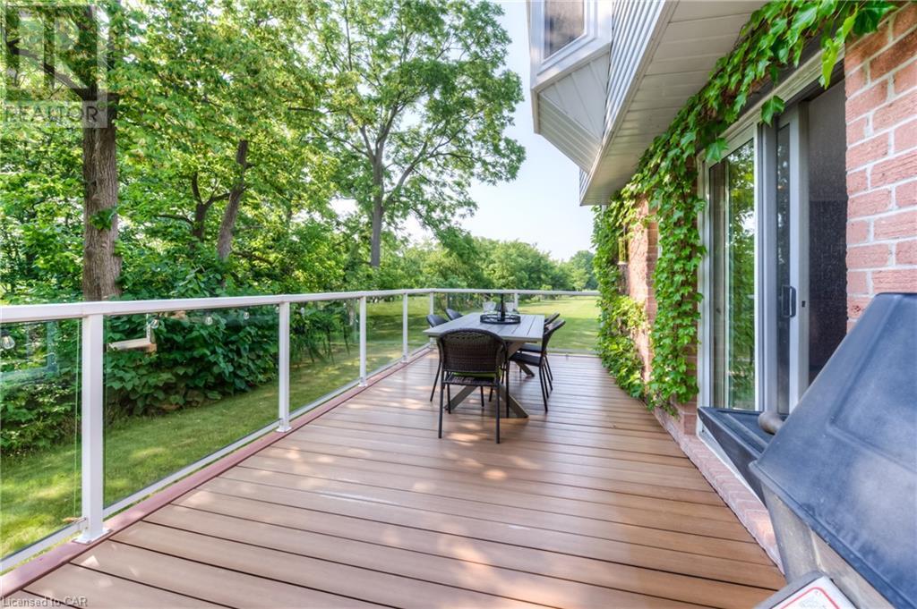 Welcome to the prestigious Riverwalk Community situated on the Grand River! This stunning 4 level backsplit unit offers solid hwd floors, vaulted ceilings, eat in kitchen, appliances, living &dining room combo, separate office/bedroom, 2 upper floor bedrooms with newer windows, newer ensuite and a panoramic view of the green space and river! The oversize family room offers a fireplace and a walk out to the newer composite deck overlooking the rear yard! Enjoy the games room with its wet Bar indoor hot tub,2 pc bath, laundry facilities and storage! This lifestyle includes the Quarry house Community Centre, garden plots and beautiful Canadian Wide' walking and bike trails! Close to downtown, the new Gas light district and quaint boutiques and restaurants! Hard to find a solid brick multi level unit on the river side with a double car garage! (id:22211)