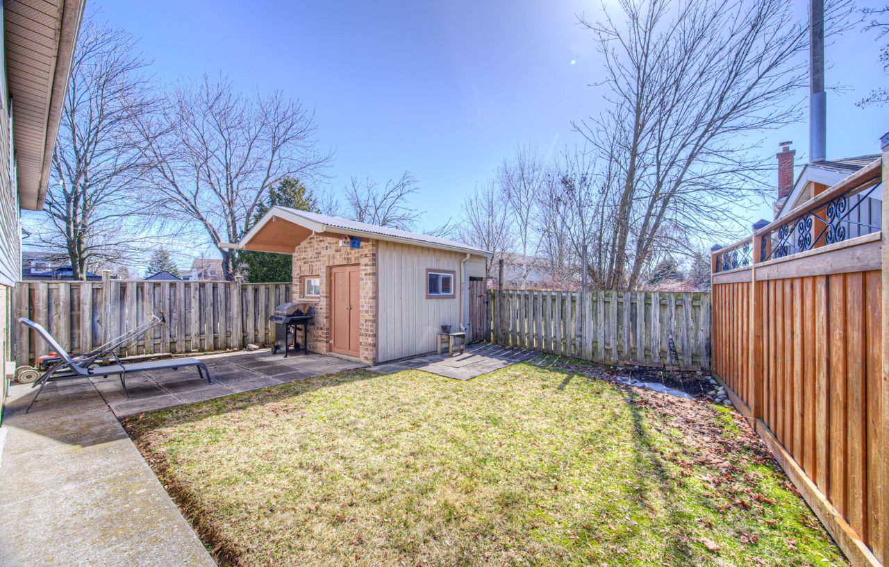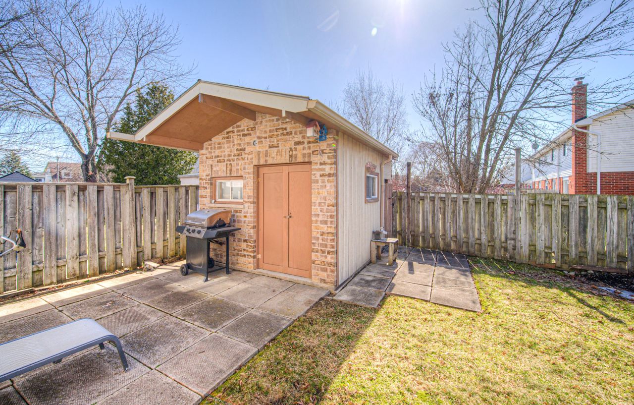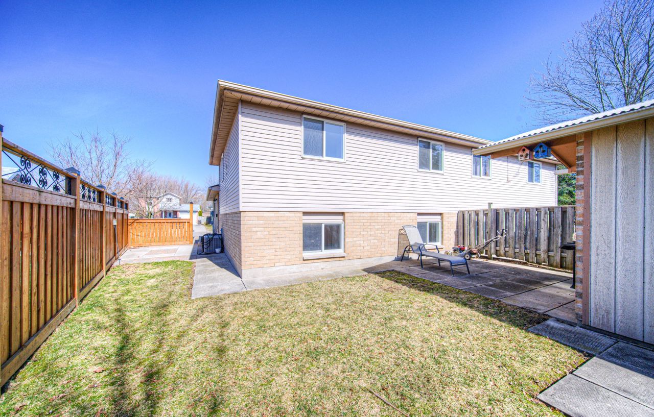 SPACIOUS 4-LEVEL BACK-SPLIT! This fully finished back-split semi-detached home offers over 1400 sqft including all 3 levels with 3+1 bedrooms and 2 full bathrooms, making it ideal for a growing family. The upper level features 3 generously sized bedrooms, while the main level boasts a large eat-in kitchen with a skylight, adding warmth and natural light. The bright living room is highlighted by a picturesque window. The third lower level offers a spacious family room, a 3pc bathroom, and an additional bedroom with a large window overlooking the backyard. The 4th basement level remains unfinished, offering endless possibilities-whether it's a home office, gym, or extra storage space. The fully fenced backyard includes a patio and a shed for added storage, and the property provides parking for 2 vehicles, plus a single-car garage with convenient inside entry. This home is perfect for first-time buyers, investors, or empty nesters looking to downsize. And lets talk about the incredible location-just minutes from Churchill Park, scenic trails, shopping, and more! Quick access to Highways 24 & 8 and only 15 minutes from Highway 401.