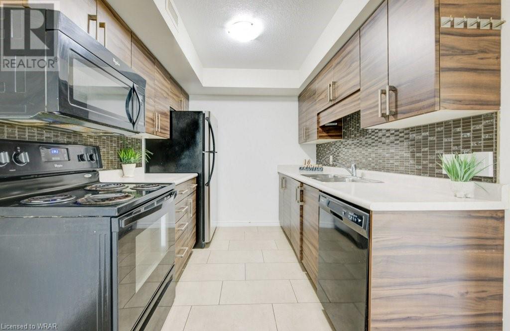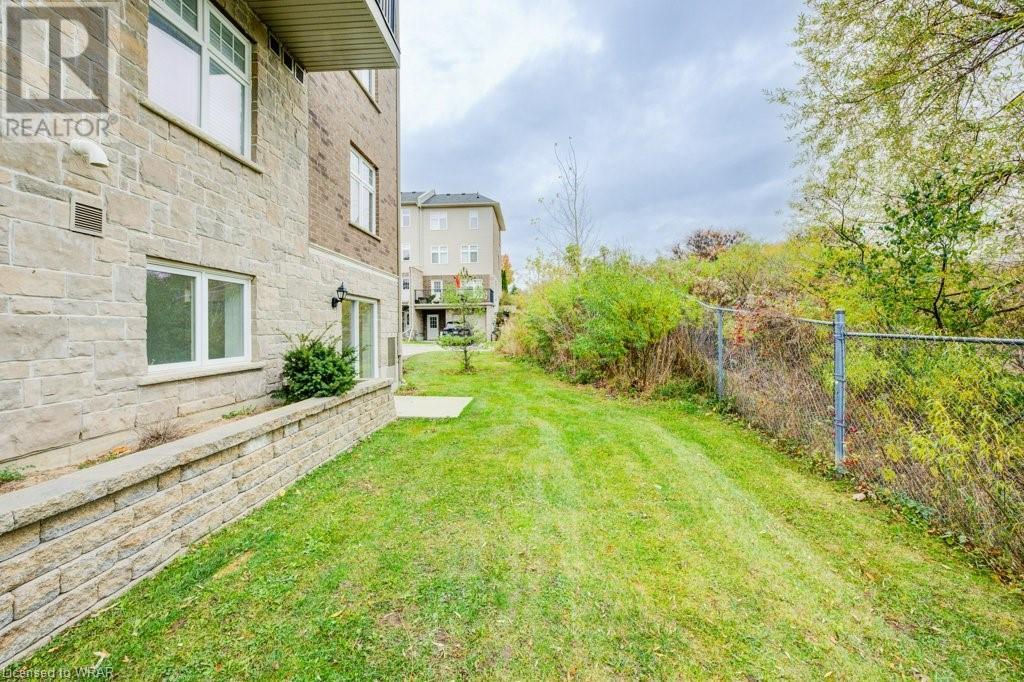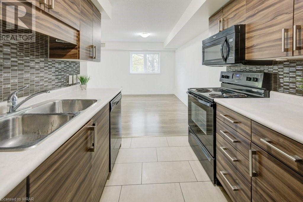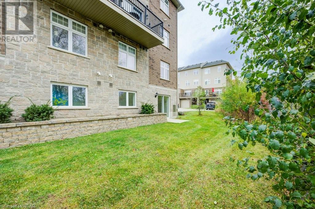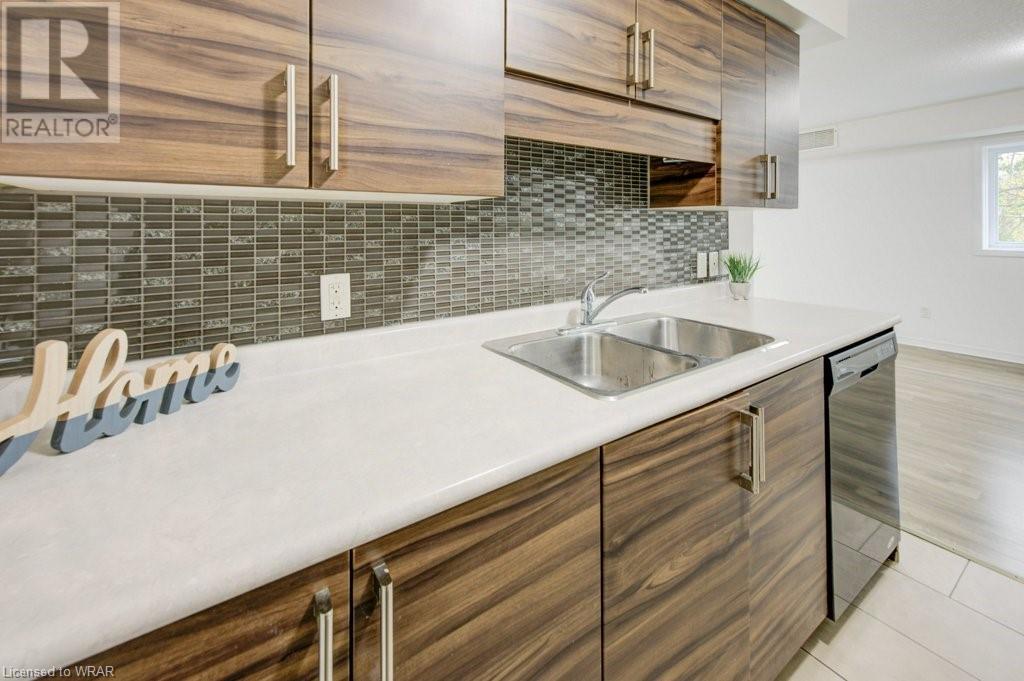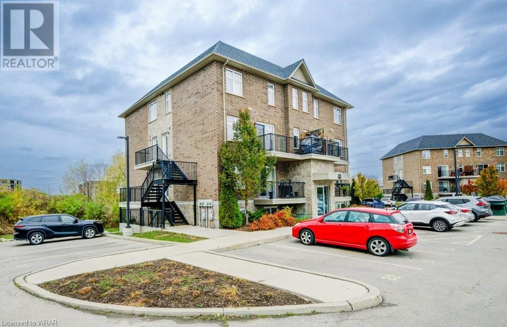 Quiet, convenient and affordable! This ground floor residence boasts a large covered porch with multiple walkouts and amazing side and back views of the lush greenspace. As you make your way inside, you will notice the freshly painted walls and sleek hard surface flooring as it leads you to the open concept living space! The modern kitchen offers plenty of cabinets and counterspace and features a gorgeous mosaic glass backsplash, double stainless-steel sink, upgraded hardware and includes 4 black appliances! The large living room is great for entertaining family and friends and offers an abundance of natural light as well as a sliding door with access to the private yard space overlooking the peaceful pond, where you can relax while taking in the sights and sounds of nature! As you make your way down the hall, you will notice the laundry room is conveniently located right outside the spacious bedrooms (washer/dryer included)! The expansive primary bedroom also offers natural light, privileged ensuite and both bedrooms offer decent sized closets! Located very close to both Highway 24 & 8, Churchill Park, The Grand River & Trails, Historic Downtown Cambridge, The Gaslight District, Savannah Golf Links and so many more amenities! This unit is definitely one you’ll want to view in person! Please note living room and primary bedroom have been virtually staged. (id:22211)