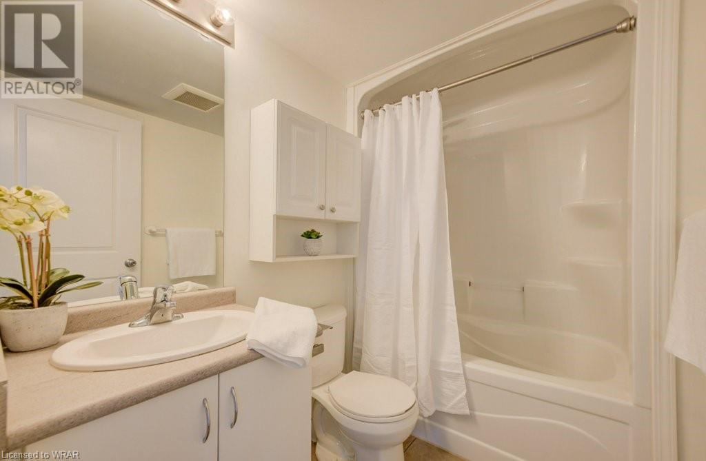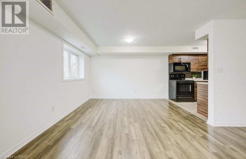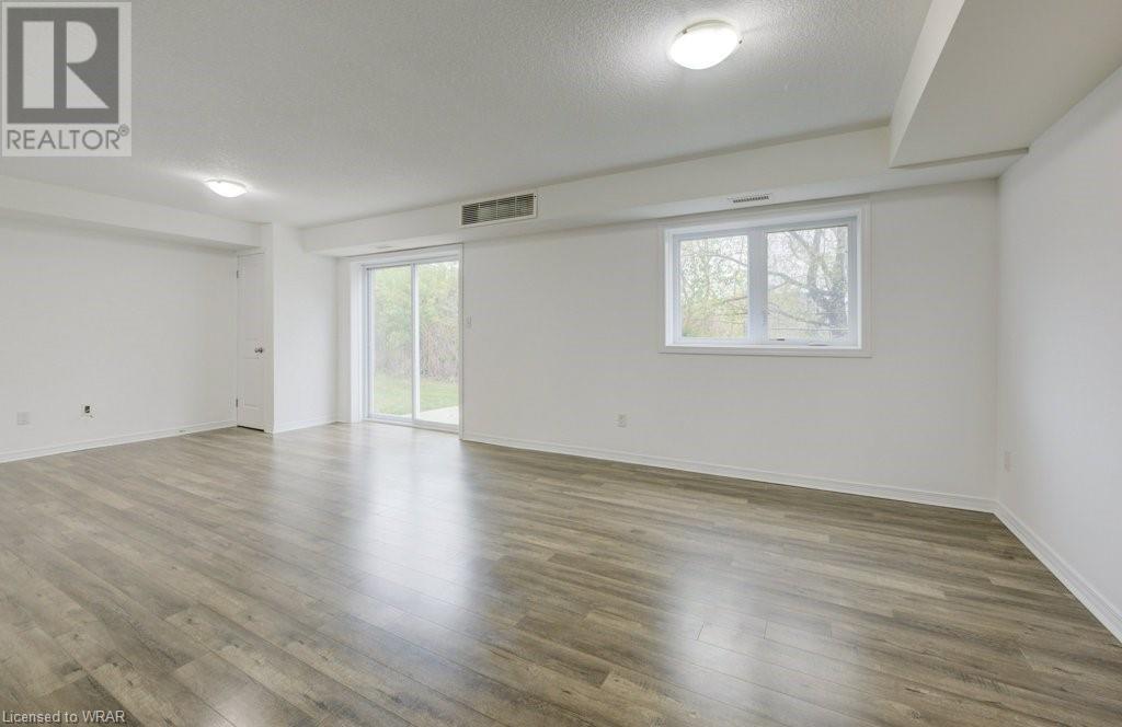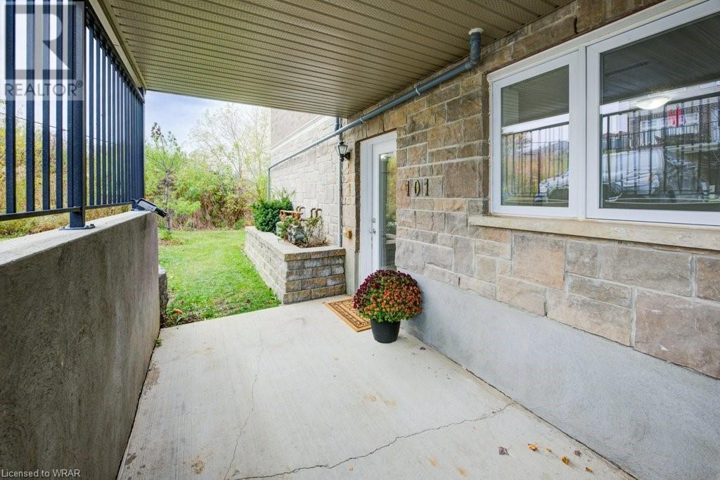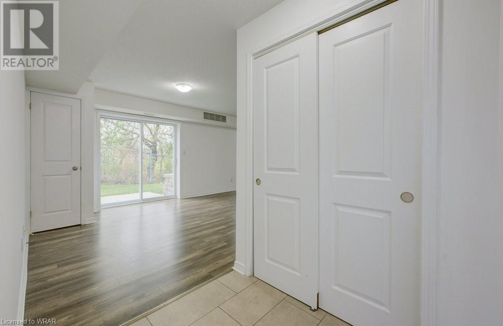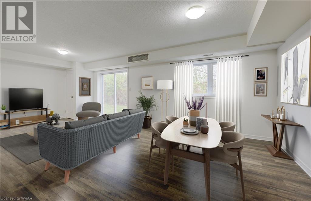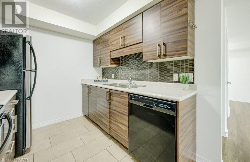 Quiet, convenient and affordable! This ground floor residence boasts a large covered porch with multiple walkouts and amazing side and back views of the lush greenspace. As you make your way inside, you will notice the freshly painted walls and sleek hard surface flooring as it leads you to the open concept living space! The modern kitchen offers plenty of cabinets and counterspace and features a gorgeous mosaic glass backsplash, double stainless-steel sink, upgraded hardware and includes 4 black appliances! The large living room is great for entertaining family and friends and offers an abundance of natural light as well as a sliding door with access to the private yard space overlooking the peaceful pond, where you can relax while taking in the sights and sounds of nature! As you make your way down the hall, you will notice the laundry room is conveniently located right outside the spacious bedrooms (washer/dryer included)! The expansive primary bedroom also offers natural light, privileged ensuite and both bedrooms offer decent sized closets! Located very close to both Highway 24 & 8, Churchill Park, The Grand River & Trails, Historic Downtown Cambridge, The Gaslight District, Savannah Golf Links and so many more amenities! This unit is definitely one you’ll want to view in person! Please note living room and primary bedroom have been virtually staged. (id:22211)