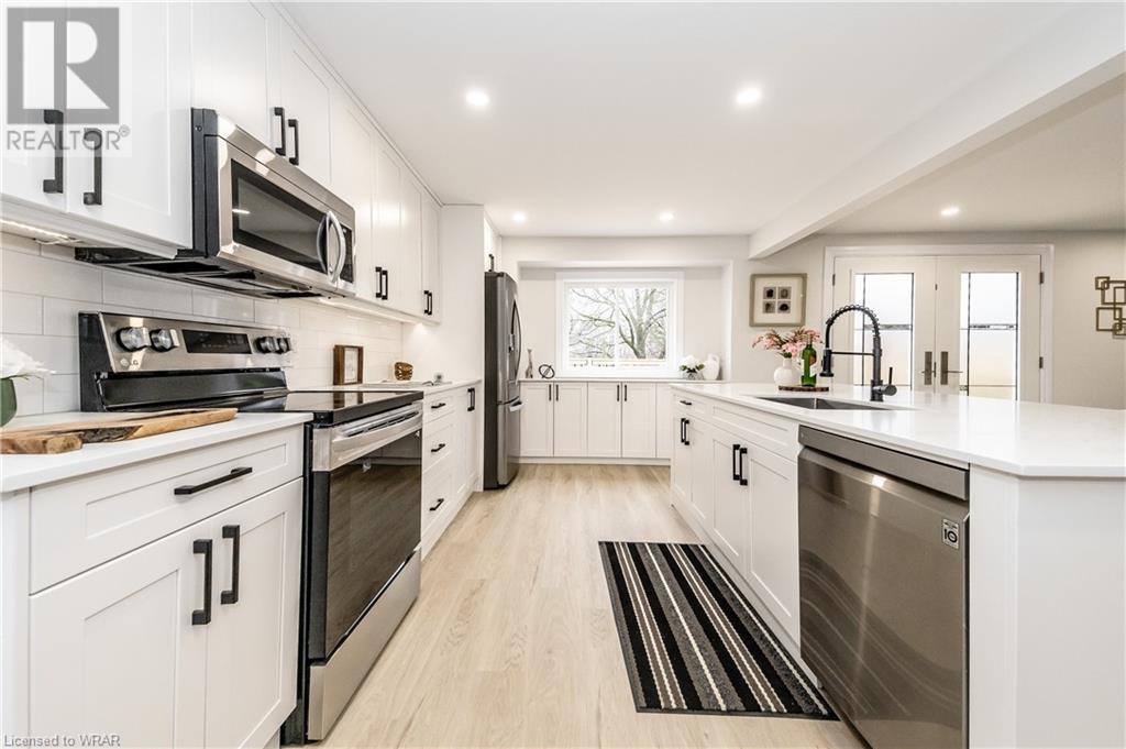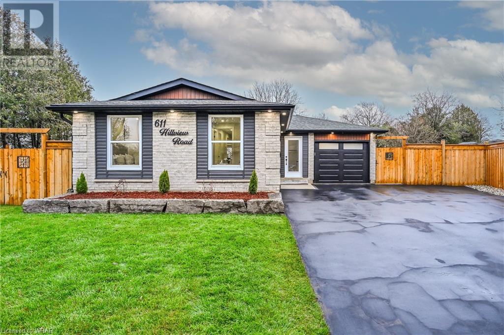 Welcome to a truly unique bungalow that redefines the meaning of home. Impeccably renovated & boasting a separate two-bedroom in-law apartment in the basement, this property sets a new standard for excellence. Situated on a generously-sized pie-shaped lot, the backyard is an absolute showstopper. Perched atop a hill, it offers a view that stretches for miles, granting you unparalleled privacy. You'll feel like you're on top of the world, looking out over the rooftops & embracing the vast beauty of the Grand River valley. Every inch of this home, both inside and out, has been lovingly renewed, ensuring nearly everything is brand new. With fantastic curb appeal, fresh fencing, and a meticulous attention to detail, this property is primed and ready for its new owner. Step inside and prepare to be amazed. Every inch of this home has been transformed with painstaking attention to detail. From the moment you cross the threshold, you'll be greeted by a space that seamlessly blends modern comfort with timeless elegance. Brand new fixtures, top-tier finishes, and a design sensibility that leaves no stone unturned. The result is a home that not only looks and feels immaculate but one that's also equipped for the demands of modern living. It's not just a house; it's a masterpiece of craftsmanship and a testament to the pursuit of perfection. But what truly makes this property incomparable is its long-term investment potential. Not only is it a beautiful home, it's also a lifestyle investment. From the easy access to HWY 401 to the nearby Blair Nature Trails, the new soccer facilities on Fountain St, Conestoga College campuses, and the plethora of amenities at Sportsworld Dr, your future here is filled with convenience and endless possibilities. When you invest in 611 Hillview Rd, you're not just buying a house – you're securing your slice of heaven with the promise of lasting value and a lifetime of enjoyment. Don't miss this extraordinary opportunity; your dream home awaits. (id:22211)