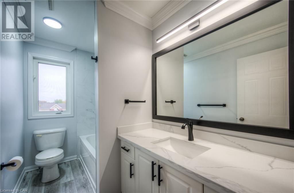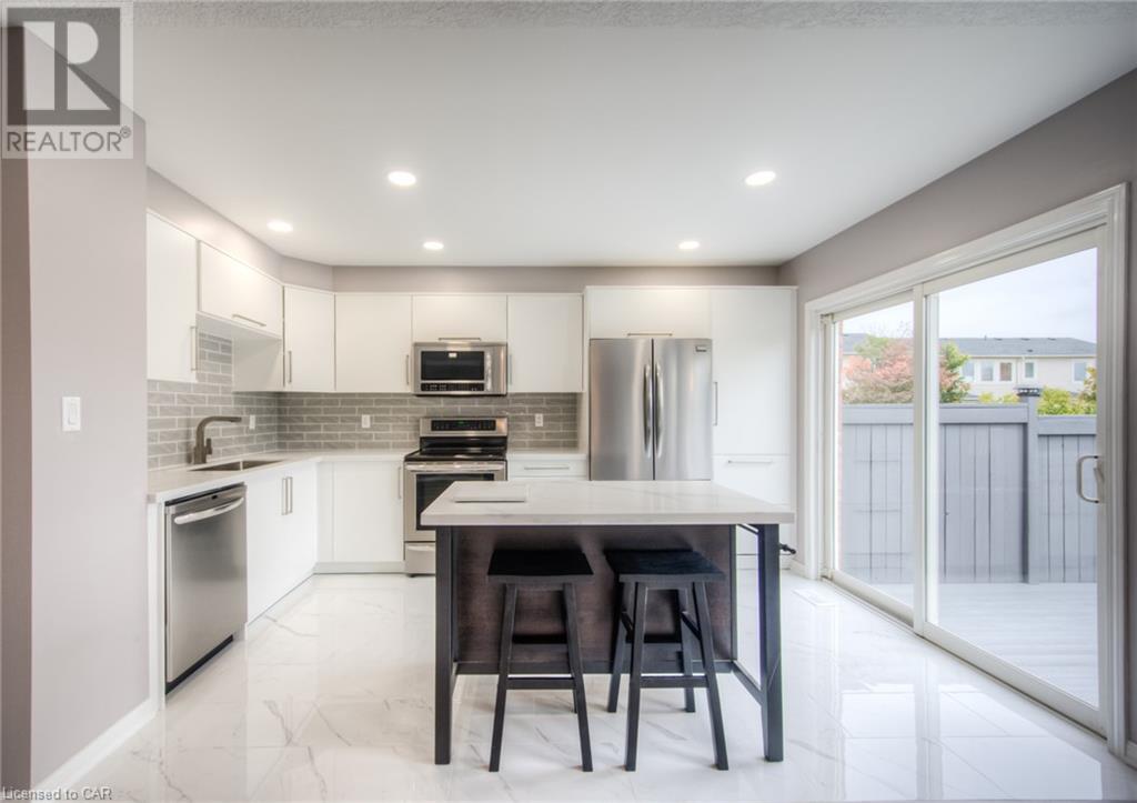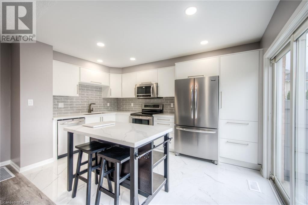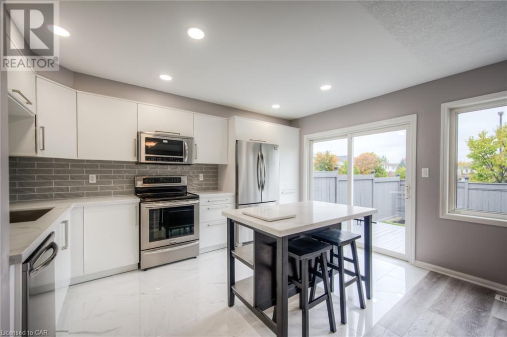 RECENTLY RENOVATED EXECUTIVE TOWNHOUSE NOW AVAILABLE. Welcome to 3-71 Garth Massey Drive! This townhouse boasts stunning curb appeal with mature landscaping, brick exterior, and covered front porch. Welcome your guests into the bright foyer with access to the single-car garage and modern powder room. Light-filled and spacious, the living room is perfect for young families or entertaining family and friends with its open concept layout. The contemporary kitchen features sleek white cabinetry, stainless steel appliances, tile flooring, gray subway tile backsplash and island with quartz countertops. Additionally, the kitchen, with sliding glass patio doors leads to the fully fenced backyard with a deck and easy to maintain garden. Back inside, the second floor features a spacious primary bedroom with walk-in closet, two additional sizable bedrooms and a fully updated 4-piece bath. Located conveniently with minutes to the 401, close to trails, parks, schools, shopping and entertainment, this home has it all and is perfect for investors or first time home buyers! With all the beautiful upgrades, this home won't last long! Book your showing today! (id:22211)