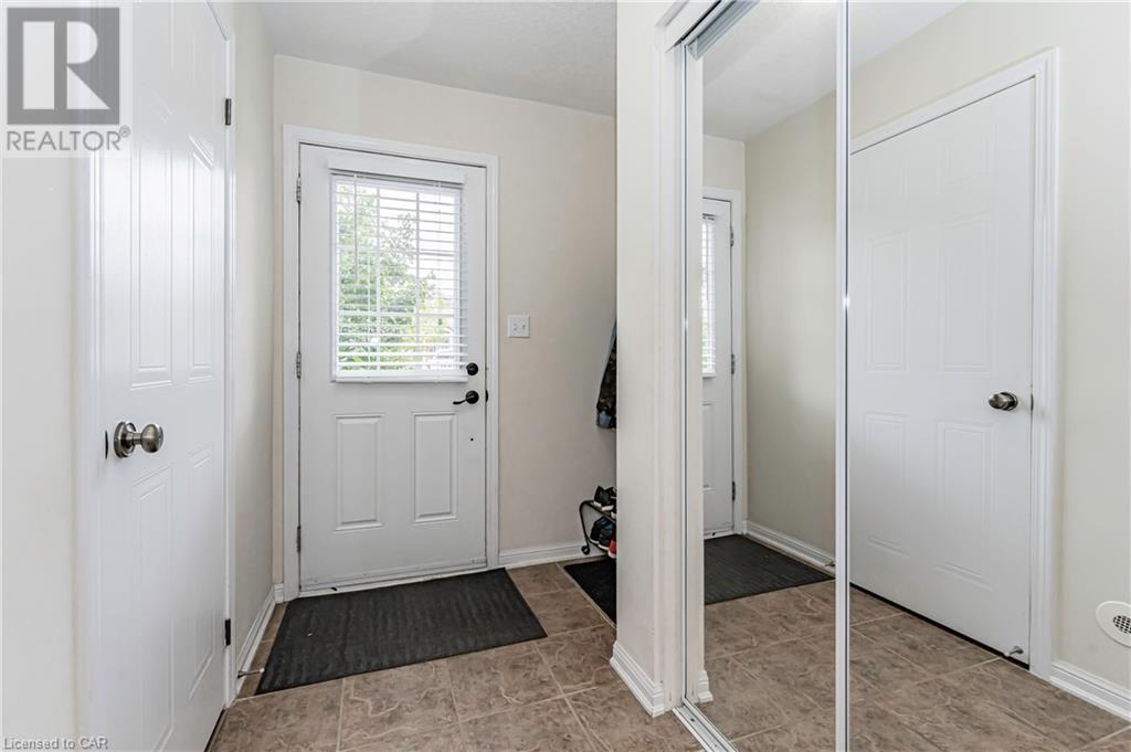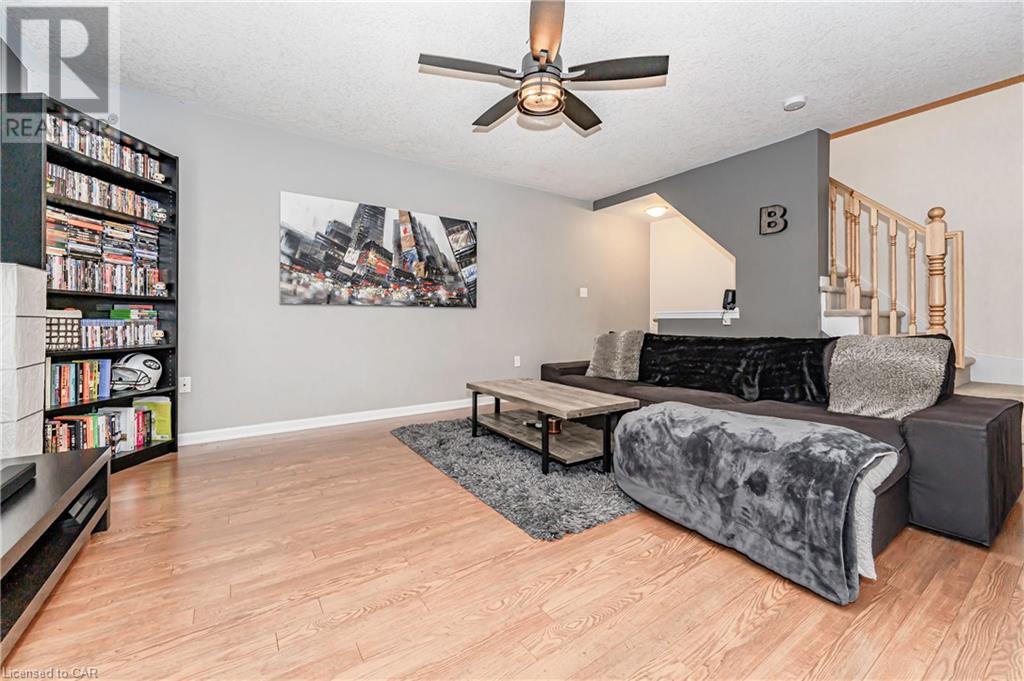 Welcome home to this end unit condo with low fees located minutes to the 401! When you walk in the front door there is a large foyer, 2 pc powder room and laundry room. The second floor features a private balcony family room, dining area, galley style kitchen with lots of counter space, breakfast bar and cupboards with a chalkboard wall! The third floor is complete with 2 spacious bedrooms and a 4 piece bathroom. This condo has lots of natural light, single garage and right across from the visitor parking! Book your showing today! (id:22211)