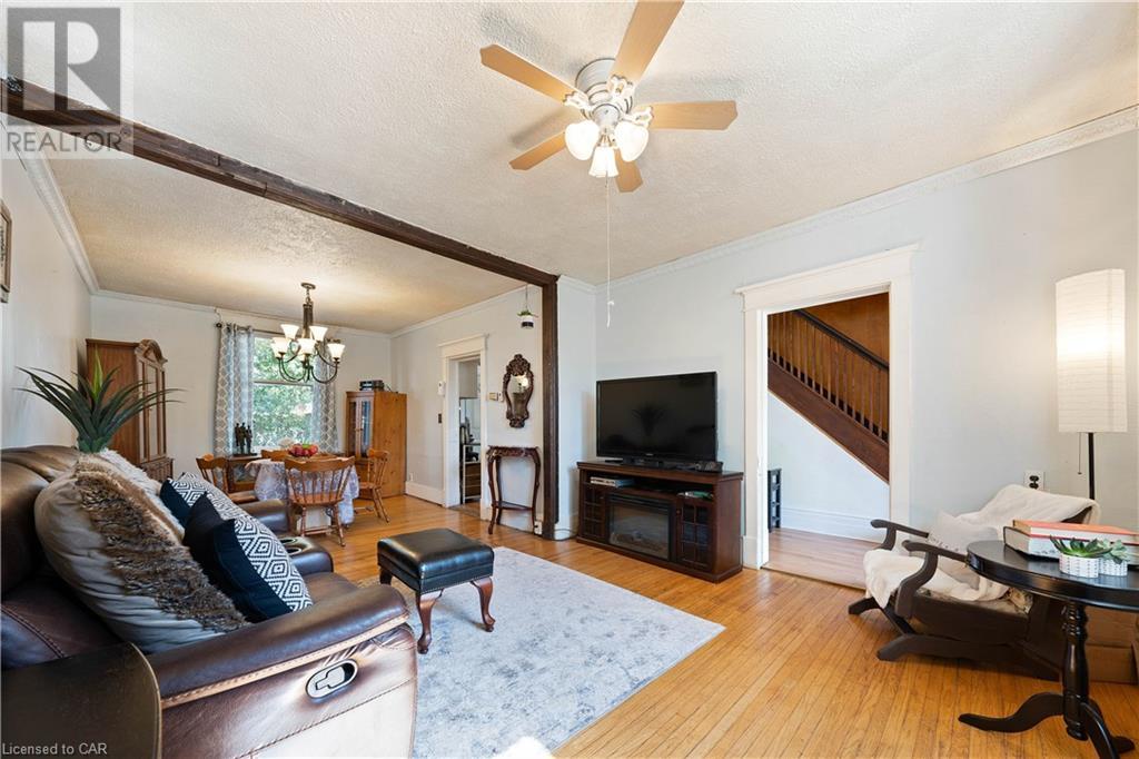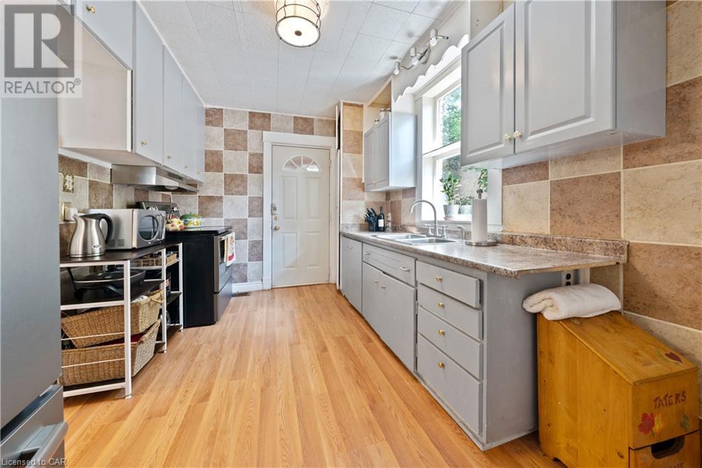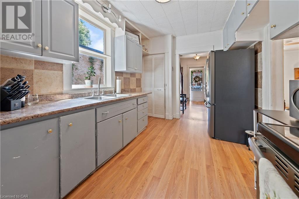 This brick, century, 2-storey charmer awaits your personal touches to make it your own. The main floor features high ceilings allowing plentiful natural light throughout the living/dining area with large windows. The second storey features 3 nice sized bedrooms, original floor & main bath. The 40 ft x 110 ft lot offers parking on each side of the home, with a separate side entrance for direct access to the downstairs or main floor kitchen. The partially finished basement offers additional living space and has potential to be modified to suit your needs. You don't want to miss out on viewing this private backyard in person! It's a beautiful space to be enjoyed daily and a great place to entertain. If you're a handy-man don't forget to peek in the potential shop with electricity to start planning your next home projects! Last but not least, this home is zoned R4. So whether you're looking for your first home, investment property, making a move - or looking to explore your options regarding opening office space... schedule your showing today. Fantastic location, close to grocery stores, shopping plazas, downtown Galt & Gas Light District, public transportation, and more. (id:22211)