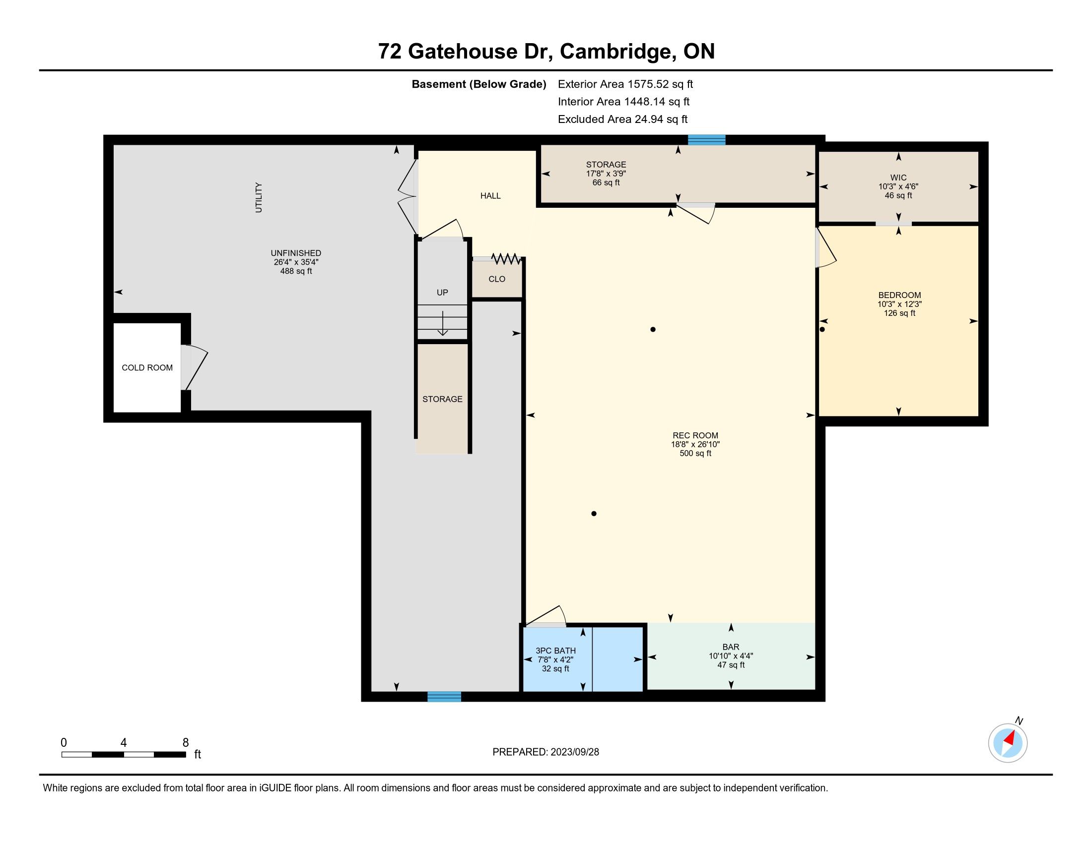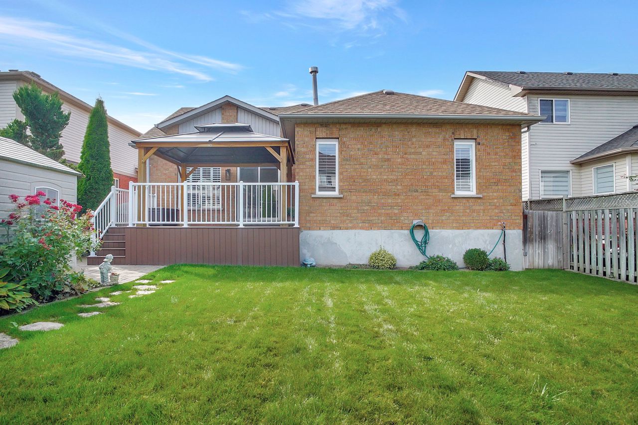 Welcome to 72 Gatehouse Drive, Cambridge. A spacious 3 bed, 3 bath bungalow with stunning curb appeal featuring an aggregate driveway and stamped concrete walkway and front porch. Open-concept design with 9ft ceilings, vaulted ceilings in dining/living room, and hardwood flooring. A $40,000 kitchen renovation in 2022 features quartz countertops, stainless steel appliances, and a gas stove. The primary bedroom boasts a 5-piece ensuite, and there's main floor laundry for convenience. The finished basement with a wet bar, playroom/den, and bathroom is perfect for entertaining. Step outside to a fenced backyard with a shed, composite deck, gazebo, and irrigation system. Close to schools, this property offers modern living in a sought-after neighborhood. Make this exceptional residence your own.
