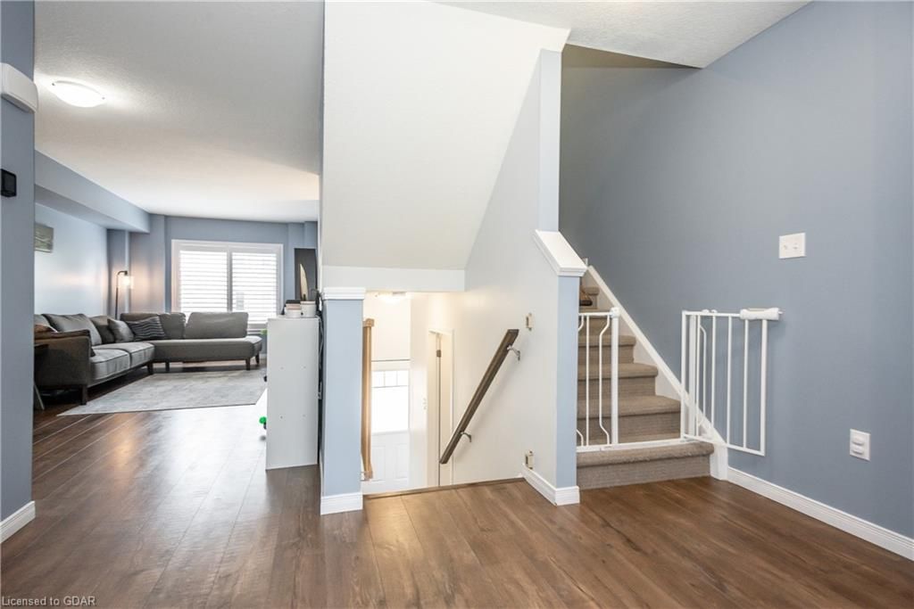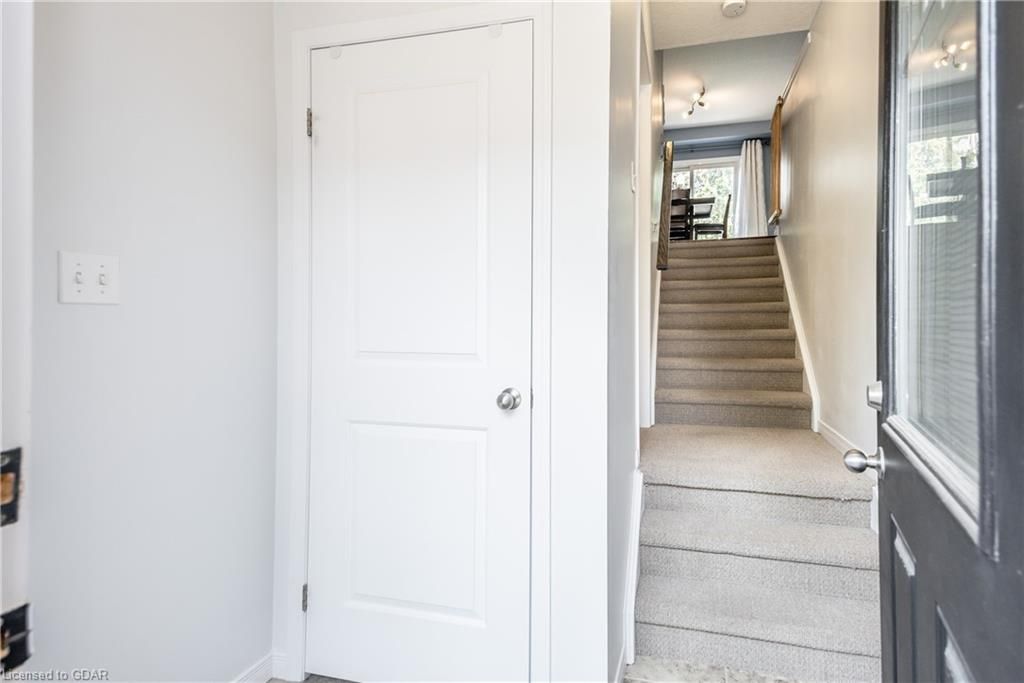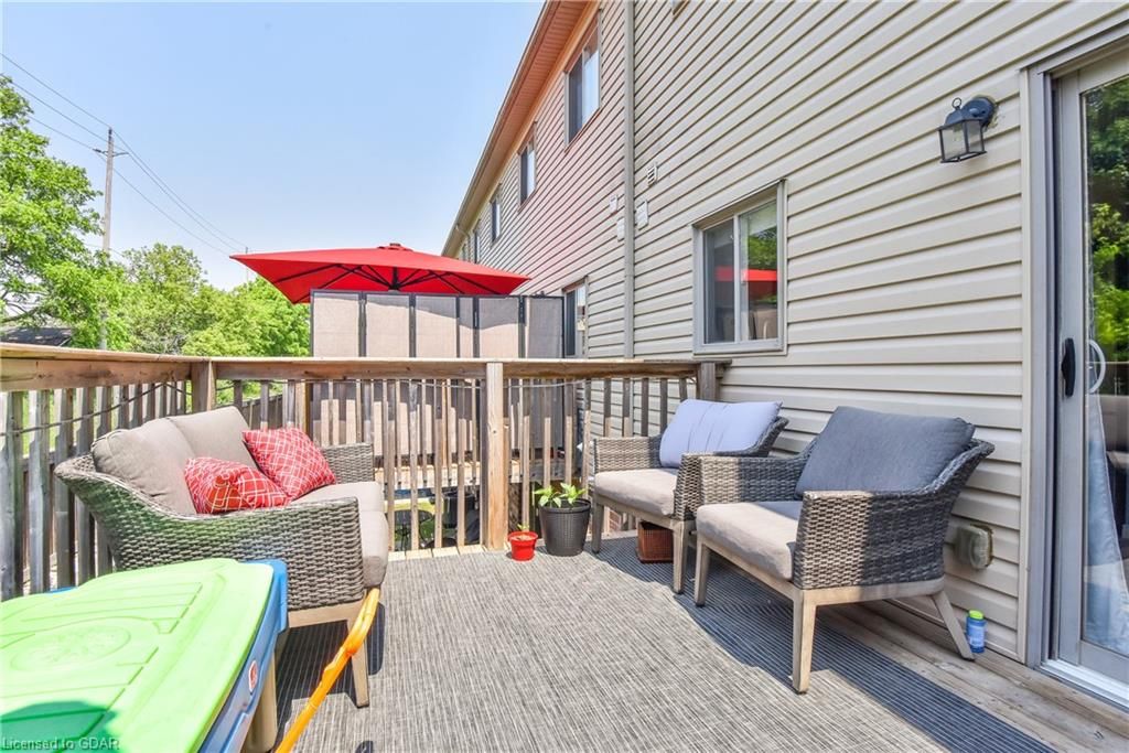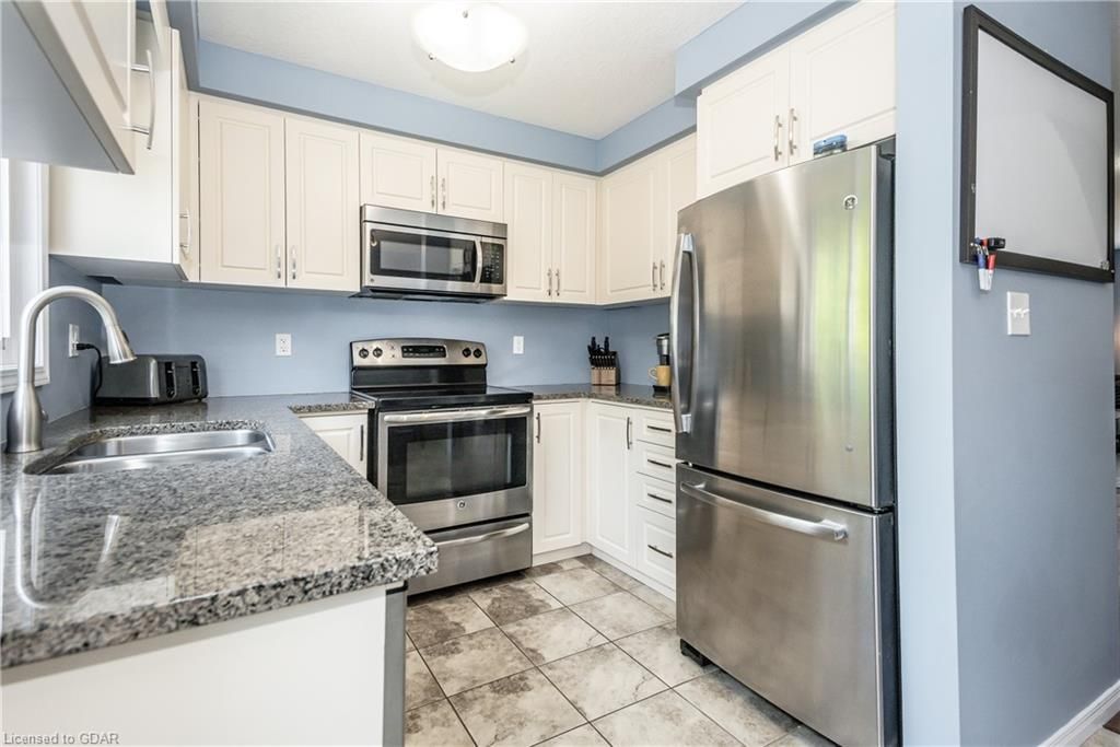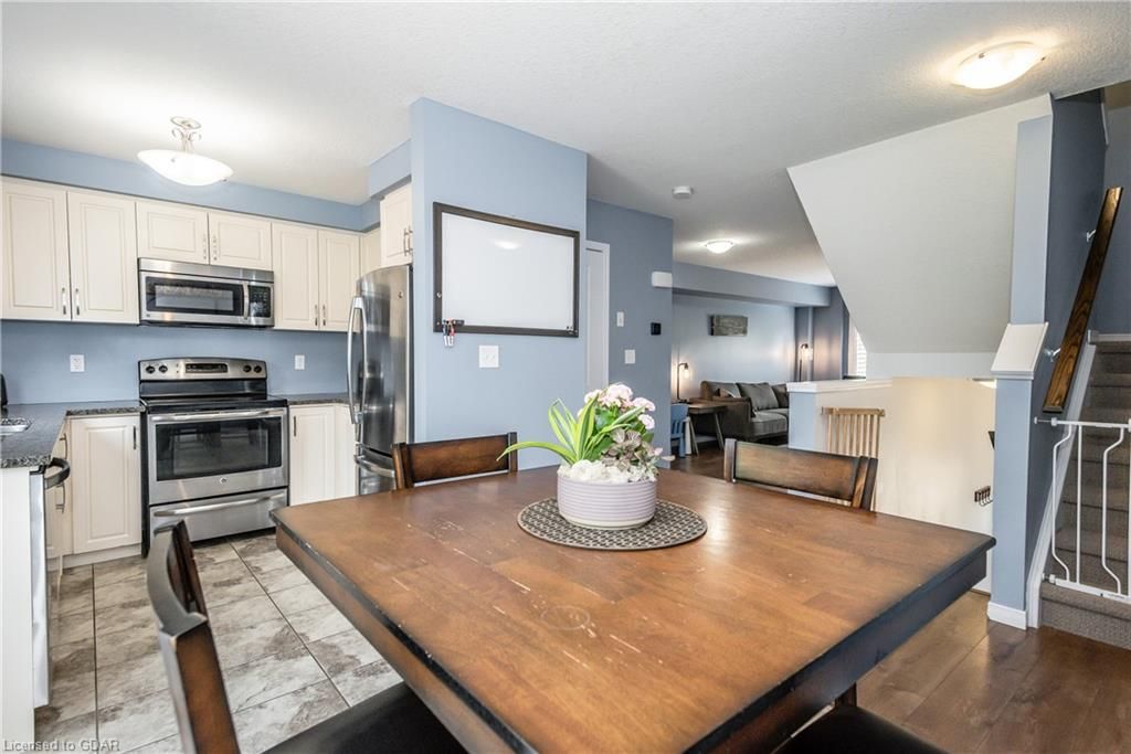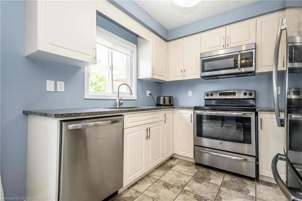 Welcome home to this family friendly 3 bedroom, 2 bathroom townhouse, located close to downtown Preston. The attached garage offers inhome access from the basement, as well as a walk-out from this level to a patio. The main floor boasts an open dining room with walk-out to a private deck\balcony. The kitchen is galley style with granite countertops and includes a dishwasher (new in Feb '23), fridge, stove and microwave, plus the washer (new 2023) & dryer in the lower level. The bedroom level offers a walk-in closet in the Primary bedroom, with access (ensuite privilege) to the main bath. The main floor offers an open concept design between the dining and living room with a convenient powder room on this level. This unit is situated near the entrance of the development, across from Lawrence St Park. There is visitor parking conveniently located close to this unit. Pets allowed. Looking for your first home? Look no further!