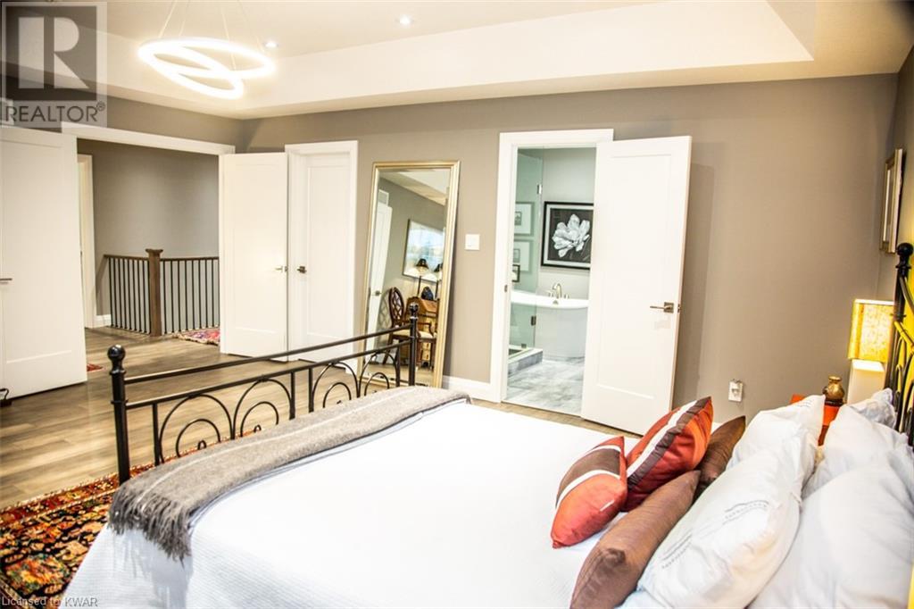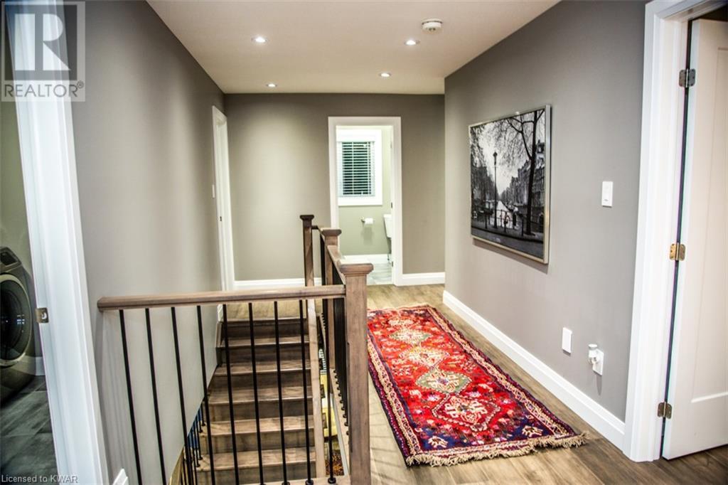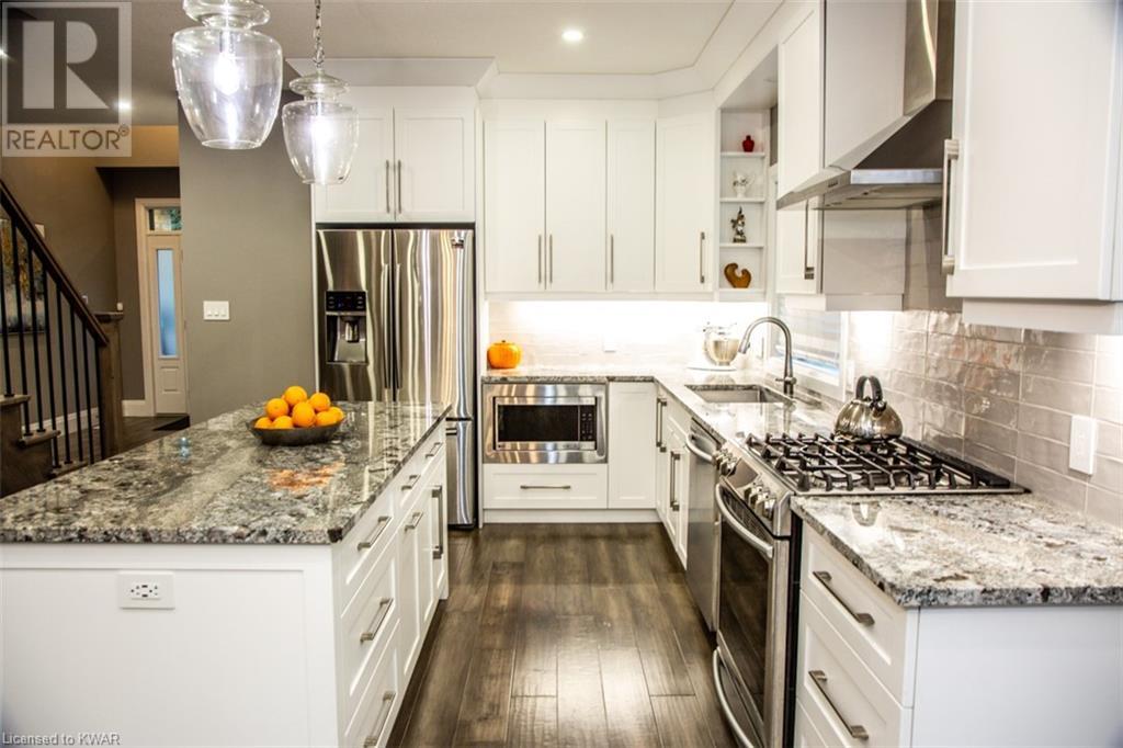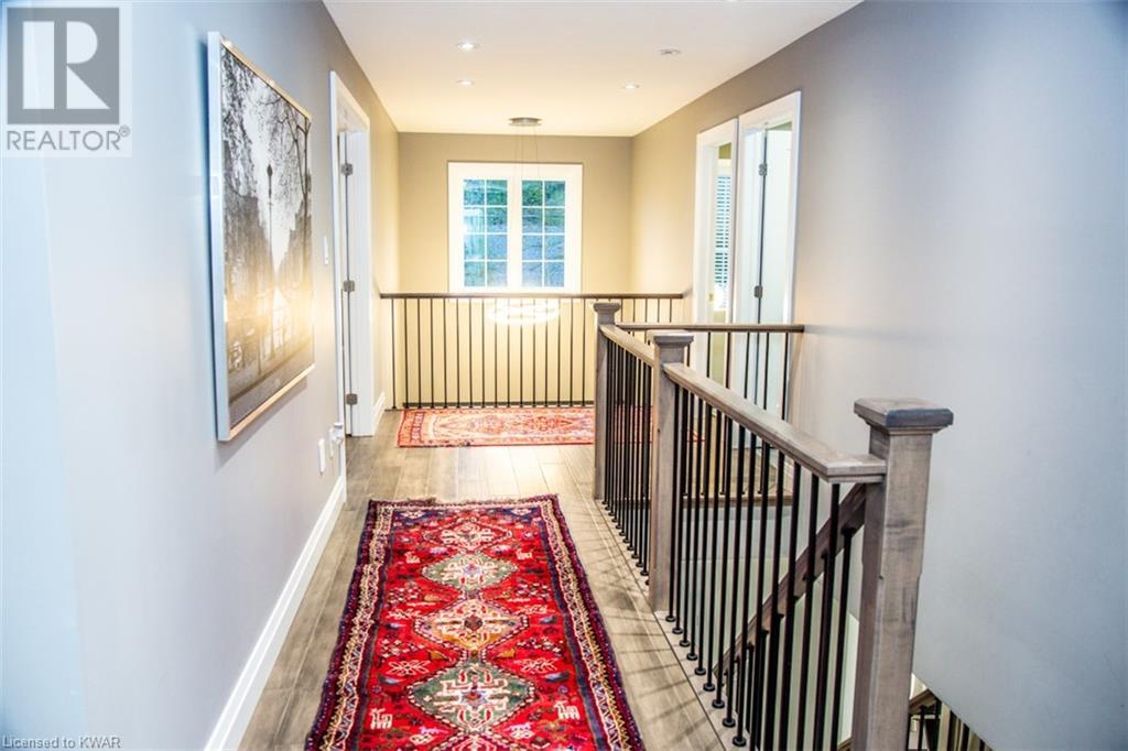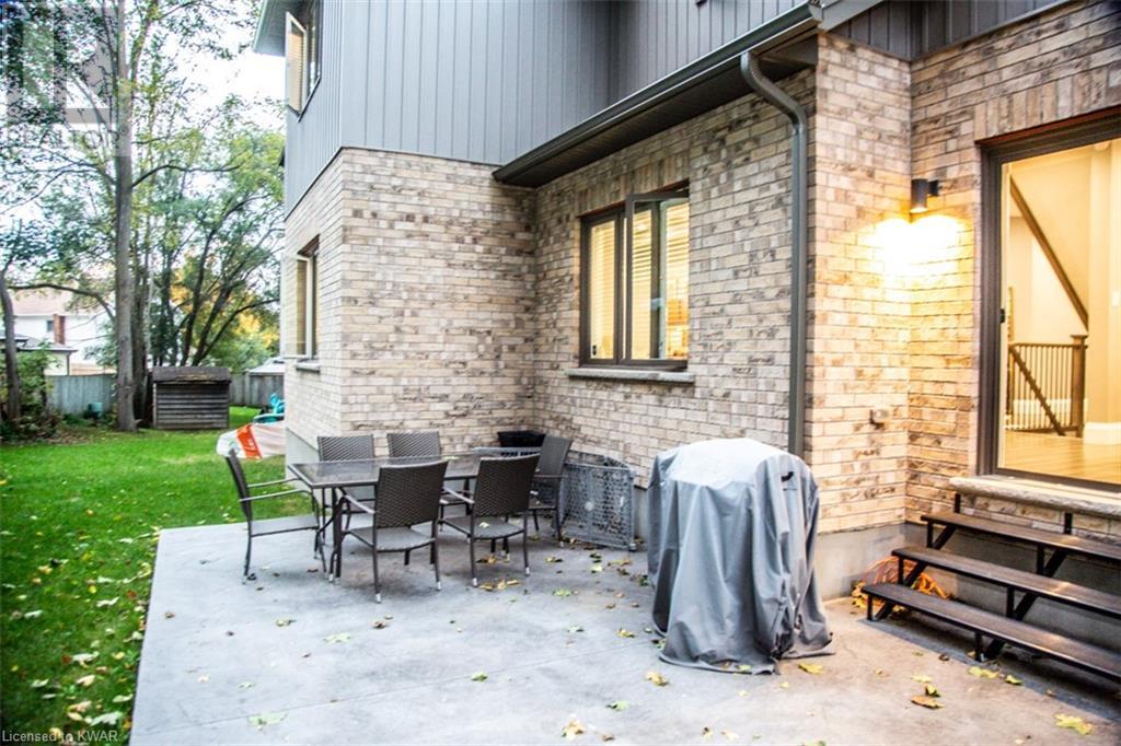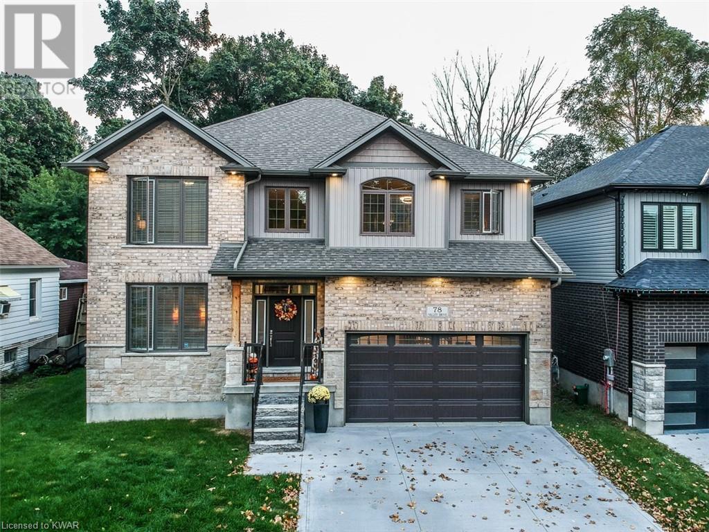 Luxury custom built executive home! Built in 2018 by Pioneer Tower Homes. Featuring over 3,000 square feet, this 5 bedroom 4 bathroom dream home is very well built and tastefully designed. Located in Hespeler Village by the River, one of the most charming locations in Cambridge. Fantastic curb appeal. Concrete driveway. Double car garage with private staircase to the basement. Ideal for a potential in-law suite in the basement. Charming front entry, and the two story foyer is an impressive grand entrance to this welcoming home. Gorgeous engineered hardwood flooring throughout, as well as plenty of pot lights, ensuring this home is beautifully well lit and showcased. Main floor office space, or use it as the 5th bedroom as needed. On the main floor the ceiling height is an upgraded 9 ft tall. The kitchen is the heart of the home with gorgeous granite countertops. Beautiful white ceiling-height cabinetry with crown moulding and stainless steel appliances. 7 ft long island with breakfast bar. Separate dining area, featuring sliding patio doors to the very spacious backyard which is a rare find in large new build homes. Beautiful stamped concrete patio and a convenient shed. Spacious sitting area and living room with fireplace on main floor. Two piece bathroom and spacious mud room. Second floor features four great sized bedrooms and laundry room. Double doors into impressive primary bedroom with tray ceiling and walk in closet. Breathtaking ensuite bathroom with gorgeous glass shower, deep soaker tub, double sinks, and private water closet for the toilet. One of the other bedrooms on this floor features an en-suite bathroom as well. The basement has so much potential. 2 rough in's for bathrooms, kitchenette area, and large windows. Add further value by finishing this massive space, or leave it as a rec room, storage area, or kids play area. Close to so cafes, restaurants, trails, and a very short drive to the 401. Book your showing ASAP! **SEE FULL VIDEO TOUR** (id:22211)