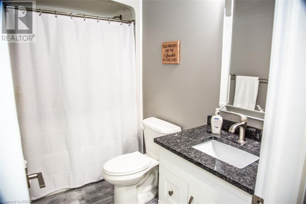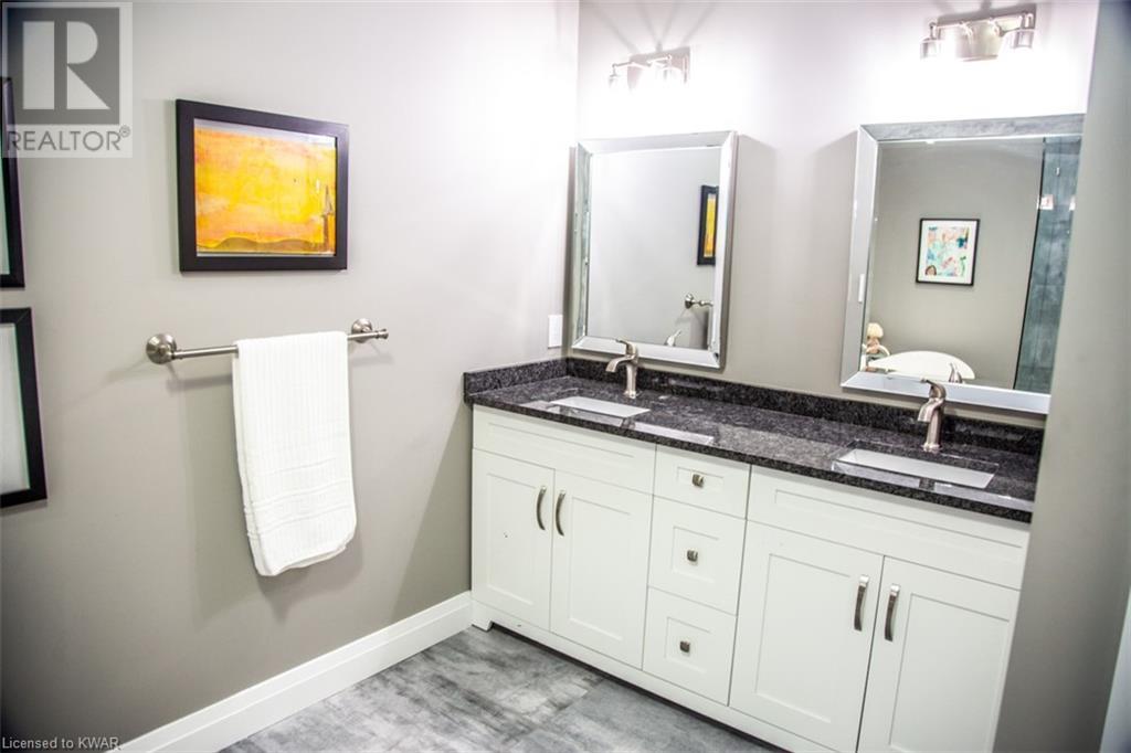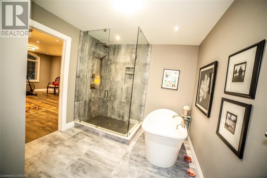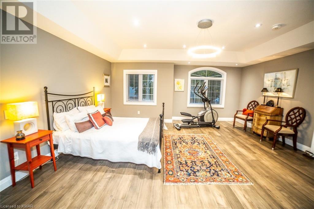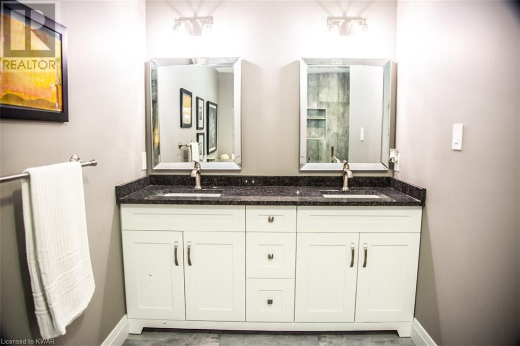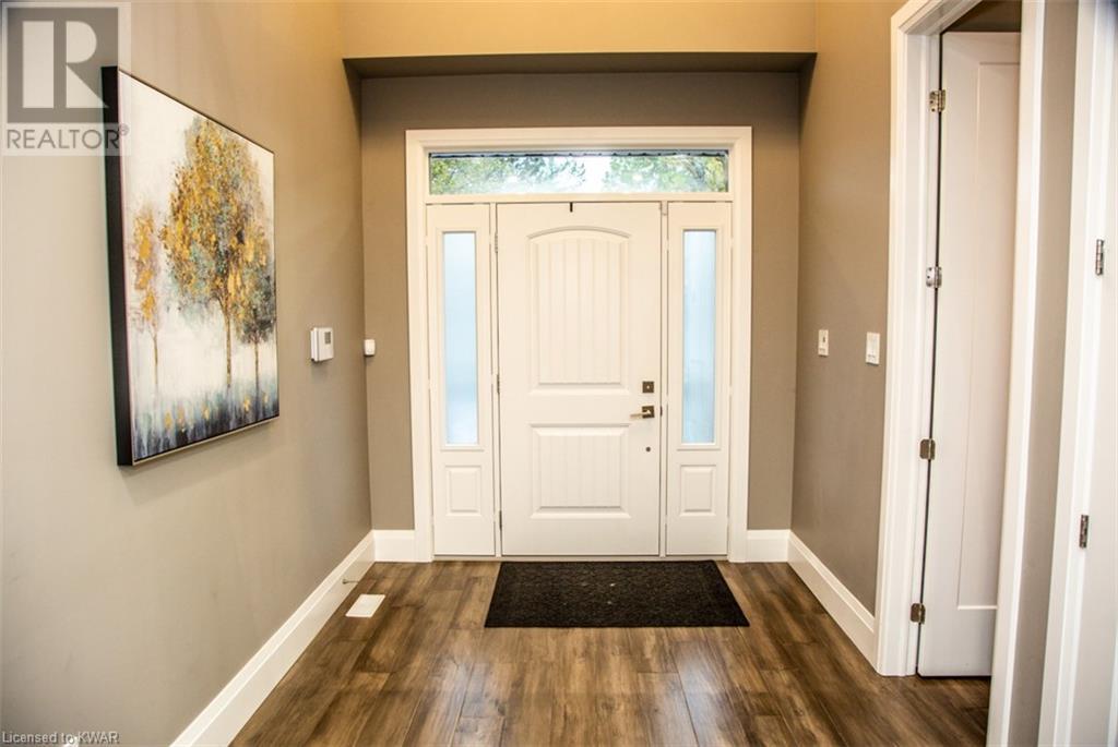 Luxury custom built executive home! Built in 2018 by Pioneer Tower Homes. Featuring over 3,000 square feet, this 5 bedroom 4 bathroom dream home is very well built and tastefully designed. Located in Hespeler Village by the River, one of the most charming locations in Cambridge. Fantastic curb appeal. Concrete driveway. Double car garage with private staircase to the basement. Ideal for a potential in-law suite in the basement. Charming front entry, and the two story foyer is an impressive grand entrance to this welcoming home. Gorgeous engineered hardwood flooring throughout, as well as plenty of pot lights, ensuring this home is beautifully well lit and showcased. Main floor office space, or use it as the 5th bedroom as needed. On the main floor the ceiling height is an upgraded 9 ft tall. The kitchen is the heart of the home with gorgeous granite countertops. Beautiful white ceiling-height cabinetry with crown moulding and stainless steel appliances. 7 ft long island with breakfast bar. Separate dining area, featuring sliding patio doors to the very spacious backyard which is a rare find in large new build homes. Beautiful stamped concrete patio and a convenient shed. Spacious sitting area and living room with fireplace on main floor. Two piece bathroom and spacious mud room. Second floor features four great sized bedrooms and laundry room. Double doors into impressive primary bedroom with tray ceiling and walk in closet. Breathtaking ensuite bathroom with gorgeous glass shower, deep soaker tub, double sinks, and private water closet for the toilet. One of the other bedrooms on this floor features an en-suite bathroom as well. The basement has so much potential. 2 rough in's for bathrooms, kitchenette area, and large windows. Add further value by finishing this massive space, or leave it as a rec room, storage area, or kids play area. Close to so cafes, restaurants, trails, and a very short drive to the 401. Book your showing ASAP! **SEE FULL VIDEO TOUR** (id:22211)