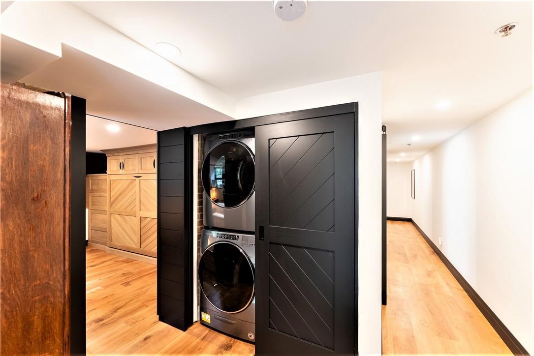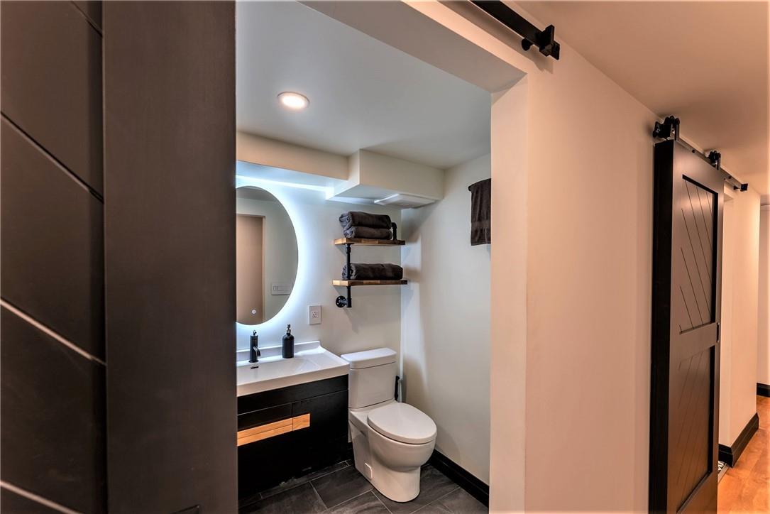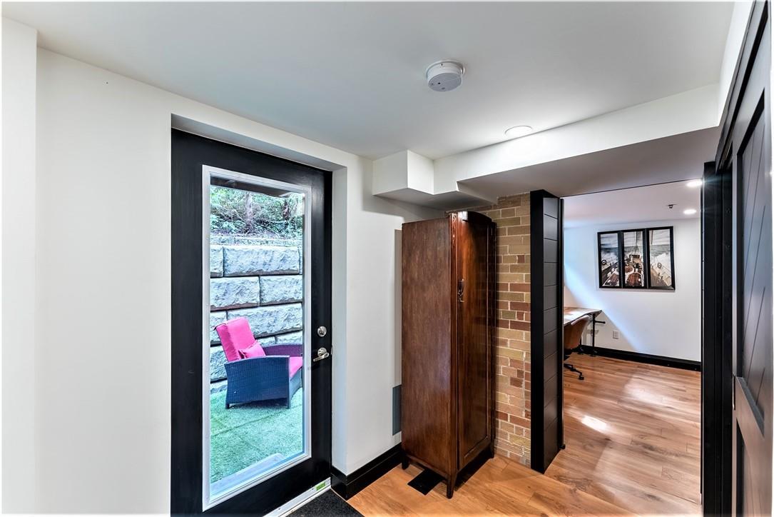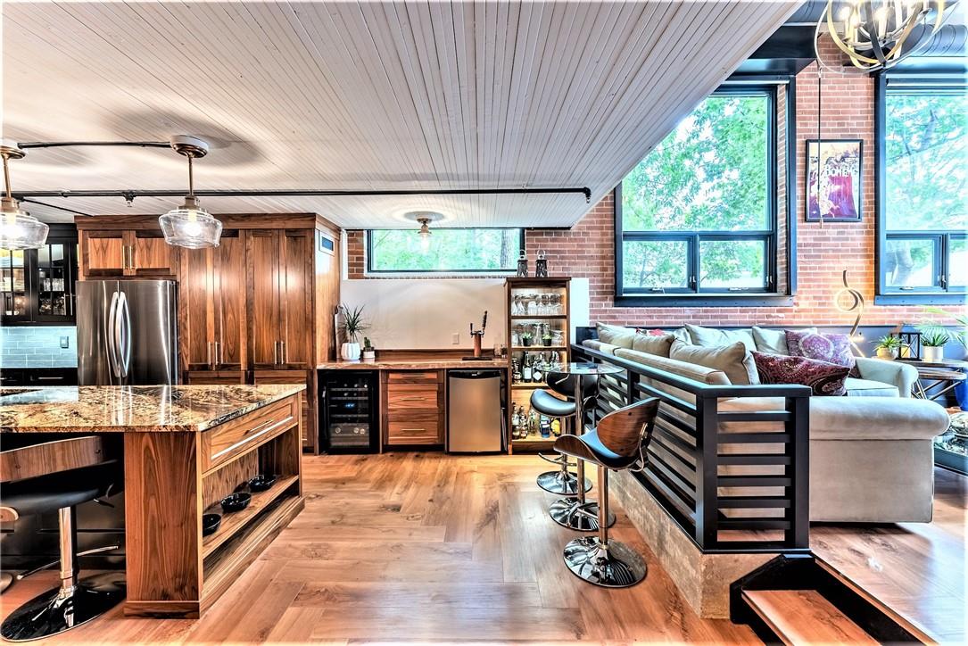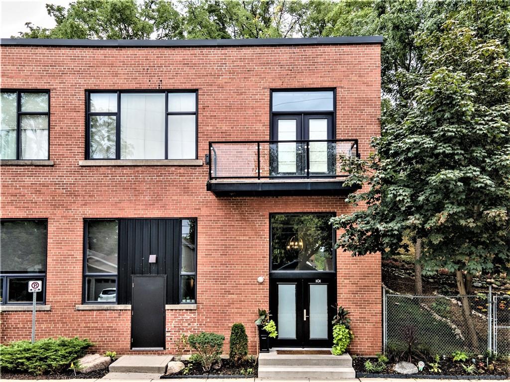 This 2000+ sqft 2 story loft has been completely renovated top to bottom with nearly $300k in upgrades. You'll have the desired lofty exposed brick and industrial accents but will now enjoy all the modern executive luxuries from the recent renovations in 2019/20. Reno's include an ethanol fireplace with integrated staircase media unit, a chefs dream kitchen featuring walnut cupboards, a massive dramatic granite countertop, all new appliances, built-in beer keg and wine cooler, pot lighting throughout with all electrical and plumbing updated. Each of the 3 bathrooms have been completely redone with the upstairs washrooms featuring curb-less showers and heated flooring. Custom closets on both levels with a tailor-made murphy-bed as part of the 2nd bedroom. The exterior and interior doors have been upgraded along with new solid sliding barn doors that match the modern but industrial feel. Designed to cater for those working from home with 2 desk areas. This end unit loft not only has a cool NY designer vibe but features a wish-list of modern luxuries. Note: property/forest next to building is privately owned and not included as part of the sale. (id:22211)