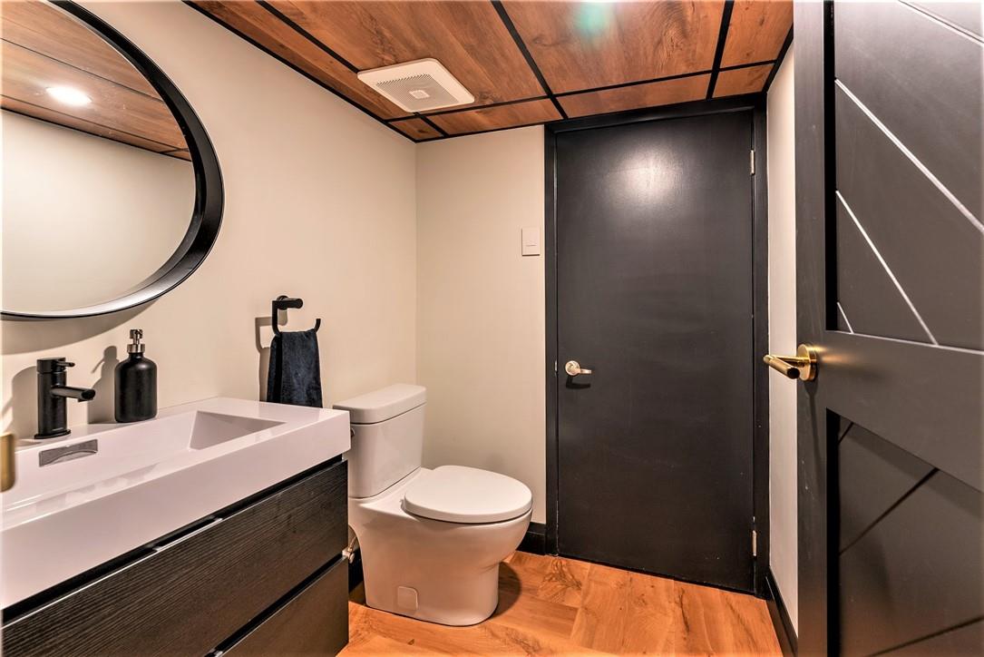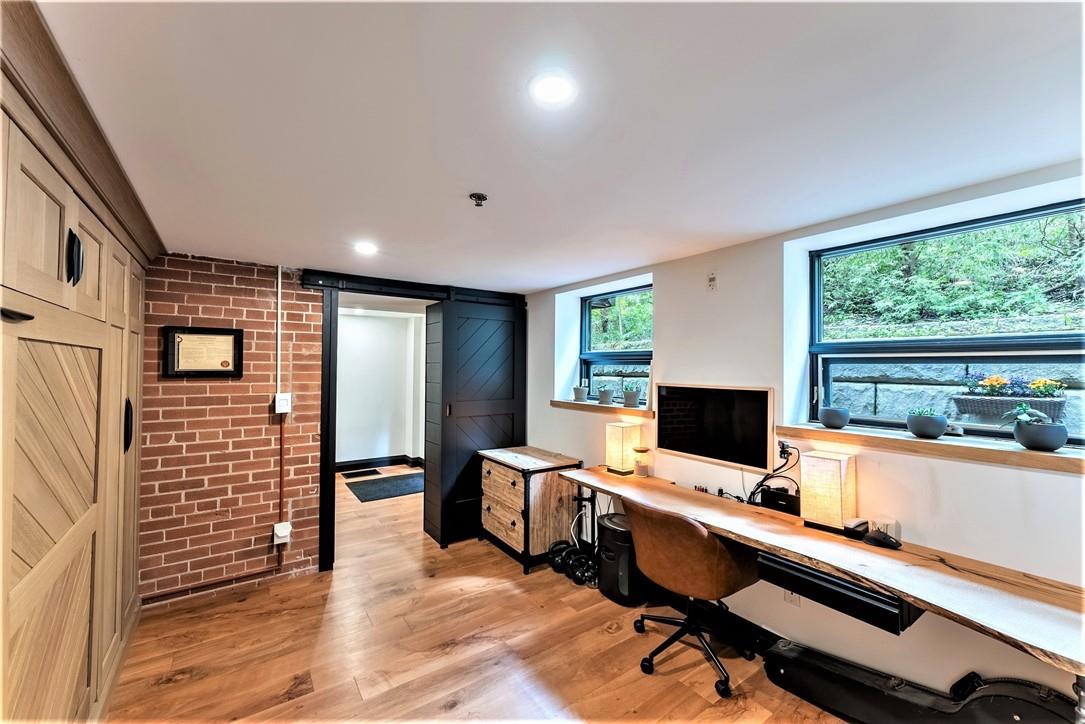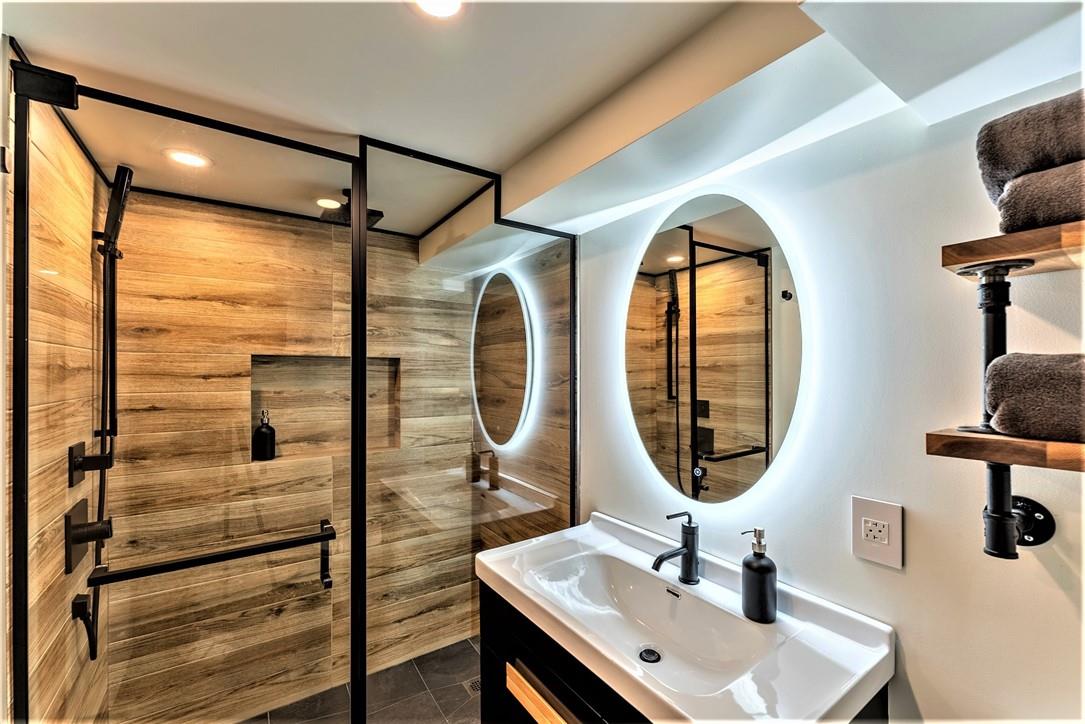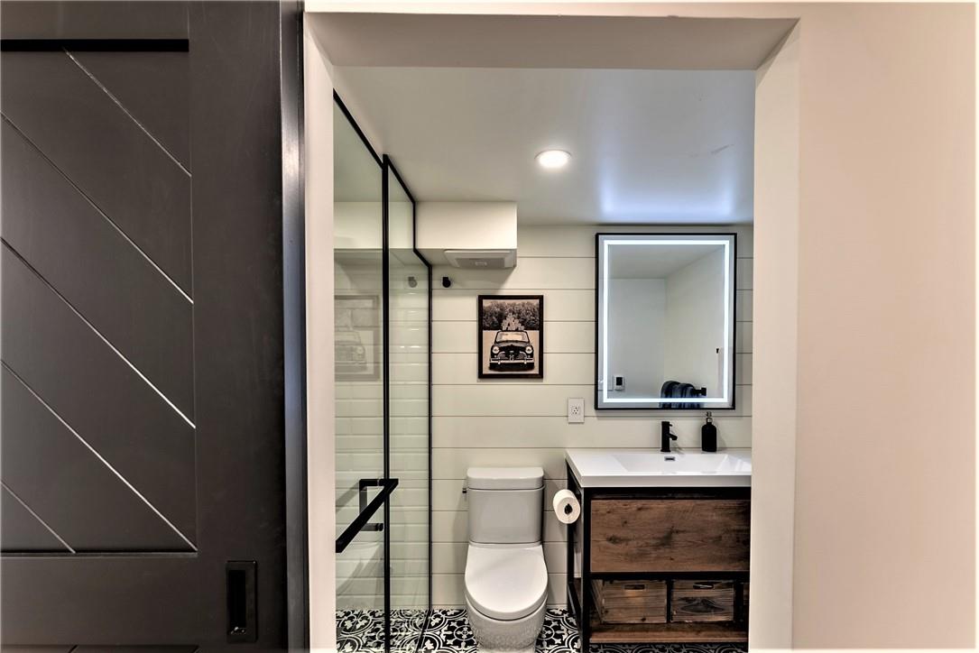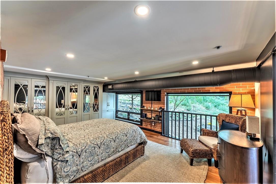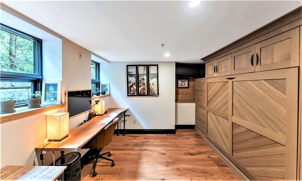 This 2000+ sqft 2 story loft has been completely renovated top to bottom with nearly $300k in upgrades. You'll have the desired lofty exposed brick and industrial accents but will now enjoy all the modern executive luxuries from the recent renovations in 2019/20. Reno's include an ethanol fireplace with integrated staircase media unit, a chefs dream kitchen featuring walnut cupboards, a massive dramatic granite countertop, all new appliances, built-in beer keg and wine cooler, pot lighting throughout with all electrical and plumbing updated. Each of the 3 bathrooms have been completely redone with the upstairs washrooms featuring curb-less showers and heated flooring. Custom closets on both levels with a tailor-made murphy-bed as part of the 2nd bedroom. The exterior and interior doors have been upgraded along with new solid sliding barn doors that match the modern but industrial feel. Designed to cater for those working from home with 2 desk areas. This end unit loft not only has a cool NY designer vibe but features a wish-list of modern luxuries. Note: property/forest next to building is privately owned and not included as part of the sale. (id:22211)