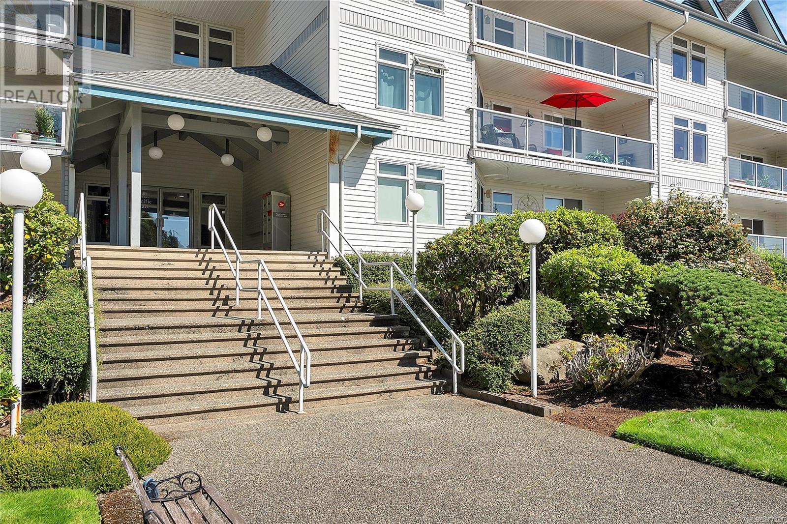 Welcome to Pacific Place located across the street from Sea Walk giving unobstructed ocean views and access to walk &/or bike from downtown CR to Willow Point. This well maintained building is run by a proactive & co-operative strata with support from Pacific Quorum Property Management. Top Floor, south facing corner unit has been loved by only one owner & was custom designed to have open plan living in kitchen, dining & living room to take advantage of the panoramic ocean view. Wrap around deck is accessed from living room allowing indoor/outdoor living. 2 Bedrooms & Bathroom are located at the opposite end of condo granting privacy & quiet from living areas. Separate laundry room gives storage space not always available in condo living. Underground, secure parking with elevator to protect vehicle and give dry access to unit during winter storms. Is carefree ocean front living for you, come view & find out. (id:22211)