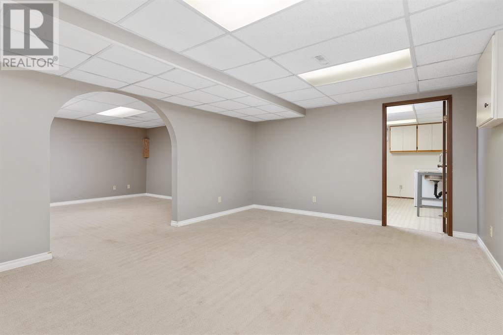 Available with Immediate Possession - Over 1200sqft Bungalow Fully Finished - Walking Distance to School and Rec Areas with a private green space less than a few hundred feet away at the end of the cul de sac. Upon arriving you'll appreciate the large front yard with mature trees and the updated driveway that leads to a 23'9x28 attached garage with high ceilings. Heading inside to find hardwood floors and an inviting front living room with bright bow window. Sharing in the space is a separate dining area that leads into the fully updated kitchen with vinyl tile floors, updated cabinetry, tile splash and central coffee bar with partial open concept for access from anywhere in the main area. The main floor sees 3 generous bedrooms with the primary featuring a 2pc ensuite along with a partially updated 4pc main bath. Basement is fully finished with a flex space, family room with wood stove (as is) - cozy for movie night, a large 4th bedroom - great bedroom for teenagers, an original 3pc bath and large utility room with sink and laundry - finally a fully useable laundry room! The backyard is unique with the corner lot - the rear of the property is a full concrete patio with gas line for the bbq and the bulk of the fenced yard space is on the backside of the garage; makes for a perfect family hangout out of the way. This home has so much room that you could really see yourself spending many years here raising a family - you have to see it for yourself! (id:22211)