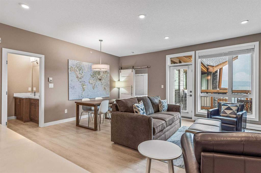 Welcome to Lookout Ridge! A luxury apartment complex set high up on a ridge overlooking the Bow Valley with breathtaking 360 degree views. Masterful design and contemporary alpine luxury are evident upon first glance with its massive Fir Timber Beams, sleek rooflines and expansive windows. This SPACIOUS 1 bedroom unit highlights an open concpet floor plan, cozy gas fireplace, and generous kitchen with sleek quartz countertops, full size pantry, and ample cubpoard space. Overlooking Grotto Mountain, the views will leave you speechless! Relax and take in the meticulous garden area with its large Lookout Viewing platform, numerous benches, lit pathways and rundlestone retaining walls or take a stroll downtown on the paved path adjacent to the gardens. Additional features include a titled, underground parking stall, assigned storage locker, and a spacious storage/laundry room in the suite. (id:22211)