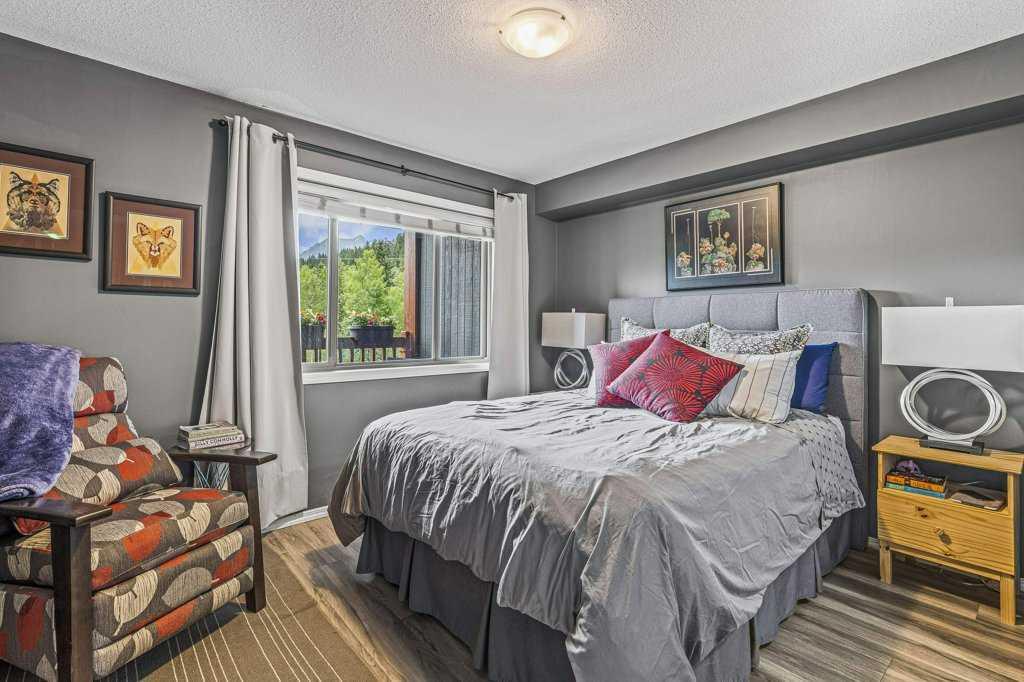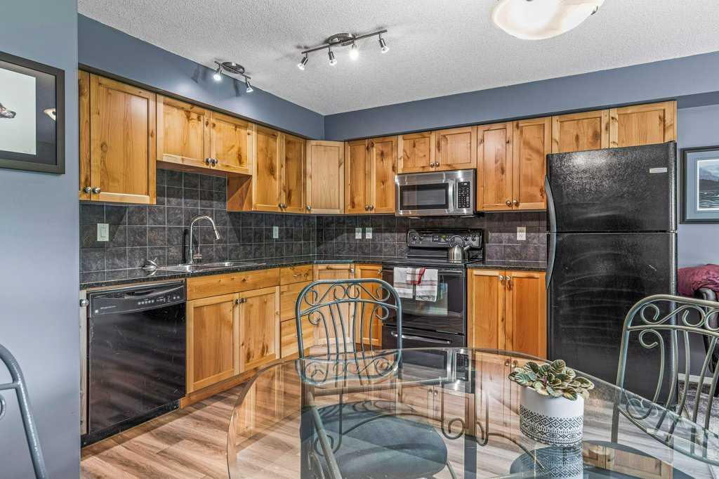 Get into the Canmore market in this stylish condo in the popular Blakiston building. With 2 bedrooms, 2 baths, and 2 parking spots, everyone will have their own space. Locals love this building for the underground parking, fitness room, and pet friendly attitude. There's an off leash park right out front and trails adjacent. There is even a new workshop space in the parkade so you can work on your bike or skis. This unit is on the quiet west side of the building, offering lovely views. One underground space (best one in the building!), one surface stall, one storage in the underground. Pets with board approval. (id:22211)