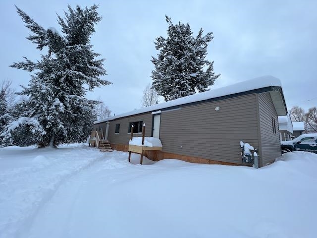 What a GREAT location! Situated south of town, in a super quiet park sits this 3 bedroom and 2 bathroom mobile home! The unit is over 1200 square feet and includes many recent updates including flooring, siding, paint, trim, outdoor stairs and more! The home is very OPEN and very SPACIOUS! Master bedroom is larger than most and features a huge ensuite with soaker tub. The pad is near the back of the park so it's very quiet and includes a huge yard (double lot!). This park is great for seniors and families alike and just a short distance from the golf course. If you are looking for a large place for an affordable price, than this might just be the one for you!