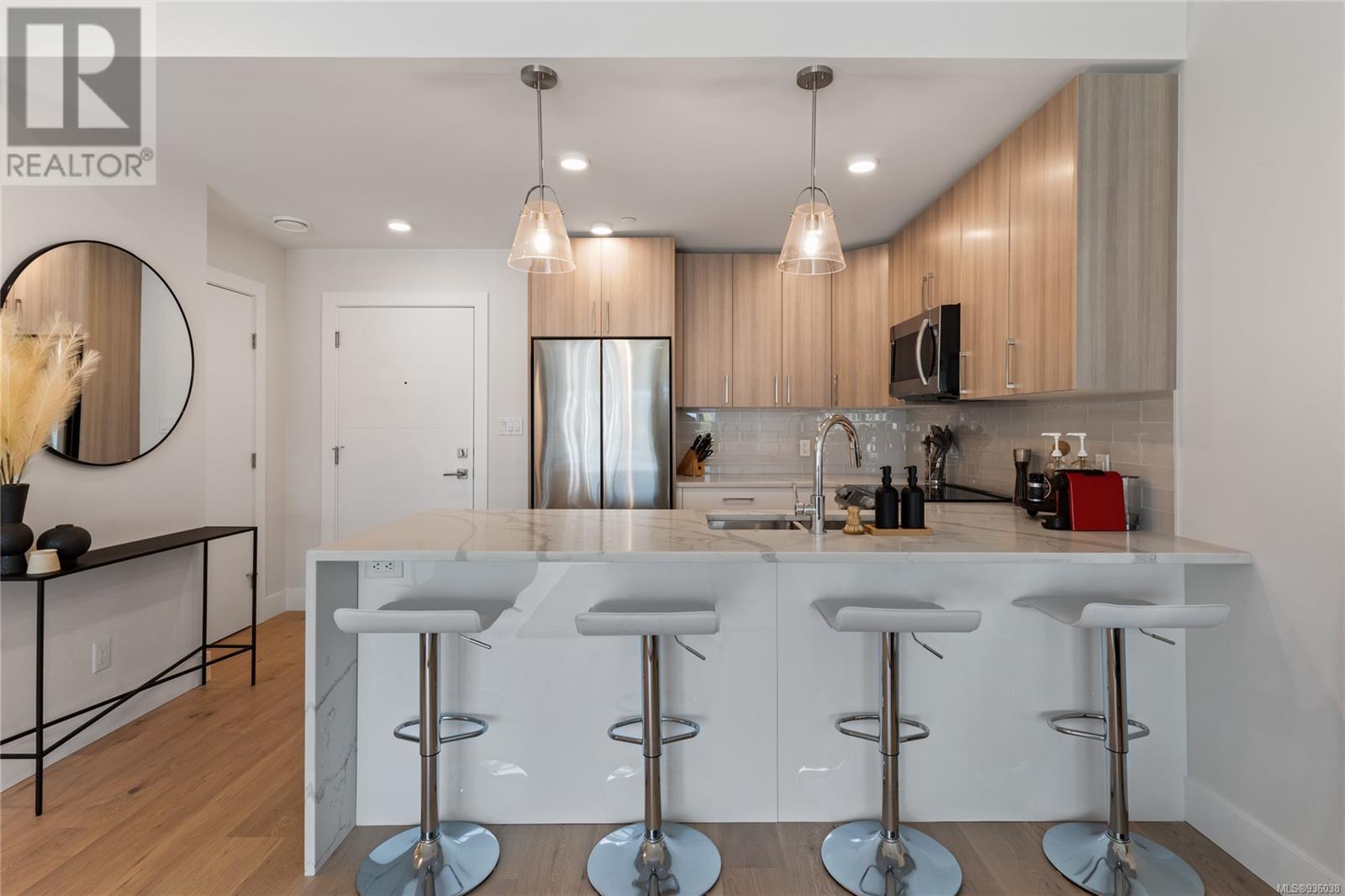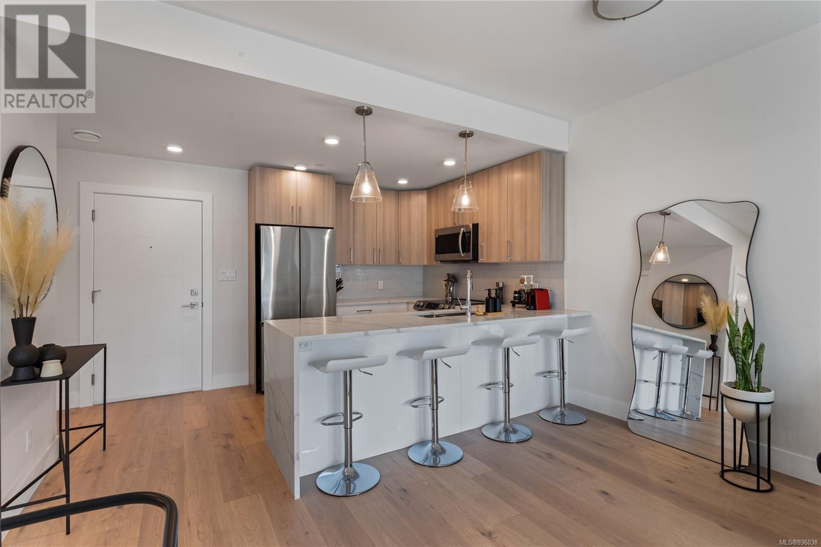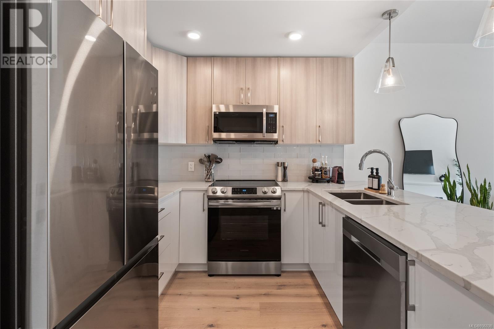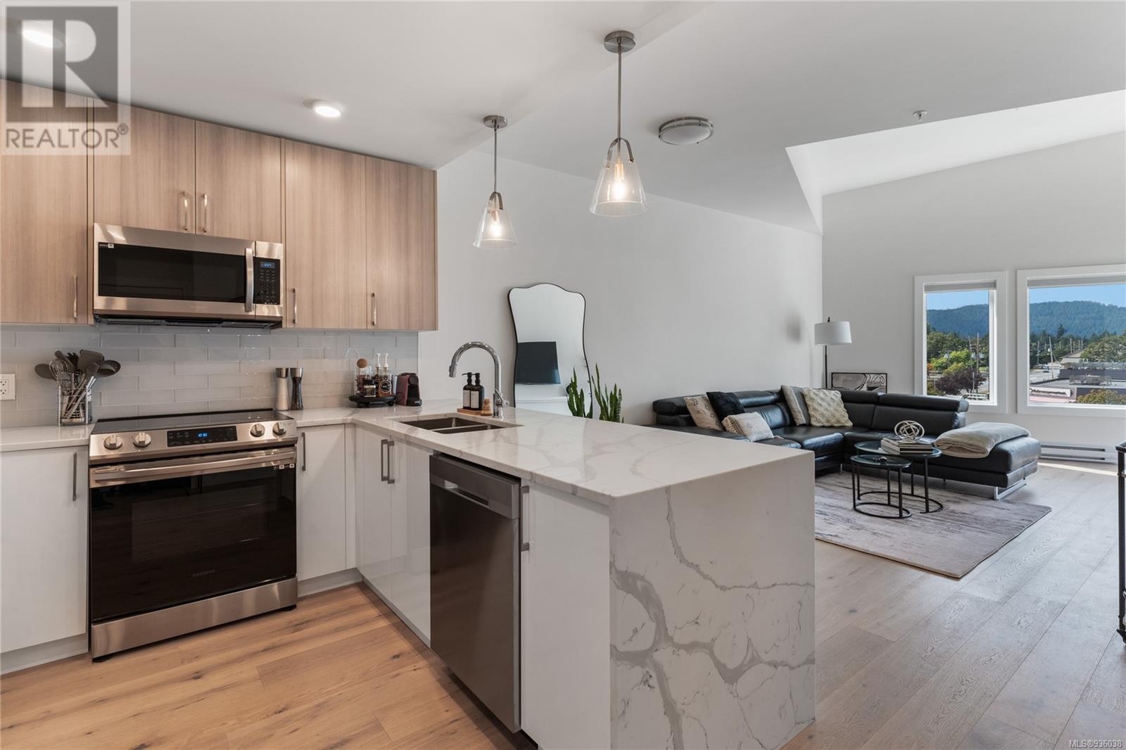 The Wallace is a new progressive, energy modelled building in Brentwood Bay. Surrounded by amenities, green spaces & oceanside walking trails. Designer suite is lavishly appointed with wide-planked Oak Engineered Hardwood, quartz counters, premium SS appliances, electric fireplace & upscale finishings. Primary suite with walk-in & spa like 4pc ensuite, plus sizeable 2nd bedroom. Outside the sun soaked balcony offers scenic views. Superiour soundproofing provides extra privacy. Building amenities include storage, bike lockers, secure underground parking & shared EV charger & Modo Car Share Membership with 2 bedroom purchase. 2-5-10 warranty coverage for peace of mind. Seaside living at its finest, explore many local treasures including a wide array of dining & shopping options, spa services, multiple marinas, farmers markets, endless biking trails, golfing, beaches & world famous Butchart Gardens! The perfect balance with the convenience of urban living, surrounded by nature's beauty. (id:22211)