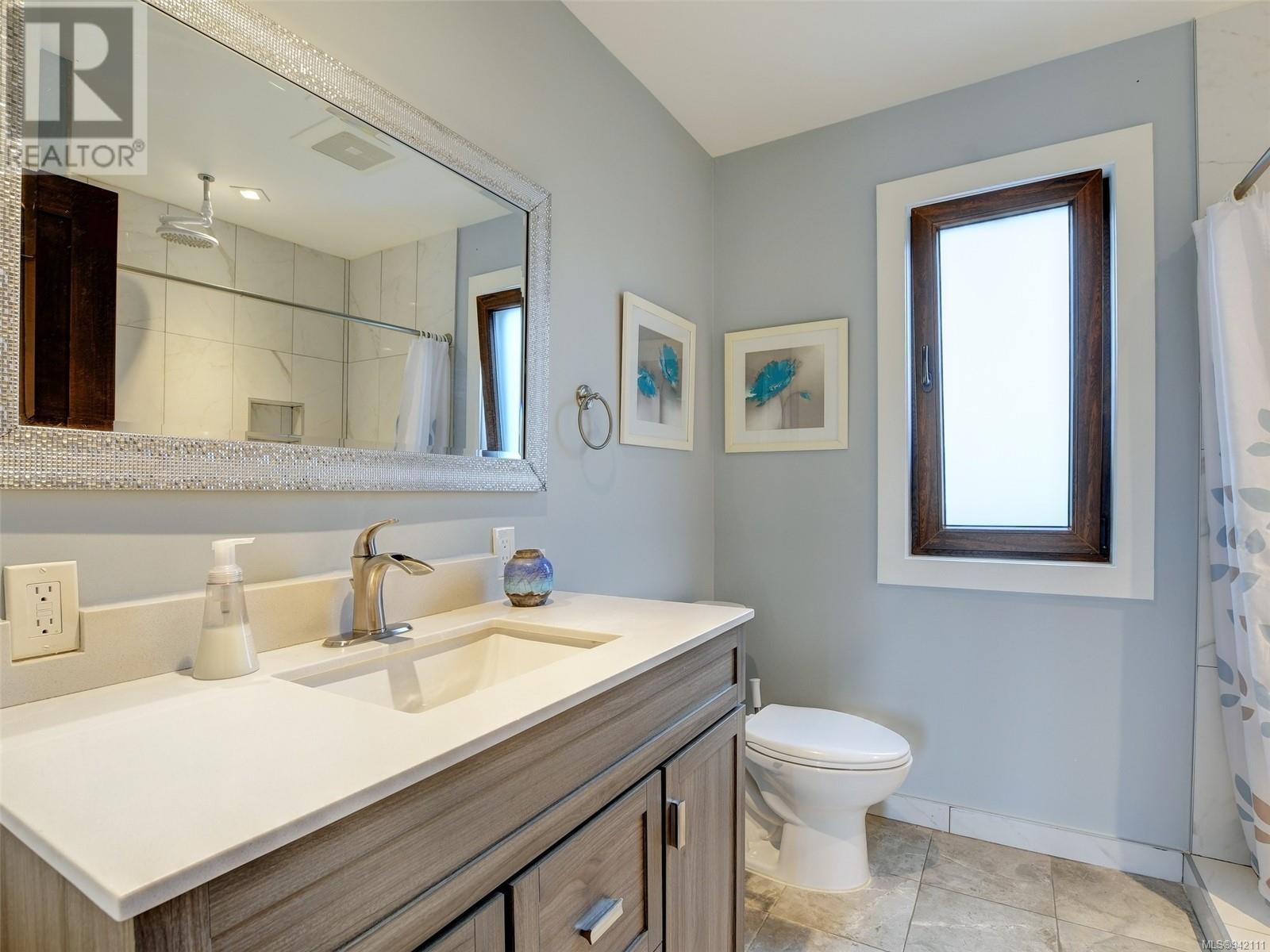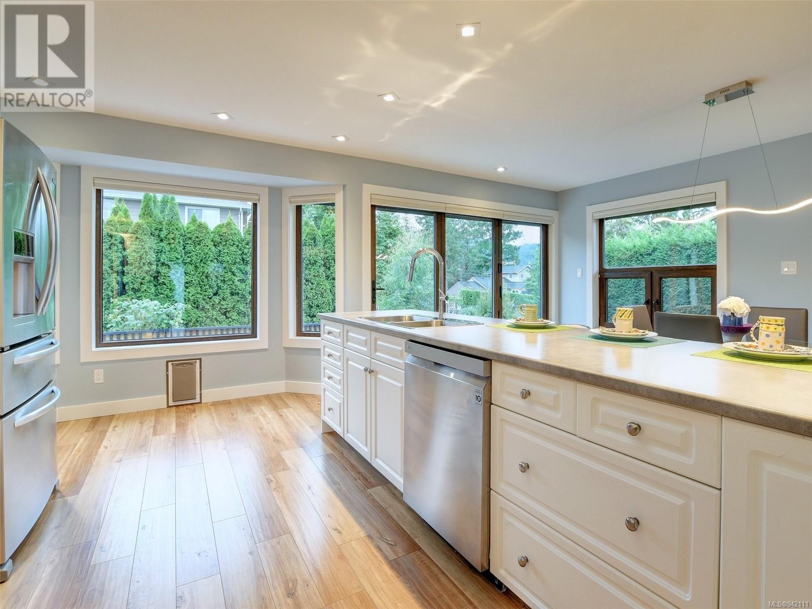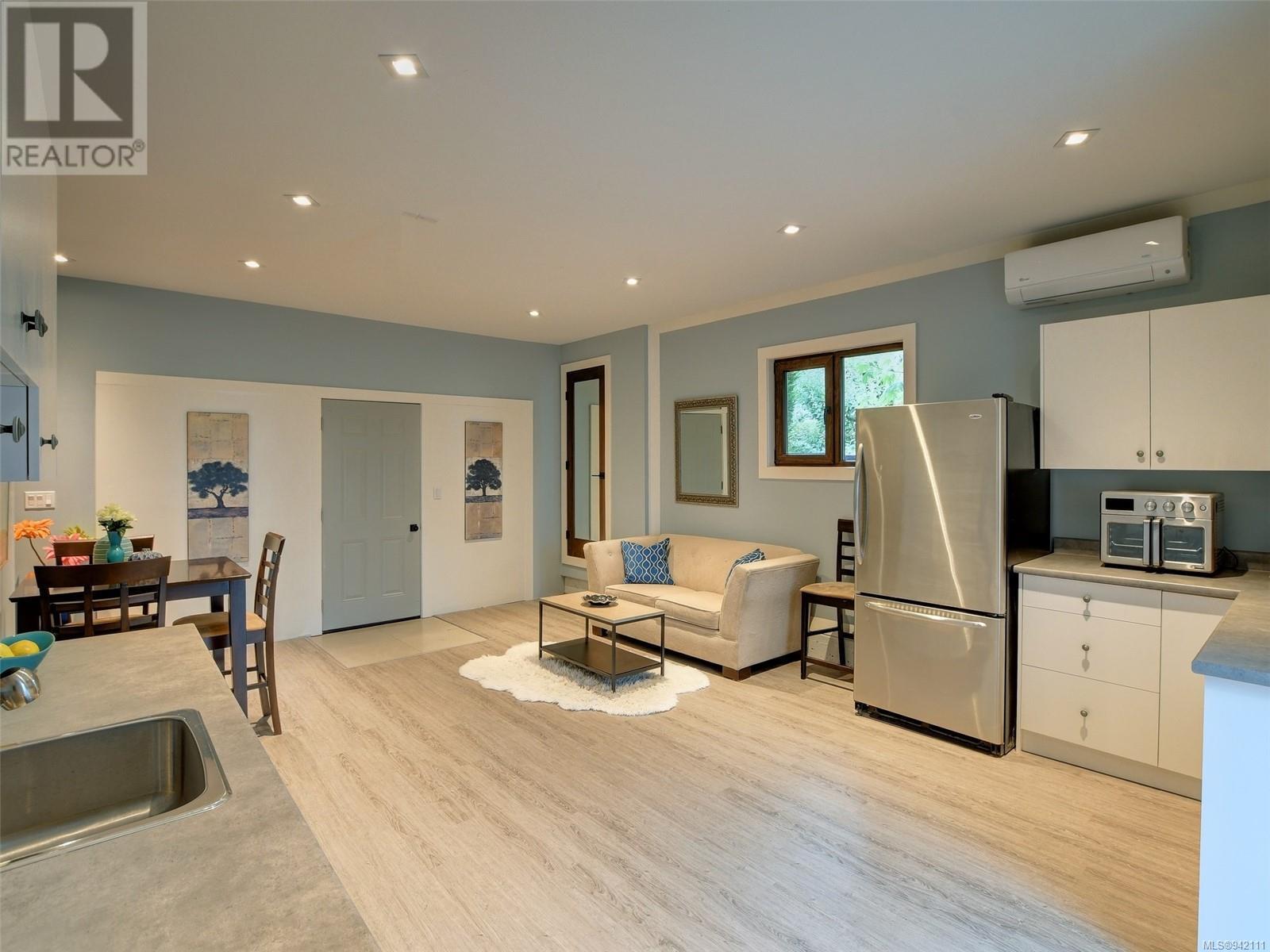 $162K BELOW ASSESSMENT! Open House Sat 14th-2-3 & Sun 15th 2-3. This stunning home is located in the beautiful Brentwood Bay on a quiet cul-de-sac. It offers three bedrooms and four bathrooms, providing ample space and privacy for its residents. The main living area features beautiful engineered hardwood floors and Euroline tri-fold concertina doors, allowing for a seamless connection between the interior and outdoor living spaces. This open floor plan creates a harmonious flow between the living room, dining area, and kitchen, making it an ideal space for entertaining guests or spending quality time with family. Each bedroom in the house has its own ensuite bathroom, ensuring privacy and convenience for all occupants. In addition, there is a 4-piece bathroom on the main floor, serving as a well-appointed bathroom for guests. The garage has been transformed into a potential independent suite with a laundry area, kitchen, and an upstairs bedroom with a Juliette balcony. This separate unit provides a private retreat for guests or can serve as an additional living space. It is equipped with HVAC and an ensuite bathroom, adding to its comfort and functionality. Several updates have been made to the property, including a new roof, new carpets, a heat pump, a concrete patio area, a pantry, an on-demand hot water heater, a gas fireplace, new siding, Euroline custom tilt and open triple pane windows, and more. These updates enhance the overall comfort and aesthetic appeal of the home. The back patio offers a pleasant breeze during the summer months, making it an ideal spot for entertaining or simply relaxing with a good book. Additionally, if you prefer dining out, you can enjoy a short 3-minute stroll along a scenic trail to the Brentwood Inn Pub, providing a convenient social outing without the need for a car. (id:22211)
