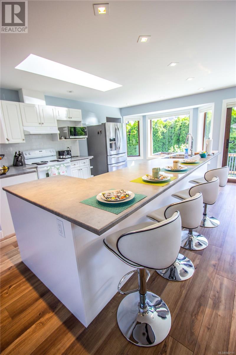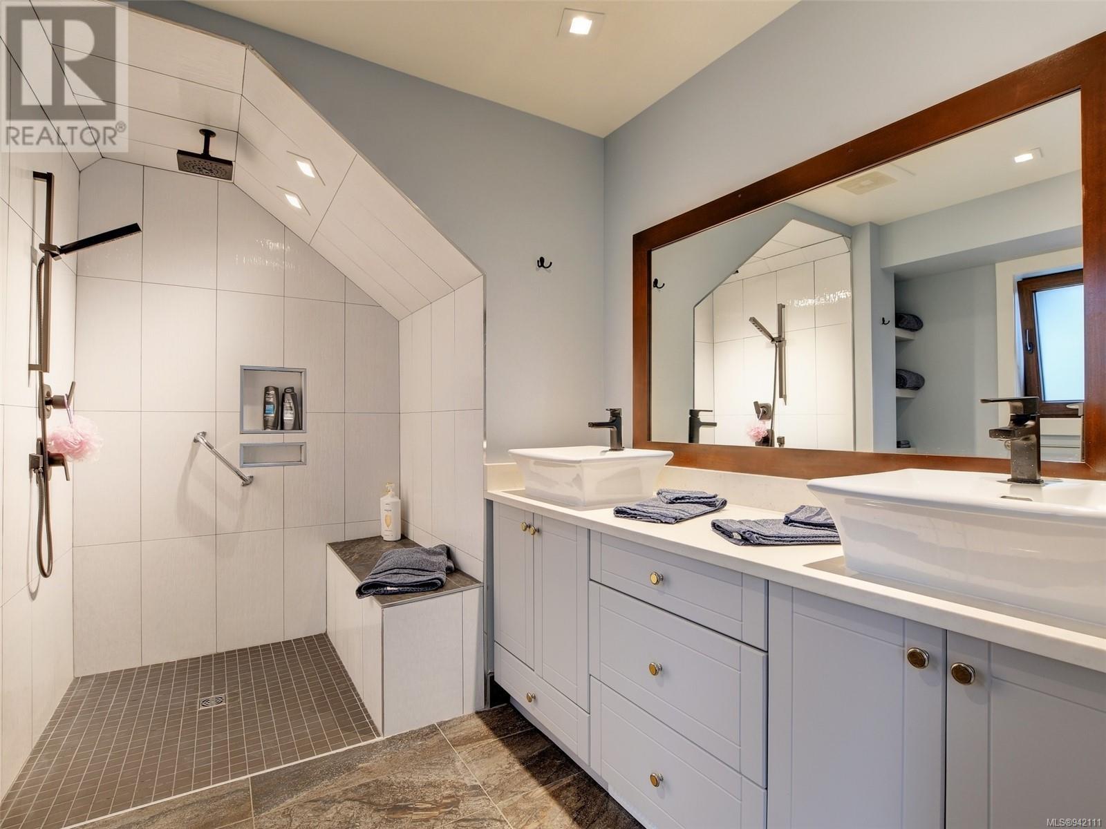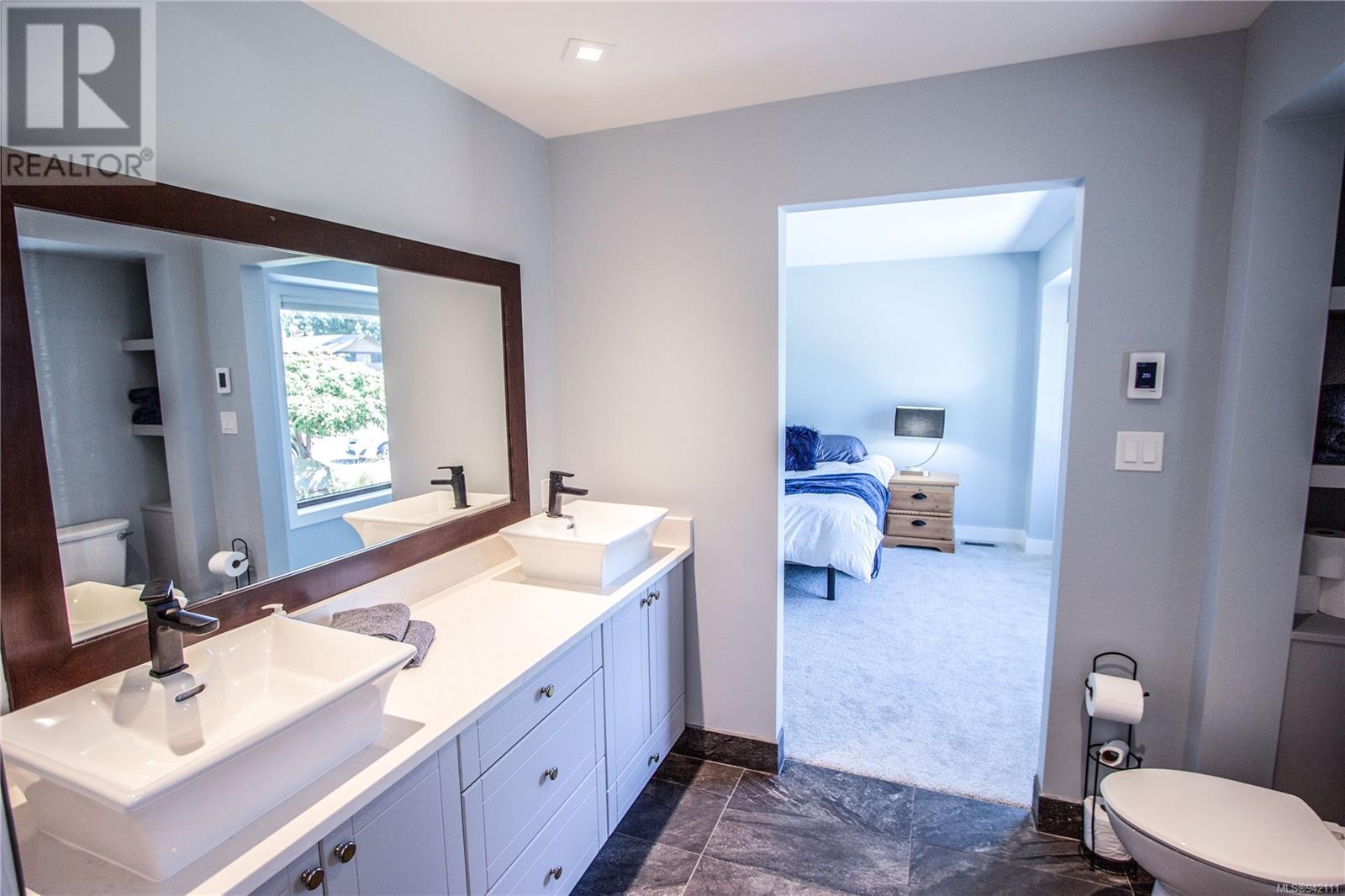 $162K BELOW ASSESSMENT! Open House Sat 14th-2-3 & Sun 15th 2-3. This stunning home is located in the beautiful Brentwood Bay on a quiet cul-de-sac. It offers three bedrooms and four bathrooms, providing ample space and privacy for its residents. The main living area features beautiful engineered hardwood floors and Euroline tri-fold concertina doors, allowing for a seamless connection between the interior and outdoor living spaces. This open floor plan creates a harmonious flow between the living room, dining area, and kitchen, making it an ideal space for entertaining guests or spending quality time with family. Each bedroom in the house has its own ensuite bathroom, ensuring privacy and convenience for all occupants. In addition, there is a 4-piece bathroom on the main floor, serving as a well-appointed bathroom for guests. The garage has been transformed into a potential independent suite with a laundry area, kitchen, and an upstairs bedroom with a Juliette balcony. This separate unit provides a private retreat for guests or can serve as an additional living space. It is equipped with HVAC and an ensuite bathroom, adding to its comfort and functionality. Several updates have been made to the property, including a new roof, new carpets, a heat pump, a concrete patio area, a pantry, an on-demand hot water heater, a gas fireplace, new siding, Euroline custom tilt and open triple pane windows, and more. These updates enhance the overall comfort and aesthetic appeal of the home. The back patio offers a pleasant breeze during the summer months, making it an ideal spot for entertaining or simply relaxing with a good book. Additionally, if you prefer dining out, you can enjoy a short 3-minute stroll along a scenic trail to the Brentwood Inn Pub, providing a convenient social outing without the need for a car. (id:22211)