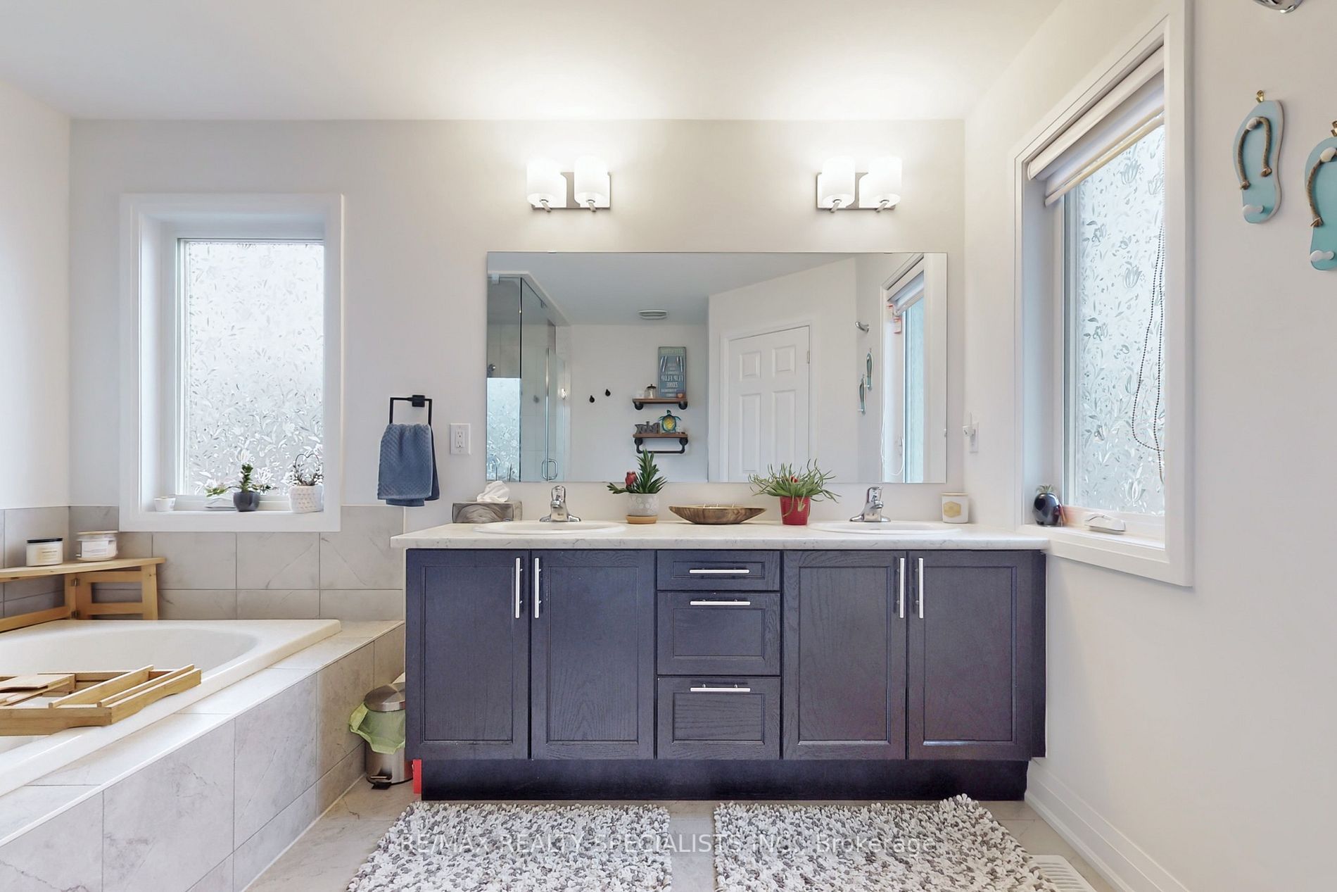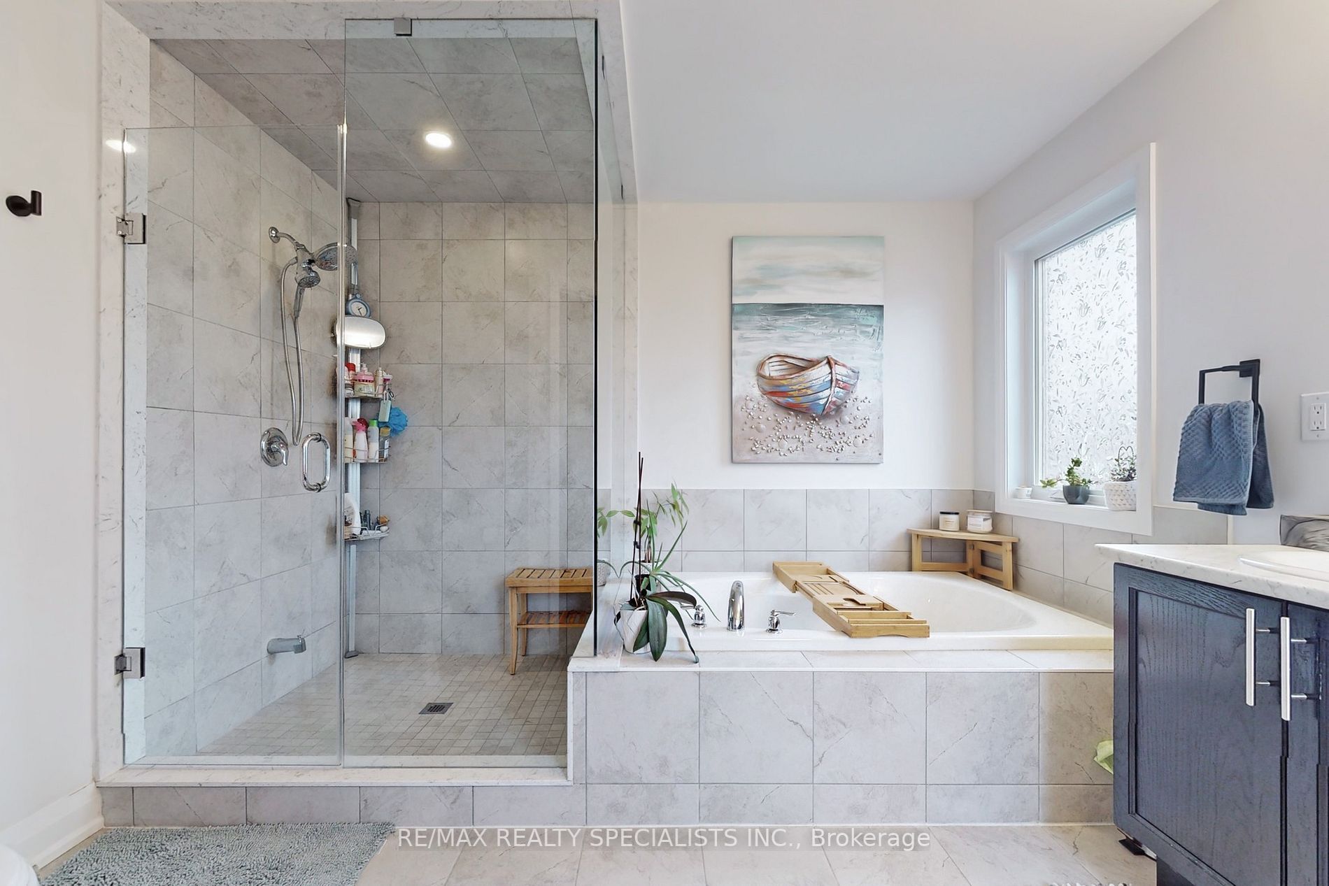 A large second family room walks out to a balcony which has the possibility to be used as 4th bedroom, The Oak hardwood staircase leads to 3 large size bedrooms, including a master suite with his/her closets and ensuite with soaker tub and upgraded glass enclosure.