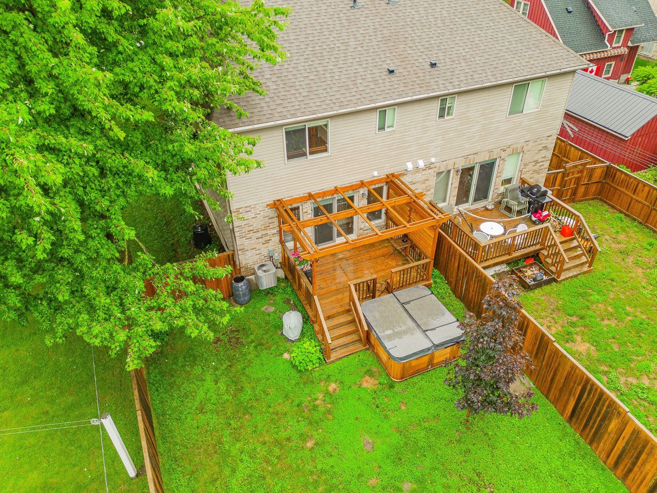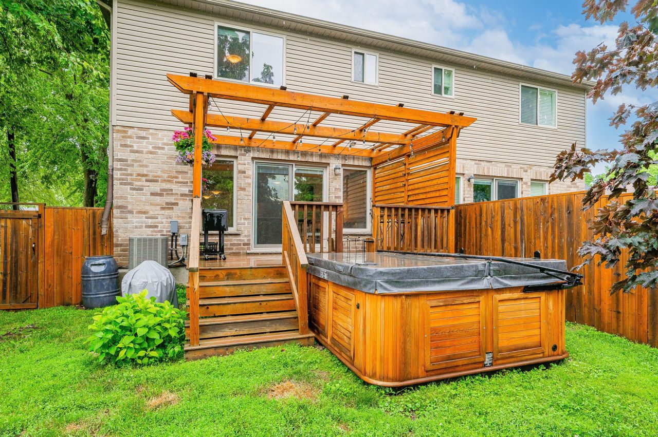 Welcome to this stunning semi-detached home built by Jenmark Homes (2016), situated in the charming town of Fergus, a few blocks away from the vibrant downtown core. This exceptional residence boasts a contemporary design & offers a wealth of desirable features. As you step inside, you'll be captivated by the modern finishes & colours that create a stylish & inviting atmosphere throughout the home. The spacious open floor plan ensures a seamless flow between the living areas, providing an ideal setting for both entertaining & everyday living. The main level showcases a well-appointed kitchen w/ample cabinet space & a convenient walk in pantry, allowing you to keep your culinary essentials organized & easily accessible. The bedrooms are designed to be cozy & comfortable & the bathrooms feature modern fixtures & finishes. One standout feature is the loft, that was transformed into a versatile space perfect for meeting your home gym needs & fitness goals.When it's time to unwind & enjoy some fresh air, step out into the large fully fenced backyard w/ a deck & pergola creating a great space for outdoor dining & relaxation. Additionally, a hot tub awaits, to escape the stresses of the day!