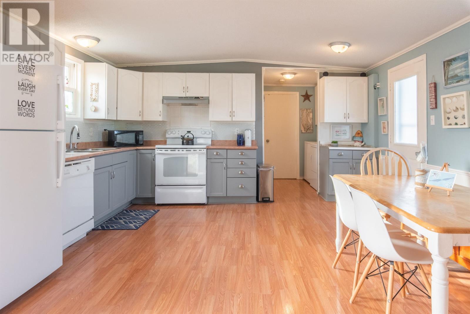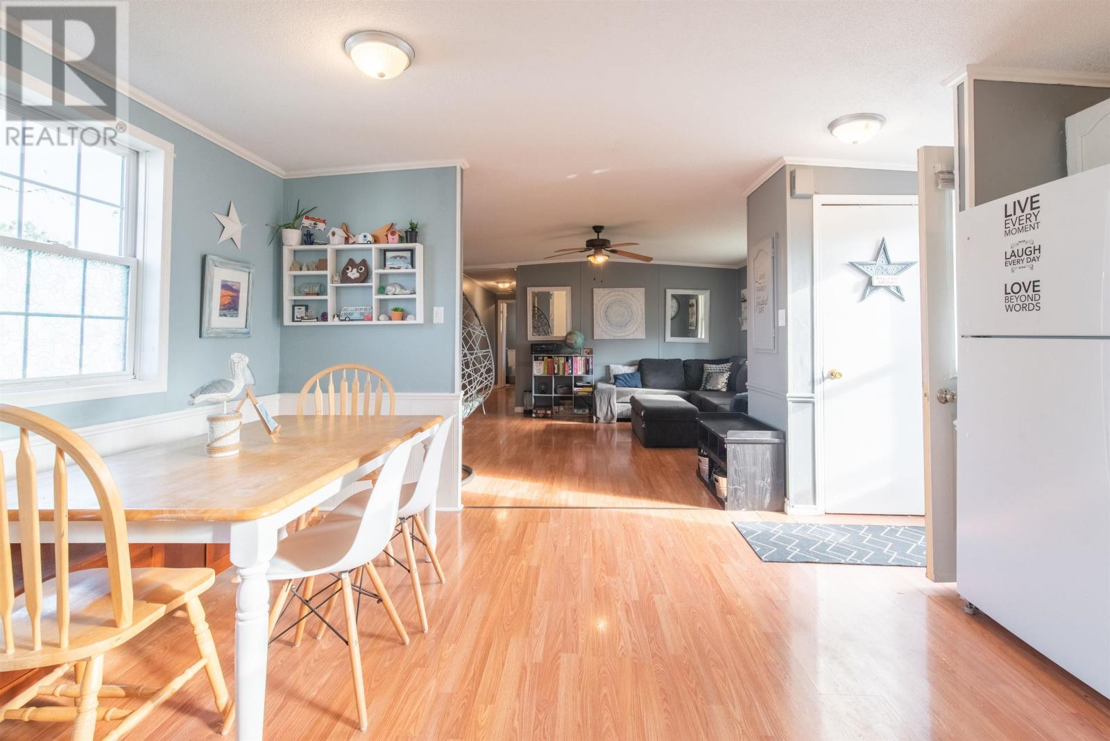 Introducing a charming 3-bedroom, 1.5-bathroom mini home located in the sought-after mini home park of Riverview Estates, just moments away from the Queen Elizabeth Hospital in Charlottetown, PEI. Greeting you at the front of the home you will find a large, well-built, deck that receives beautiful, warm, south-west sunlight. Stepping into the home you enter the spacious and inviting open-concept space. The living area is a great size and perfect for relaxation. The kitchen is thoughtfully designed with a large dining area and a door to the back of the home which, with the addition of a deck, will make a great place to BBQ in the summer and enjoy some additional outdoor living space. The 3-bedroom, 1.5-bathroom design of this home is something we do not find offered for sale very often, this layout provides ample space for a growing family or the flexibility to create a home office or guest room. This home has also seen several notable updates in the last few years, including a new roof installed in 2020, a newer oil tank, heat pump, new vanities, bathroom taps, and more. The neighborhood provides a safe and friendly community atmosphere, with access to recreational facilities, shopping, restaurants, and health care necessities nearby. Don't miss the opportunity to call this charming home in this desirable location, yours! (id:22211)
