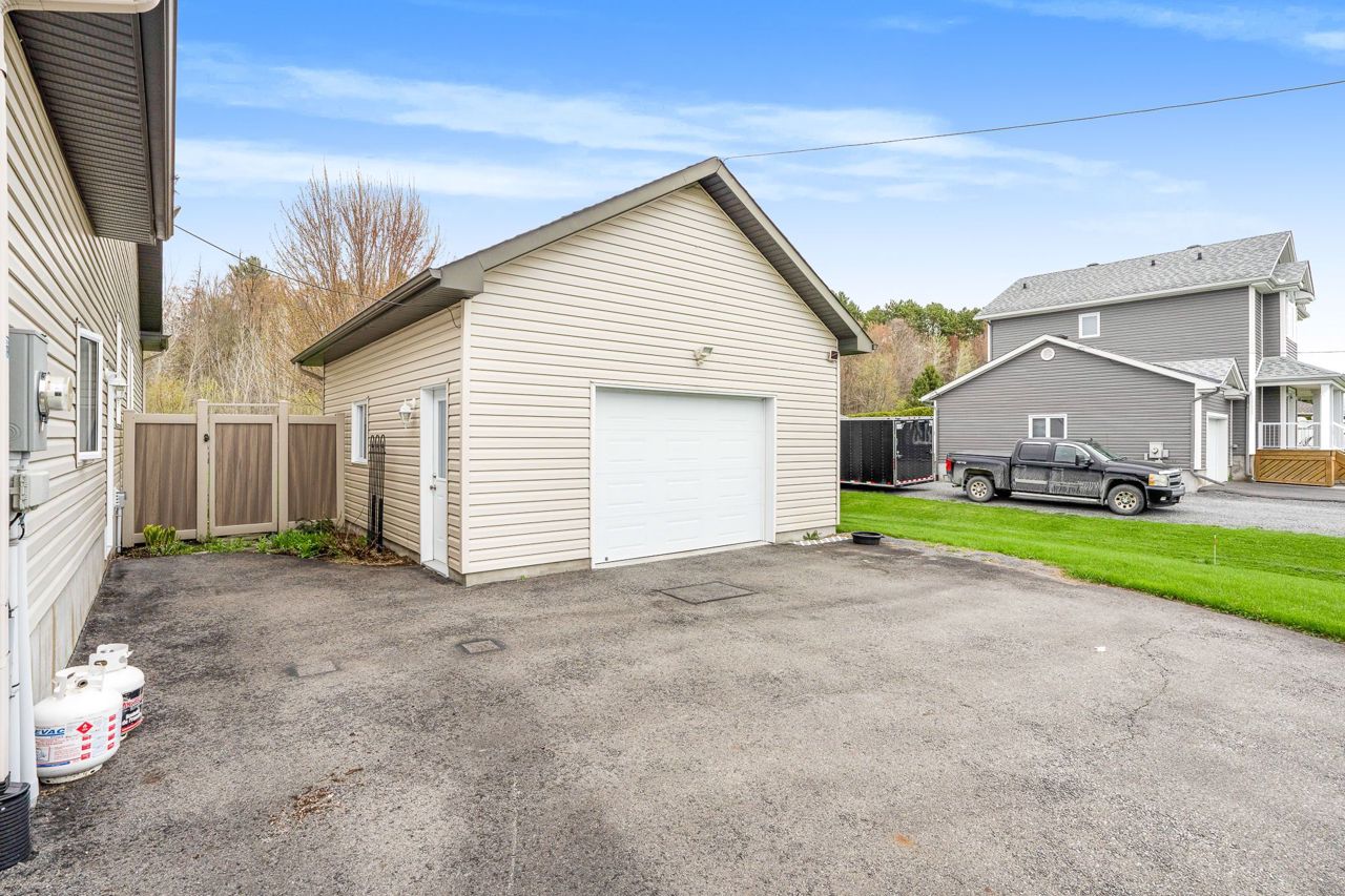 Welcome to 1951 Lemery in Bourget! A must-see property that shows pride of ownership. This beautiful newer bungalow is sitting on 0.76ac all fenced in yard with no rear neighbours and your own detached workshop! Walking in the front door you step into the large family room with gas fireplace, vaulted ceilings and open concept with the dining room surrounded by windows and gourmet kitchen with quartz countertops. Adjacent to the kitchen and foyer is the laundry/storage combination with tons of storage. All bedrooms are on the main floor, starting with the main bedroom with walk-in closet and 3 pcs ensuite bathroom with glass door and tiled shower. Second and third bedroom have windows facing in the backyard for lots of natural light and double-wide closets. Steps away from the 3rd bedroom is the 4pcs main bathroom with shower/tub combination. The partly finished basement is an immense family or play room with the possibility of adding 2 extra bedrooms and a bathroom. All the mechanicals are neatly located in the southeast corner of the basement for ease of access and maintenance. Outside, the huge fully fenced-in backyard features a covered porch, patio space, and a recently added saltwater pool and natural gas heater (2022). Enjoy ample parking space and room for your hobbies with the double attached garage and the detached garage/workshop (24'X30') with electrical service and garage door opener. This property is move-in ready for you to enjoy the summer by the pool! Book your private showing today!
