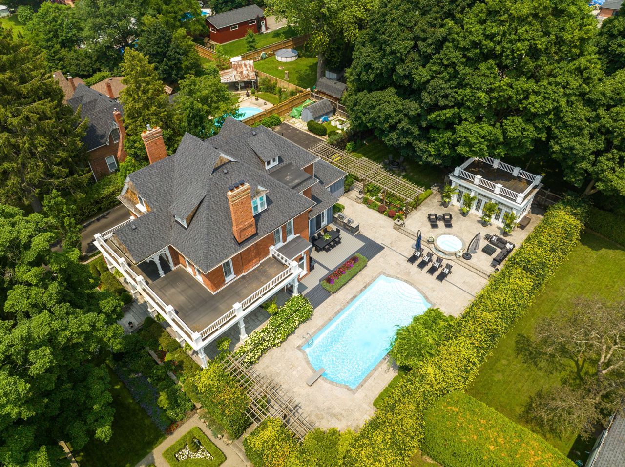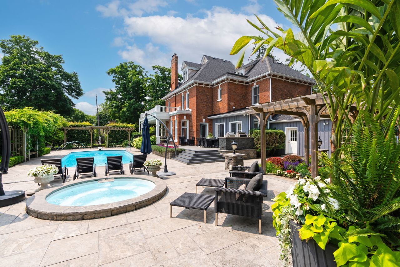 This stunning property is a coveted piece of local history, truly special. Originally part of the Bowman Estate & known as Hazelwood House, this home is one of the most iconic properties in Bowmanville! Like something out of a fairy tale, with its stunning wraparound veranda, in-ground pool, spa & impressive detached conservatory. This beautiful Victorian, nearly 6000 sqft 3-storey features 11-ft ceilings, original woodwork & staircase, stained glass, vintage doors, baseboards, crown moulding & fireplaces. Impressive addition w/kitchen renovation completed in 2023. Main flr features a formal dining rm w/fireplace, lrg family rm, & back entrance w/mudrm, 2-pc bath & W/I closet. Amazing 3rd storey w/ bonus family rm/home gym, office & rough-in bath. Fin bsmt w/sep entrance, wine cellar, recroom, 5th bed & 3-pc bath. The Hamptons-inspired interior design, offers a formal yet comfortable vibe. Ultra- private yard feels as if you're tucked away on vacation! Pool house w/wet bar & 2-pc bath.This location offers a pedestrian lifestyle, walking distance to downtown shops & restaurants. This home will be appreciated for the historical connections to Bowmanville & incredible care, character & architecture evident throughout.