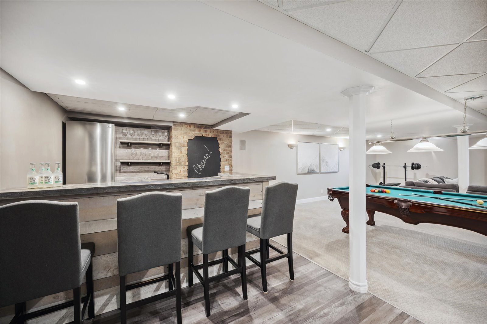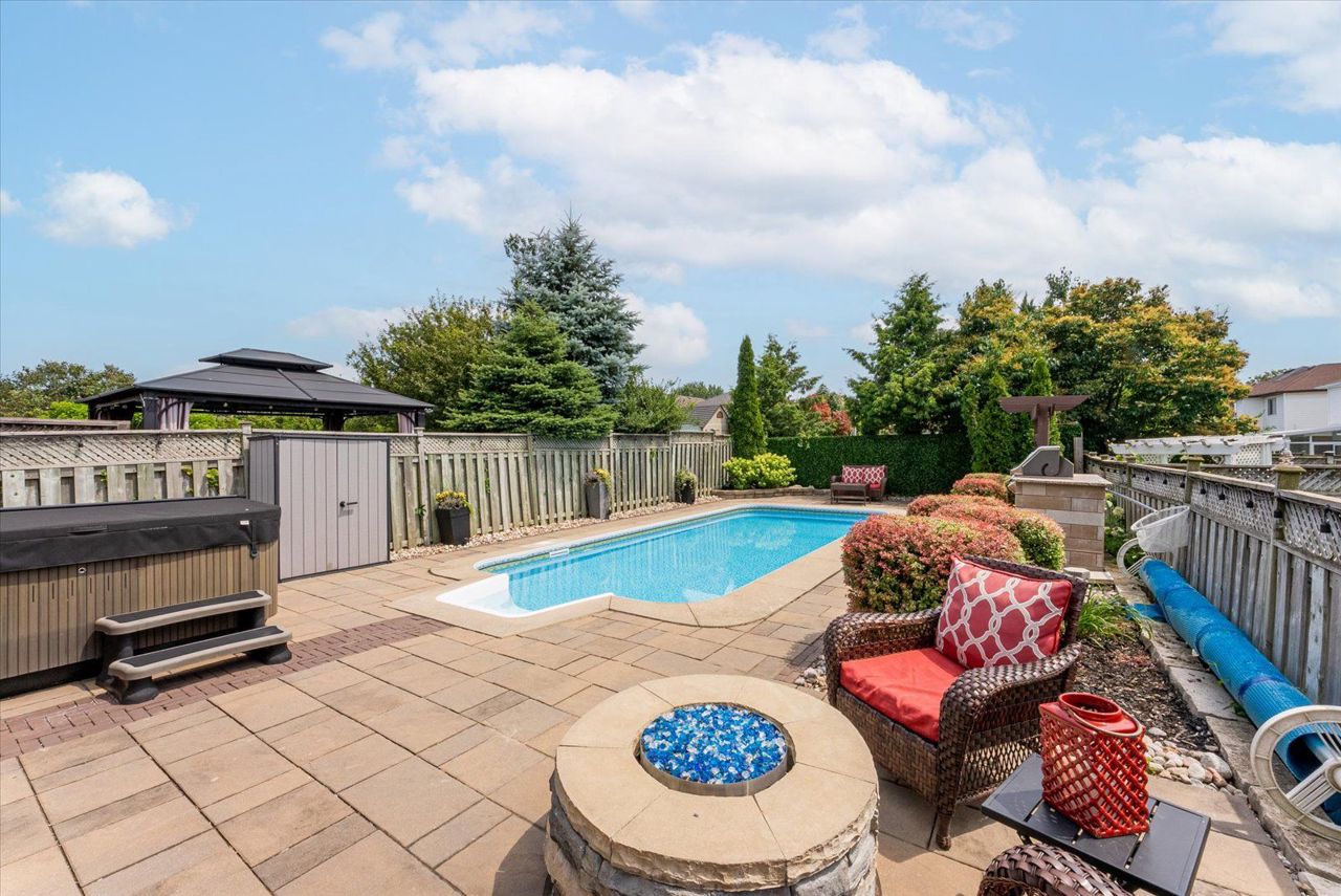 Your search ends here! This modernized bungalow boasts a multitude of features. Step into the backyard oasis, where meticulous landscaping surrounds an inviting inground pool, complemented by a built-in fireplace, BBQ, and a luxurious hot tub, making it the ultimate haven for hosting gatherings. Inside, you'll discover a well-designed layout featuring three bedrooms and two full baths on the main floor, all within an open-concept setting that encourages seamless flow and connectivity. Venturing to the basement, you'll find a thoughtfully finished space, complete with a dedicated office, a convenient two-piece bathroom, a stylish wet bar, an entertainment zone with a pool table and dartboard, and an expansive recreational area. There's truly nothing left to do here, but move in, unwind and invite friends and family to games night or a pool party!