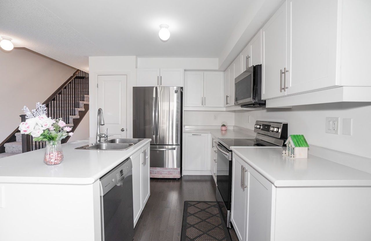3 minutes drive to Walmart, Canadian tire, Home Depot, LCBO, Winners, Cineplex, Grocery stores and Restaurants, Hospital, & 401 Prime Location;All Existing: Brand new Fridge, Stove, Dishwasher, Attached Microwave. All Light Fixtures, Cvac R/I