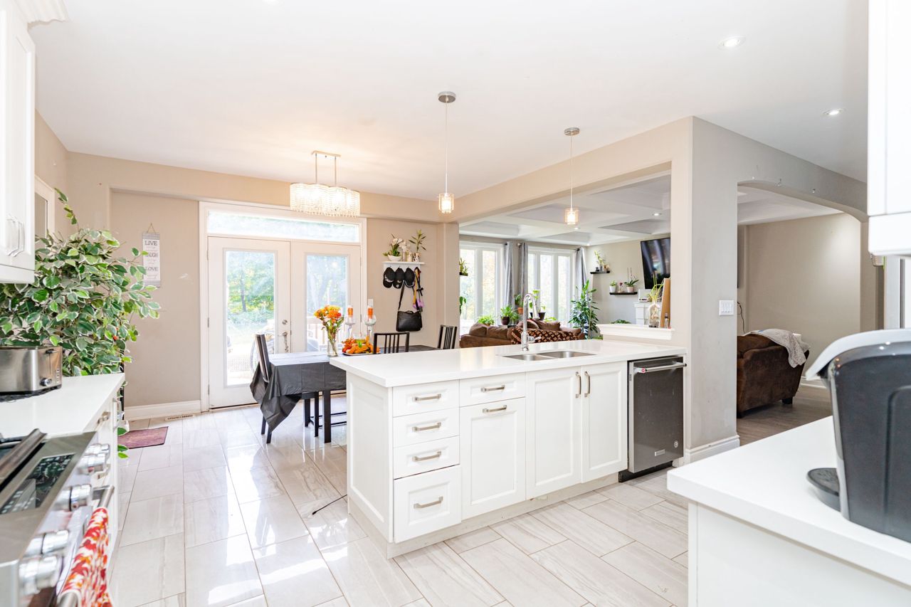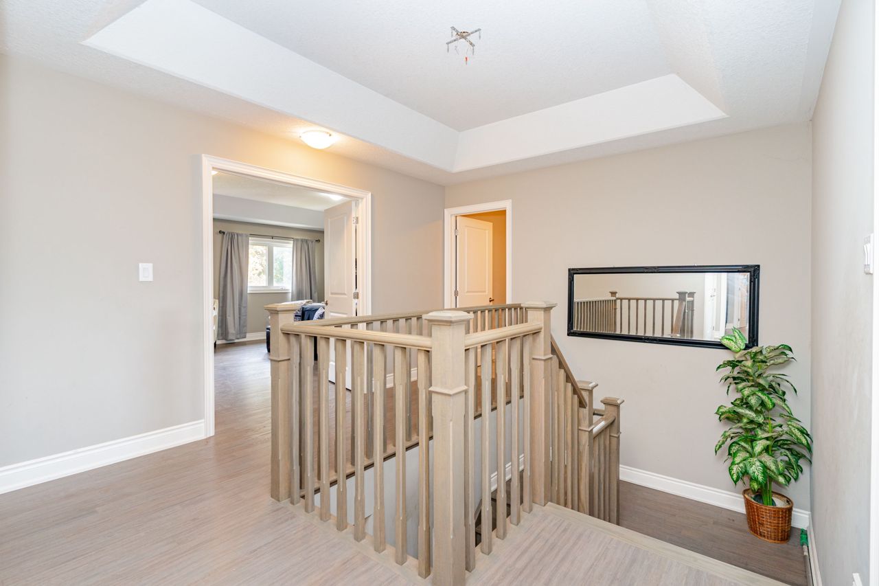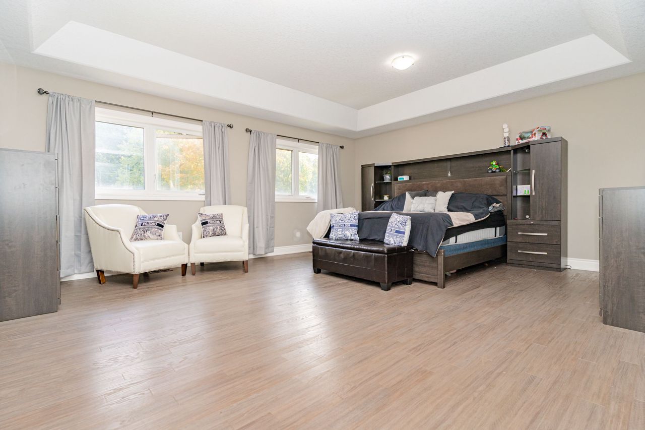 This stunning and spacious detached home is an absolute must-see! Built by Holland Homes, it features 4+1 bedrooms and four washrooms and is situated on a premium 77' x 280' lot that backs onto a beautiful ravine. The open-concept design spans 3,469 sq. ft. and boasts stunning features throughout. The kitchen has a beautiful island, quartz countertops, a walk-in pantry, and a servery. The great room is also open-concept and features a waffle ceiling and gas fireplace, making it the perfect spot for family gatherings and entertaining. The main bedroom is a true retreat, with his and hers walk-in closets and a luxurious ensuite. The home also features gleaming hardwood floors throughout, as well as a stunning hardwood staircase. With natural light all day long, thanks to its east-west facing position, this home is truly a gem. Take advantage of the opportunity to make it yours!