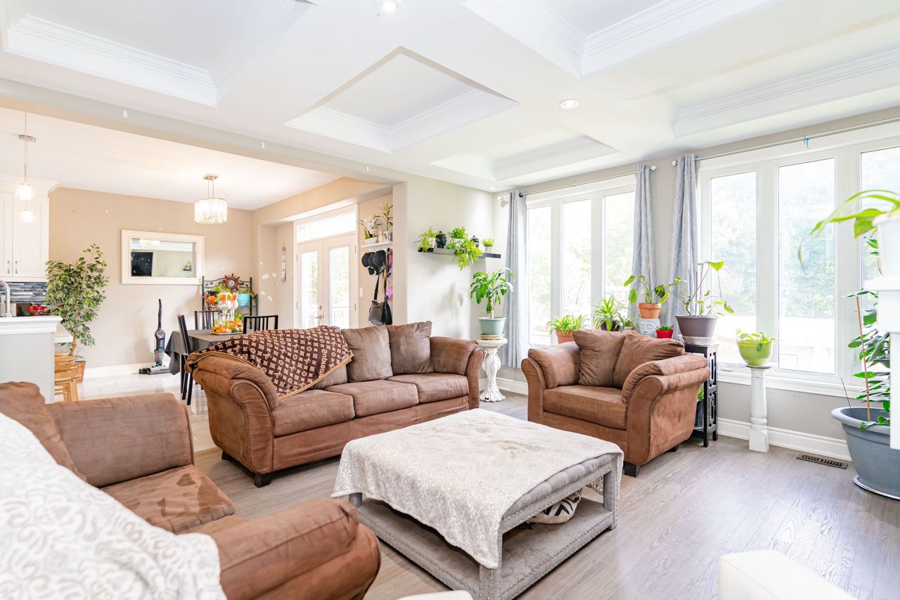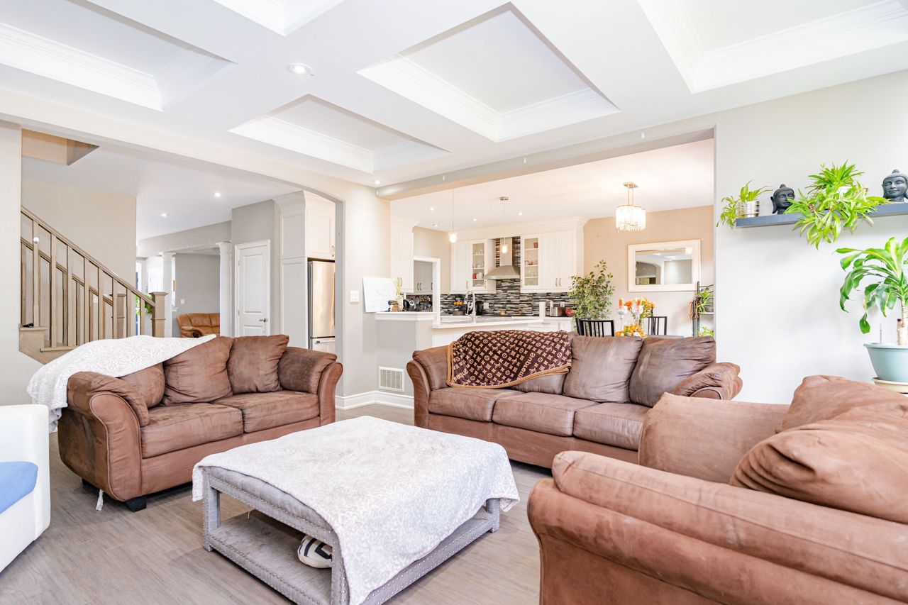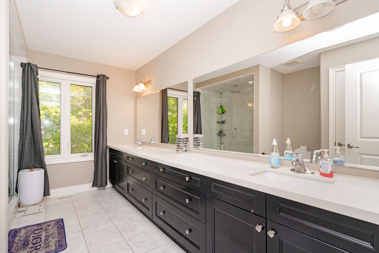 This stunning and spacious detached home is an absolute must-see! Built by Holland Homes, it features 4+1 bedrooms and four washrooms and is situated on a premium 77' x 280' lot that backs onto a beautiful ravine. The open-concept design spans 3,469 sq. ft. and boasts stunning features throughout. The kitchen has a beautiful island, quartz countertops, a walk-in pantry, and a servery. The great room is also open-concept and features a waffle ceiling and gas fireplace, making it the perfect spot for family gatherings and entertaining. The main bedroom is a true retreat, with his and hers walk-in closets and a luxurious ensuite. The home also features gleaming hardwood floors throughout, as well as a stunning hardwood staircase. With natural light all day long, thanks to its east-west facing position, this home is truly a gem. Take advantage of the opportunity to make it yours!