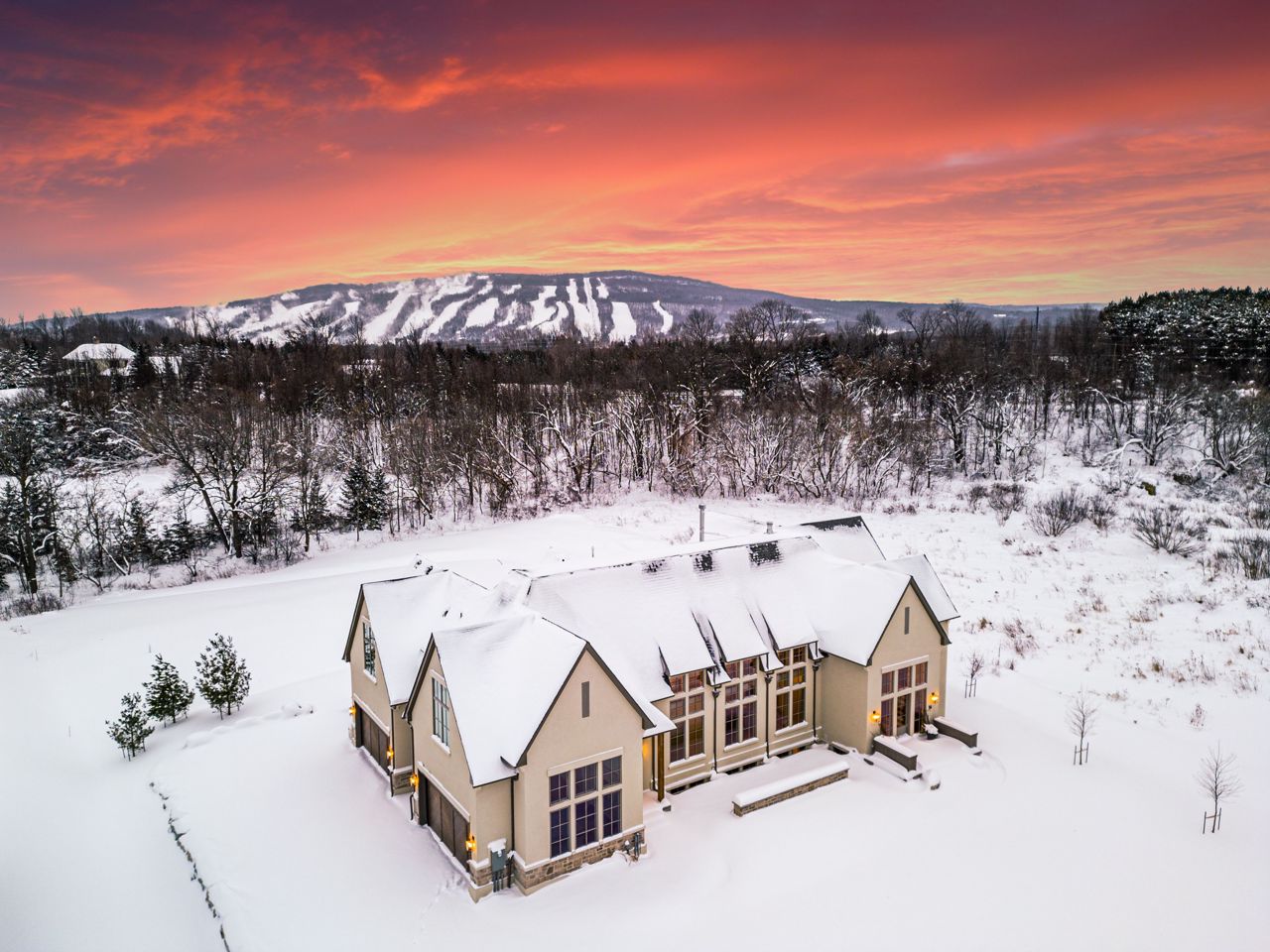 Nestled in the vicinity of Osler Bluff Ski Club and Blue Mountain, discover this remarkable estate residence resting on an expansive acre+ lot backing onto forested area in the coveted estate enclave of Windrose. Enjoy the feeling of space and serenity while being only minutes to downtown Collingwood. With over 7000sqft of living space, this home has an impressive array of amenities, showcases six lavish bedrooms, seven elegant bathrooms, and a delightful covered and screened porch complete with a cozy gas fireplace. The home also offers the convenience of a spacious four-car garage, ensuring ample space for all your toys and equipment. With separate wings dedicated to the master suite and children's quarters (with dedicated work & play space), privacy and comfort are effortlessly achieved. Marvel at the breathtaking mountain vistas visible from various vantage points throughout the residence, providing a constant reminder of the natural beauty that surrounds. Impeccable attentionto detail and luxurious high-end finishes grace every corner of this extraordinary home that has a 'return to elegance' feel, notable from the outside to the inside. Truly such a tasteful celebration of quality and unique design.