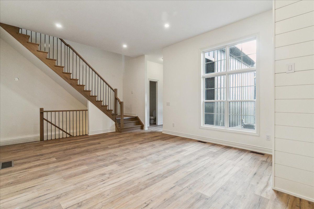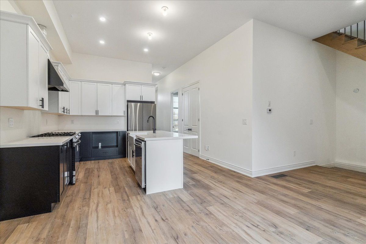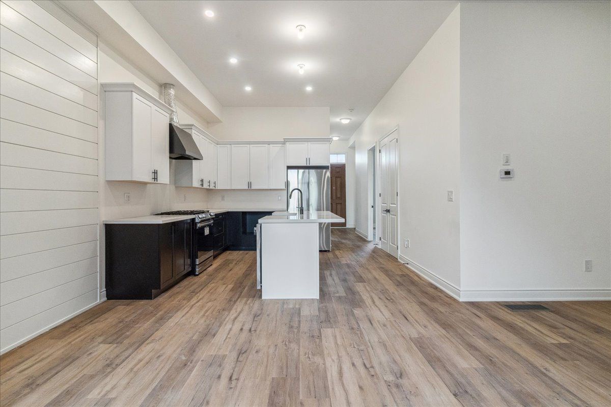 This Interior Townhouse, 2000 Sq. Ft Unit. Offering A Beautifully Unique Facade Unlike Any Other In The Community. 3 Bedrooms Upper Level Loft And 2.5 Baths Across Two Floors, With A Main-Floor Primary Bedroom Suite. 11' Ceilings Across Main-Floor, With Open-Concept Kitchen W Gas Range And Living Area, Laundry(Basement) And Powder Room. The Living Space Abounds Into The2nd Floor Family Room Loft Area, And Full Basement With 9' Ceilings. Attached Single Car Garage w additional Parking On driveway. Interior Finishes In Modern Style Concept New Samsung Appliances, Farmhouse Sink And Sleek Flagship Accent Wall In Living Room. Standard Features Include: Vinyl Plank Flooring Throughout, Quartz Countertops.
